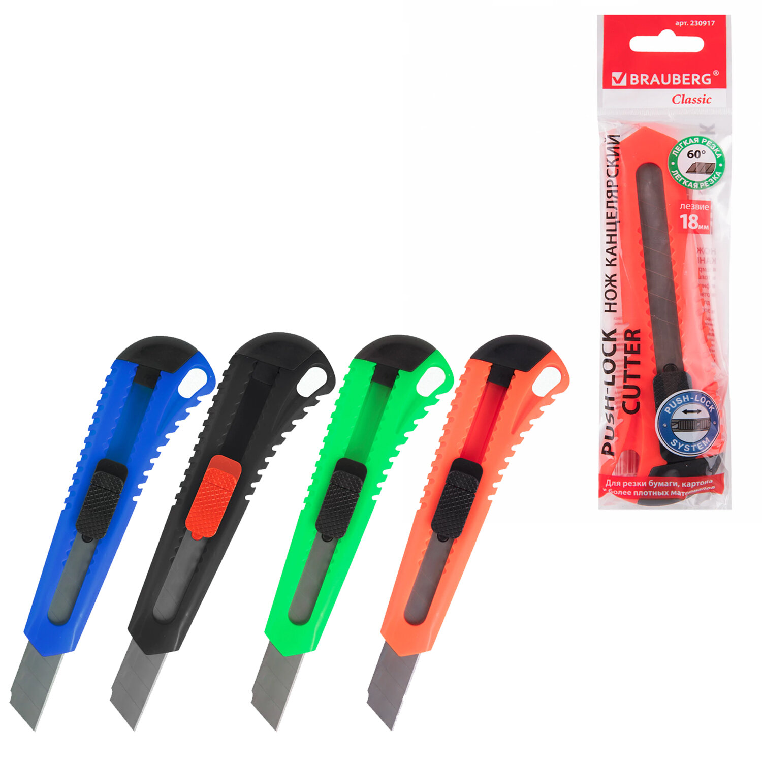 Нож канцелярский 18 мм BRAUBERG "Classic", фиксатор, корпус ассорти, упаковка с европодвесом Код товара: 230917 95,16 ₽ Купить Производитель:BRAUBERG Канцелярский нож BRAUBERG «Classic» – это доступное по цене изделие, предназначенное для использования в офисе или дома. Универсальный предмет, способный справляться как с регулярными объемными задачами, так и с периодической нагрузкой. Инструмент прекрасно лежит в руке за счет специфической формы корпуса и рифленой поверхности. Его можно удобно зафиксировать, не беспокоясь о том, что нож соскользнет и отрежет лишнее или поранит кожу. Для того, чтобы лезвие не меняло свое положение, предусмотрен специальный фиксатор. С его помощью режущую часть можно выдвинуть настолько, насколько это необходимо. Лезвия подлежат замене, запасной комплект приобретается отдельно. Заменить режущую часть просто: достаточно снять верхнюю заглушку и вытащить затупившийся или поломанный элемент. Если кончик лезвия затупился, его можно отломить по специальной контрольной линии. Сделать это удастся даже не вынимая режущую поверхность из ножен, аккуратно надавив на край выдвинутого лезвия. Отличается повышенной прочностью, удобством в использовании и долговечностью. Широкое лезвие в 18 мм позволяет работать с довольно плотными материалами, например, картоном, пластиком или тонкой древесиной. Большие объемы ткани, бумаги, целлофана и других материалов тоже прекрасно поддаются воздействию канцелярского ножа BRAUBERG «Classic». Доступны инструменты в красном, желтом и зеленом цветовых решениях (поставляются без возможности выбора). Само изделие поставляется в упаковке с европодвесом. Товар относится к среднему ценовому сегменту. Несмотря на невысокую стоимость проявляет себя в качестве надежного помощника для ежедневной эксплуатации.Производство: КитайШирина лезвия: 18 ммКоличество ножей в комплекте: 1 шт.Тип механизма фиксации: защелкаМатериал корпуса: пластикСерия: ClassicЭргономичный дизайн: даОтверстие для подвеса: даЦвет корпуса: ассортиУпаковка: полибегВес: 34 грРазмер упаковки: 1.7 × 15.2 × 4.6 смОбъём: 0.0001 м3Промежуточная упаковка: 60 штТранспортная упаковка: 720 штШтрих-код: 4606224007007 Файлы Сертификат-1.jpg Сертификат-2.jpg Сертификат-3.jpg Сертификат-4.jpg Сертификат-5.jpg Сертификат-6.jpg Сертификат-7.jpg Сертификат-8.jpg Сертификат-9.jpg Сертификат-10.jpg Сертификат-11.jpg Сертификат-12.jpg Сертификат-13.jpg Сертификат-14.jpg Сертификат-15.jpg Сертификат-16.jpg Сертификат-17.jpg Сертификат-18.jpg Сертификат-19.jpg Сертификат-20.jpg Сертификат-21.jpg Сертификат-22.jpg Сертификат-23.jpg Сертификат-24.jpg Сертификат-25.jpg Сертификат-26.jpg Сертификат-27.jpg Сертификат-28.jpg