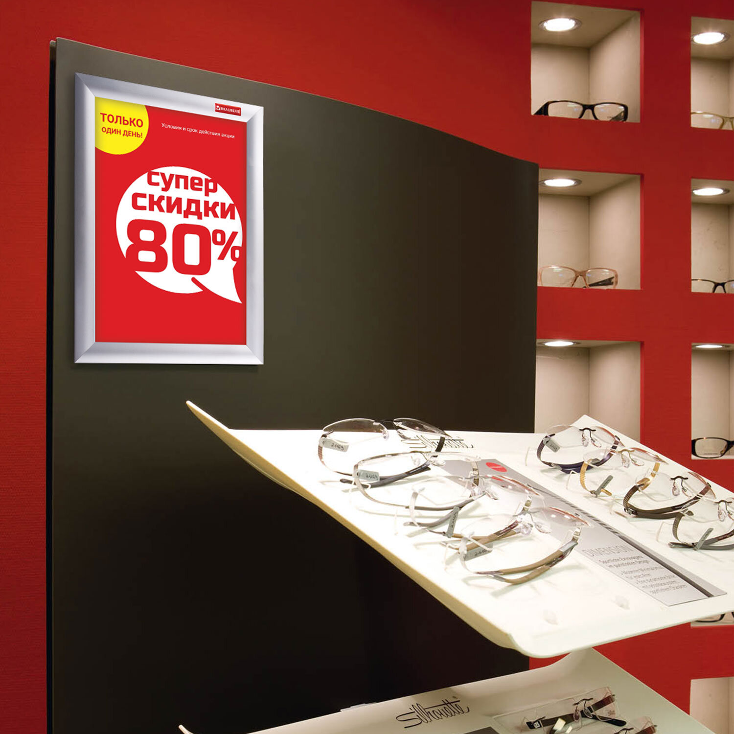 Рамка настенная для рекламы БОЛЬШОГО ФОРМАТА (420х594 мм), алюминиевая, прижимные стороны, BRAUBERG Код товара: 232205 4 236,51 ₽ Купить Производитель:BRAUBERG Настенная рамка BRAUBERG актуальна для рекламных носителей, объявлений и документов, требующих частой замены. Нет необходимости снимать рамку со стены - достаточно поднять прижимные стороны рамки, вынуть антибликовый прозрачный вкладыш и вставить новое изображение. Расположение рамки как портретное, так и альбомное. Элементы крепления прилагаются. Максимальная высота вставляемого листа - 594 мм, максимальная ширина вставляемого листа - 420 мм.Производство: КитайТип товара: рамкаФормат листовки: А2Расположение: универсальноеКрепление к стене/двери: даКоличество отделений: 1Серия: WallВысота вставляемого листа: 594 ммШирина вставляемого листа: 420 ммКоличество в комплекте: 1 шт.Элементы крепления в комплекте: даМатериал: алюминийЦвет: серебристыйВысота: 620 ммШирина: 445 ммГлубина: 15 ммУпаковка: гофрокоробВес: 2,24 кгРазмер упаковки: 4 × 69.2 × 51.4 смОбъём: 0.0142 м3Промежуточная упаковка: 1 штТранспортная упаковка: 1 штШтрих-код: 4606224073873 Файлы Сертификат-1.jpg Сертификат-2.jpg Сертификат-3.jpg Сертификат-4.jpg Сертификат-5.jpg Сертификат-6.jpg Сертификат-7.jpg Сертификат-8.jpg Сертификат-9.jpg Сертификат-10.jpg Сертификат-11.jpg Сертификат-12.jpg Сертификат-13.jpg Сертификат-14.jpg Сертификат-15.jpg Сертификат-16.jpg Сертификат-17.jpg Сертификат-18.jpg Сертификат-19.jpg Сертификат-20.jpg Сертификат-21.jpg Сертификат-22.jpg Сертификат-23.jpg Сертификат-24.jpg Сертификат-25.jpg Сертификат-26.jpg