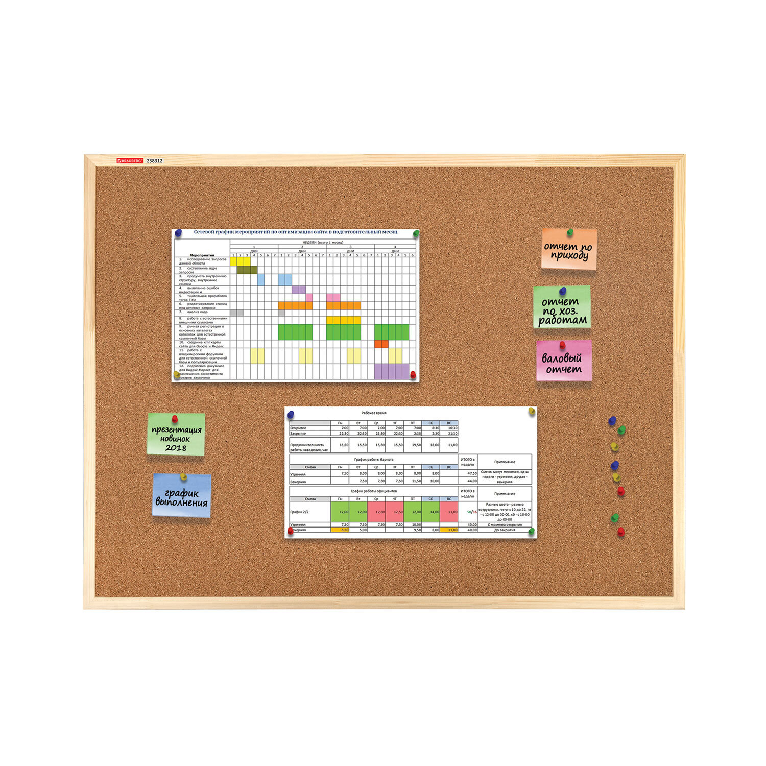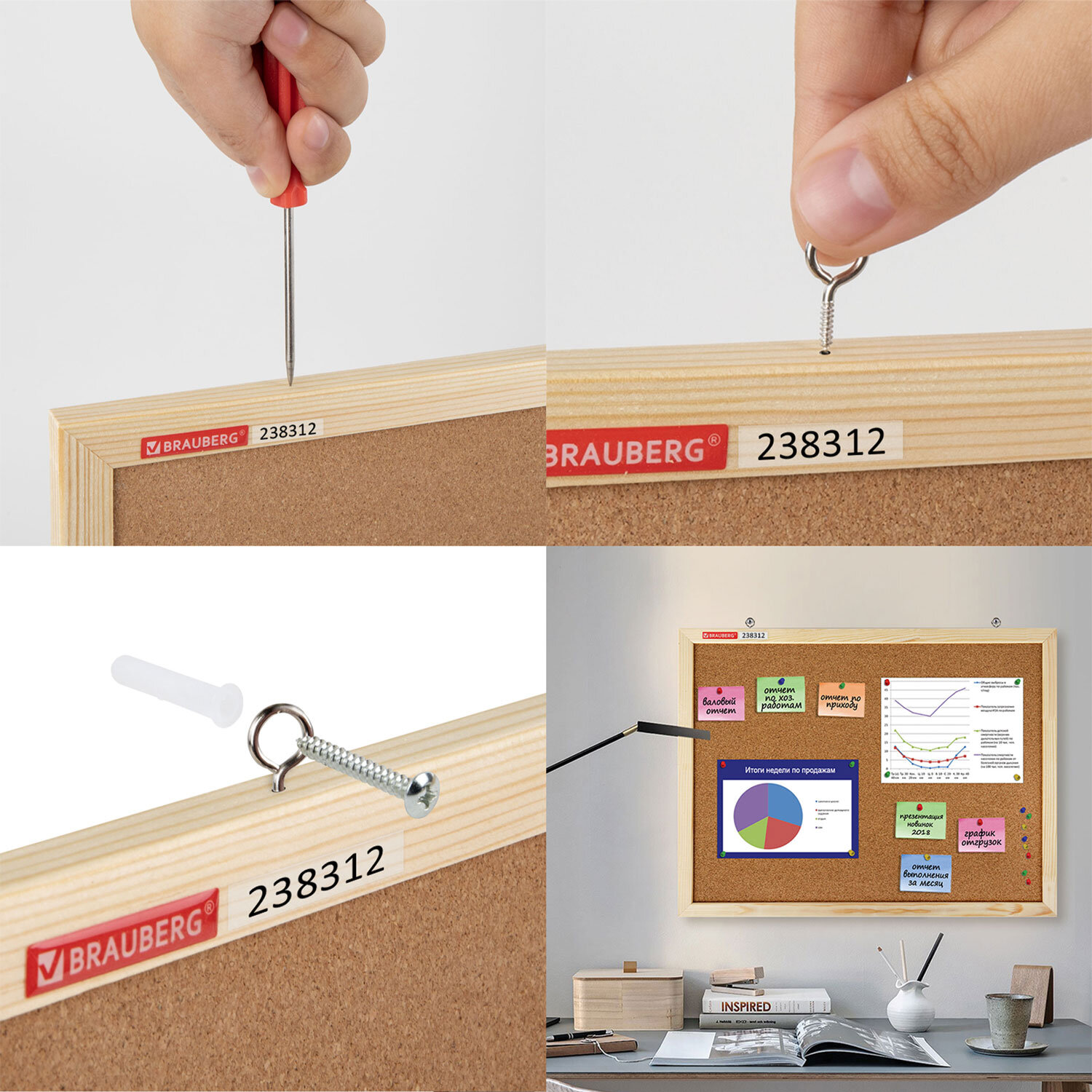 Доска пробковая для объявлений 90х120 см, деревянная рамка, BRAUBERG Wood Код товара: 238312 4 687,92 ₽ Купить Производитель:BRAUBERG Пробковая доска BRAUBERG Wood в деревянной рамке – прекрасный выбор для размещения объявлений при помощи кнопок и офисных булавок. Широко применяется в различных организациях. Поверхность изготовлена из натуральной пробки. Деревянная рамка из сосны. Размер доски – 90х120х1,4 см. Цвет покрытия – коричневый. Возможность горизонтального и вертикального размещения доски. Крепится к стене, элементы крепления входят в комплект. Перед первой установкой шурупа-кольца в раму, необходимо сделать отверстие шилом для более легкого вкручивания. Гарантия – 10 лет. Отверстия в пробке "закрываются" сразу же после извлечения кнопки. Таким образом, доска прослужит на протяжении долгих лет, несмотря на частое использование.Производство: КитайТип покрытия доски: пробковое покрытиеРазмер (ВхШхГ): 90x120x1,4 смЦвет покрытия: коричневыйМатериал рамы: деревоСерия: WoodТолщина пробкового слоя: 1 ммКрепление информации с помощью: булавок, кнопокКомплектация: кнопки-гвоздики, элементы крепленияТип крепления: открытыйМонтаж доски: вертикальный, горизонтальныйВес: 4.2 кгРазмер упаковки: 95.7 × 2.6 × 124.5 смОбъём: 0.031 м3Промежуточная упаковка: 1 штТранспортная упаковка: 1 штШтрих-код: 4606224408729 Файлы Сертификат-1.jpg Сертификат-2.jpg Сертификат-3.jpg Сертификат-4.jpg Сертификат-5.jpg Сертификат-6.jpg Сертификат-7.jpg Сертификат-8.jpg Сертификат-9.jpg Сертификат-10.jpg Сертификат-11.jpg Сертификат-12.jpg Сертификат-13.jpg Сертификат-14.jpg Сертификат-15.jpg Сертификат-16.jpg Сертификат-17.jpg Сертификат-18.jpg Сертификат-19.jpg Сертификат-20.jpg Сертификат-21.jpg Сертификат-22.jpg Сертификат-23.jpg Сертификат-24.jpg Сертификат-25.jpg Сертификат-26.jpg