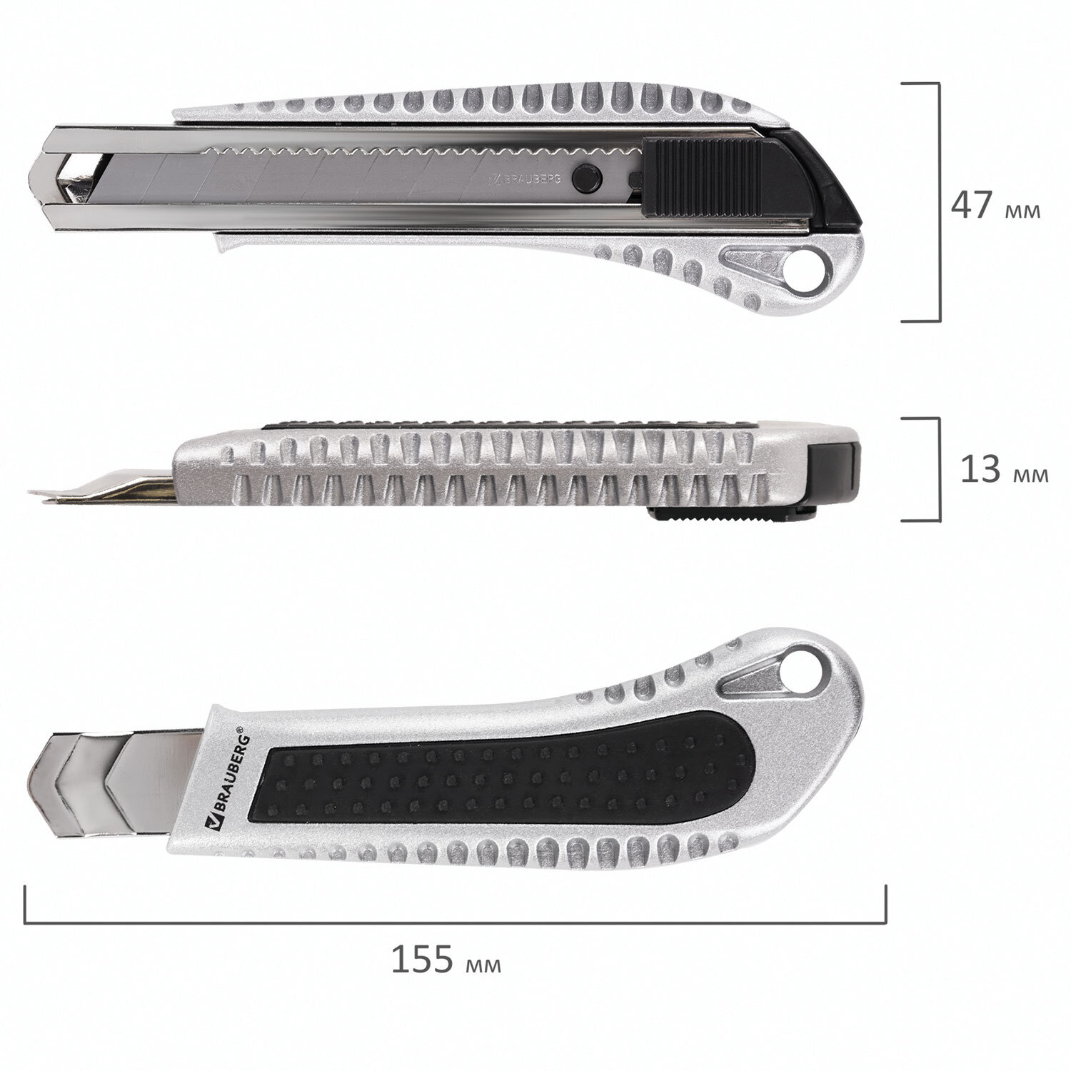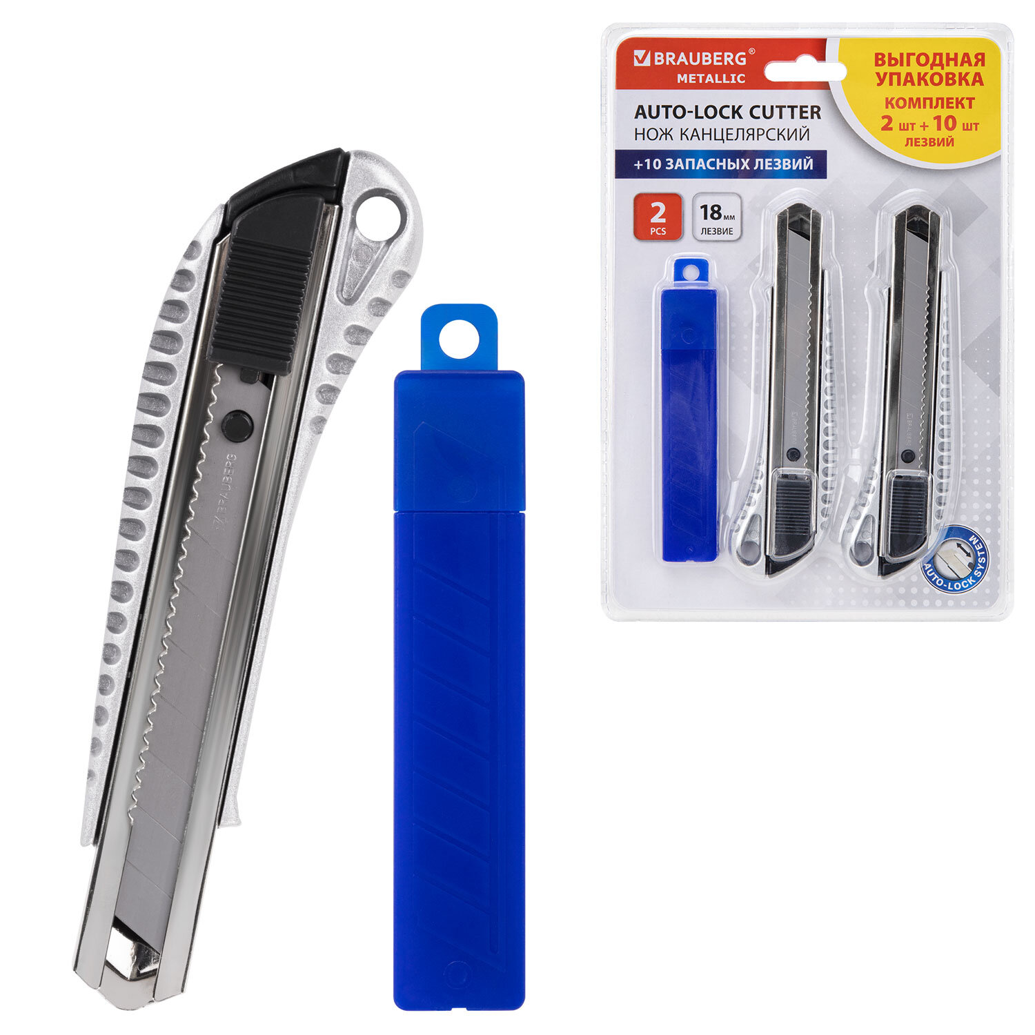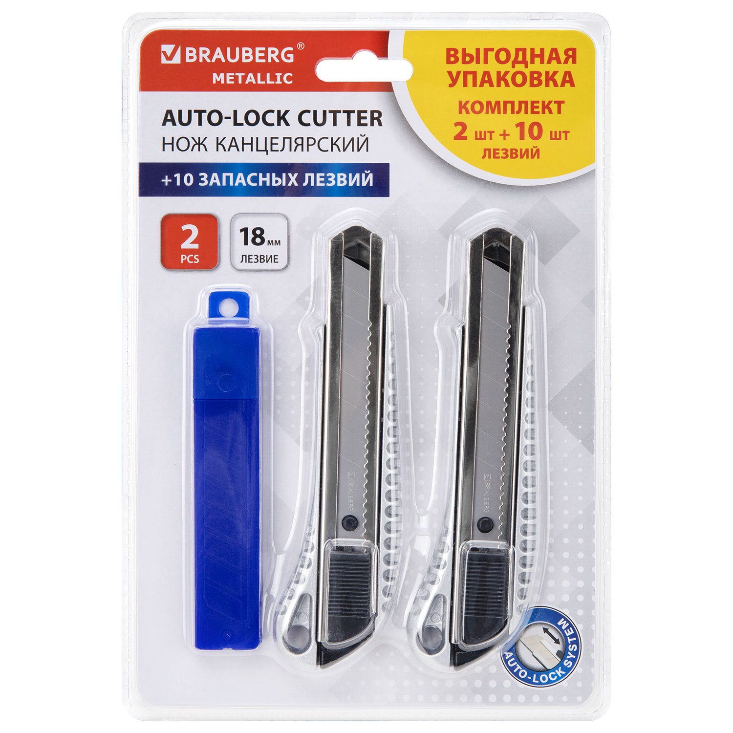 Нож канцелярский 18 мм, КОМПЛЕКТ 2 штуки + 10 ЛЕЗВИЙ, BRAUBERG Metallic, металлический корпус Код товара: 273929 879,32 ₽ Купить Производитель:BRAUBERG Канцелярский нож BRAUBERG "Metallic" – незаменимый инструмент для разрезания бумажных или картонных листов, линолеума, кожи и других плоских поверхностей. Оставляет ровный разрез без зазубрин, что особенно важно при соблюдении точности резки. У ножа имеется надежный автоматический фиксатор длины лезвия, благодаря чему конструкция не деформируется при работе. Затупившийся конец лезвия легко удалить, отломив небольшой фрагмент. Металлический корпус серебристого цвета обеспечивает долговечность ножа, а рифленые края предотвращают соскальзывание руки при работе с инструментом. Ширина лезвия стандартная, 18 мм. Для удобства хранения имеется отверстие для подвеса. Комплект продается в пластиковом блистере с европодвесом.Производство: КитайШирина лезвия: 18 ммКоличество ножей в комплекте: 2 шт.Количество запасных лезвий в комплекте: 10 шт.Тип механизма фиксации: система блокировки лезвияМатериал корпуса: металлНаличие металлических направляющих: даСерия: MetallicЭргономичный дизайн: даОтверстие для подвеса: даЦвет корпуса: черный/серебристыйУпаковка: блистер с европодвесомВес: 340 грРазмер упаковки: 2 × 25.5 × 17.3 смОбъём: 0.001 м3Промежуточная упаковка: 6 штТранспортная упаковка: 36 штШтрих-код: 4606224502243 Файлы Сертификат-1.jpg Сертификат-2.jpg Сертификат-3.jpg Сертификат-4.jpg Сертификат-5.jpg Сертификат-6.jpg Сертификат-7.jpg Сертификат-8.jpg Сертификат-9.jpg Сертификат-10.jpg Сертификат-11.jpg Сертификат-12.jpg Сертификат-13.jpg Сертификат-14.jpg Сертификат-15.jpg Сертификат-16.jpg Сертификат-17.jpg Сертификат-18.jpg Сертификат-19.jpg Сертификат-20.jpg Сертификат-21.jpg Сертификат-22.jpg Сертификат-23.jpg Сертификат-24.jpg Сертификат-25.jpg Сертификат-26.jpg