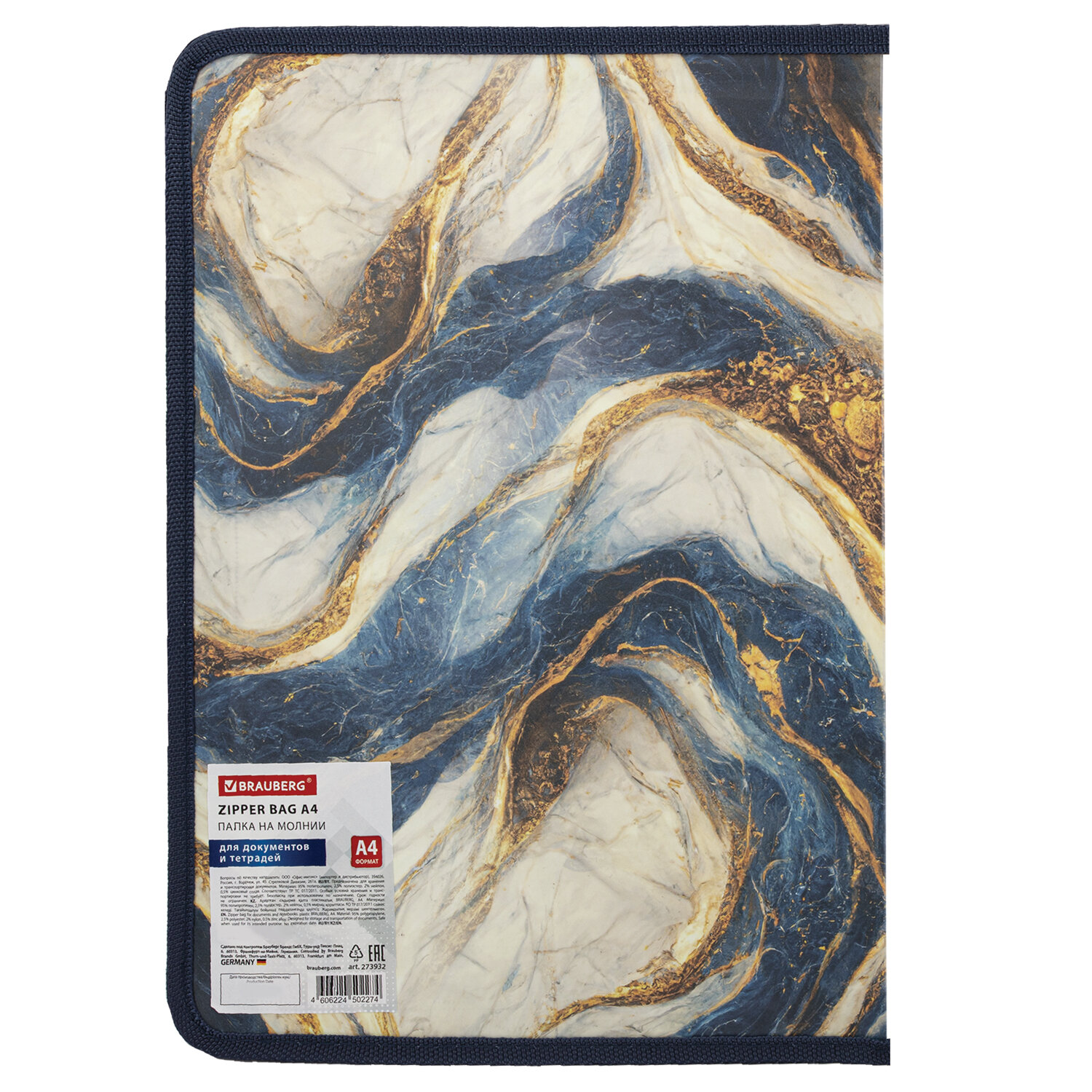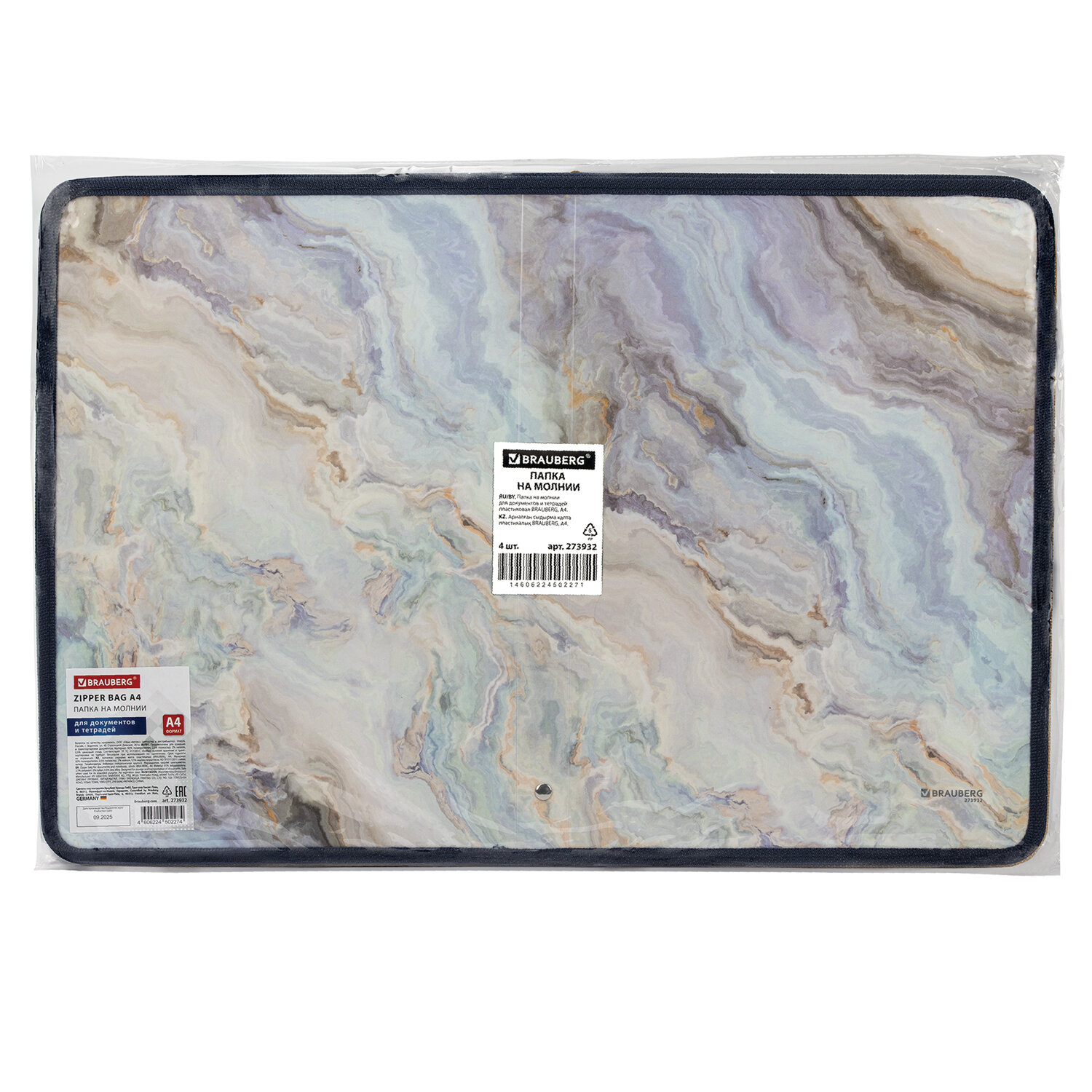 Папка на молнии для документов и тетрадей пластиковая BRAUBERG "Мрамор", А4, 330х230 мм, 0,5 мм, ассорти Код товара: 273932 209,86 ₽ Купить Производитель:BRAUBERG Папка на молнии BRAUBERG предназначена для комфортного хранения и транспортировки документов, тетрадей, различных мелких предметов. Незаменима в работе, учебе, в командировках и деловых поездках, путешествиях. Изготовлена из прочного непрозрачного пластика толщиной 500 микрон. Формат А4 (330x230 мм). Надежный замок-молния защищает документы от механических повреждений, пыли и влаги. Папка представлена в красивом мраморном дизайне.Производство: КитайФормат: А4Серия: нетОбъемная: даТип пластика: непрозрачныйФактура: песокЦвет пластика: ассортиЦвет застежки: ассортиЗамок: молнияМатериал: полипропиленТолщина пластика: 0.5 ммДлина: 330 ммШирина: 230 ммШирина корешка: 25 ммВес: 113 грРазмер упаковки: 0.5 × 49.3 × 33.6 смОбъём: 0.0008 м3Промежуточная упаковка: 4 штТранспортная упаковка: 120 штШтрих-код: 4606224502274 Сертификат-1.jpg Сертификат-2.jpg Сертификат-3.jpg
