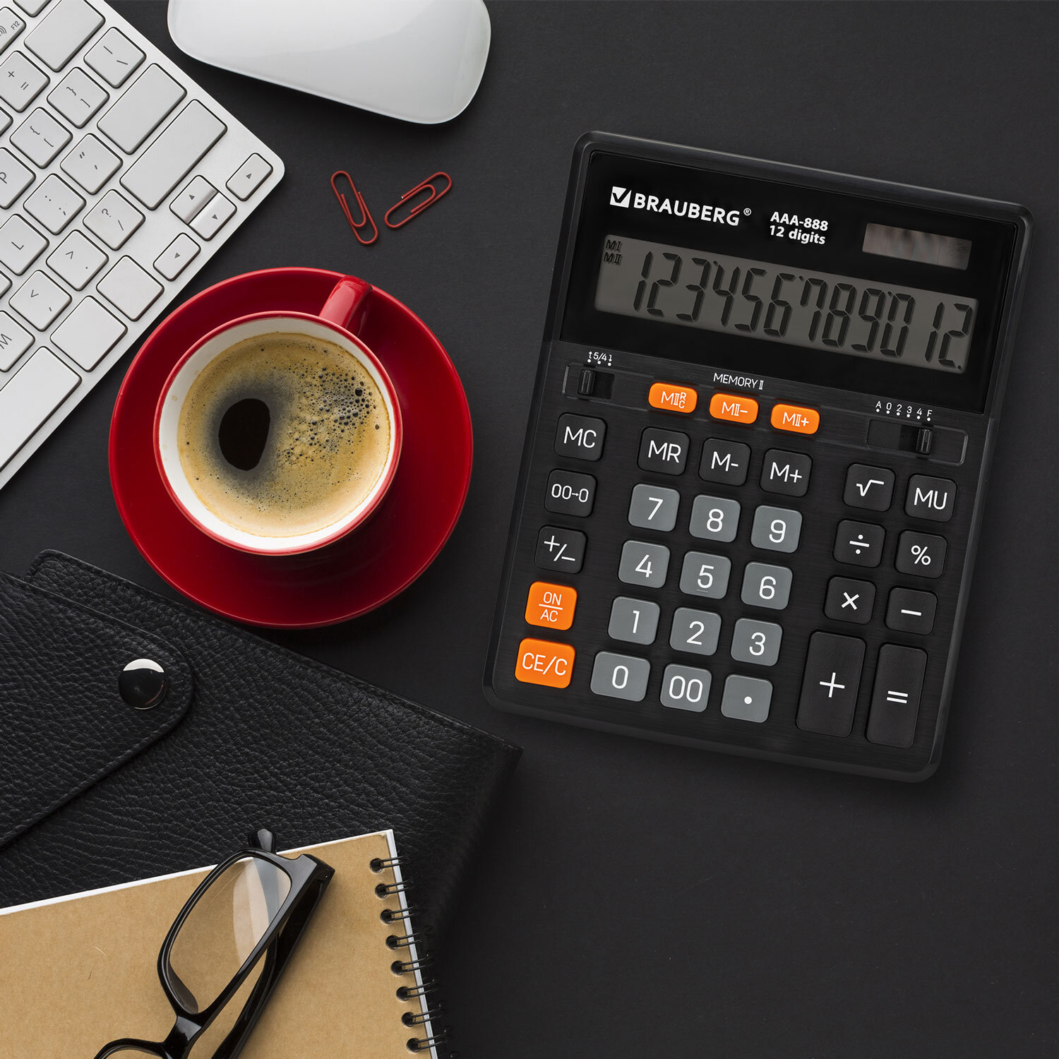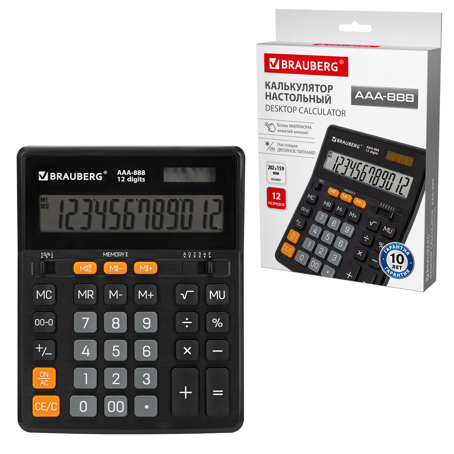 Калькулятор настольный BRAUBERG AAA-888 (202x159 мм), 12 разрядов, ЧЕРНЫЙ, двойное питание Код товара: 273981 755,61 ₽ Купить Производитель:BRAUBERG Настольный калькулятор BRAUBERG AAA-888. Большой дисплей с увеличенными символами, надежный корпус и оптимальный набор наиболее используемых функций для эффективной работы. Калькулятор поддерживает ключевые арифметические действия: возведение в степень, вычисления с процентами, извлечение квадратного корня, запоминание промежуточных результатов. Подходит для бухгалтеров благодаря наличию клавиш двойной памяти, "00" и MU для расчетов налогов и торговой наценки. С переключателями округления и положения десятичного знака. Большой двенадцатиразрядный дисплей с акриловым экраном комфортно отображает большие символы с высокой точностью округления. Встроенный аккумулятор и солнечная батарея позволяют калькулятору работать при любом освещении, а клавиша выключения OFF и функция автоматического отключения (через 8-10 минут бездействия) позволяют максимально продлить срок его службы без замены батареи. Размер – 202x159 мм. Гарантия – 10 лет.Производство: КитайРазрядность дисплея: 12Серия: AAA-888Тип размера: полноразмерныйТип применения: для бухгалтеровСтиль: классическийФункционал: вычисление наценки (MU), вычисление с памятью, извлечение квадратного корня, расчет процентов, сложение, вычитание, деление, умножениеИсполнение: настольныйЧисло строк дисплея: 1Материал кнопок: пластикТип питания: 1 батарейка LR54 (LR1130/AG10), солнечный элементЦвет панели: черныйДлина корпуса: 202 ммШирина корпуса: 159 ммВысота корпуса: 31 ммВес: 367 грРазмер упаковки: 3.7 × 23.7 × 16.2 смОбъём: 0.0016 м3Промежуточная упаковка: 20 штТранспортная упаковка: 80 штШтрих-код: 4606224507231 Сертификат-1.jpg Сертификат-2.jpg Сертификат-3.jpg
