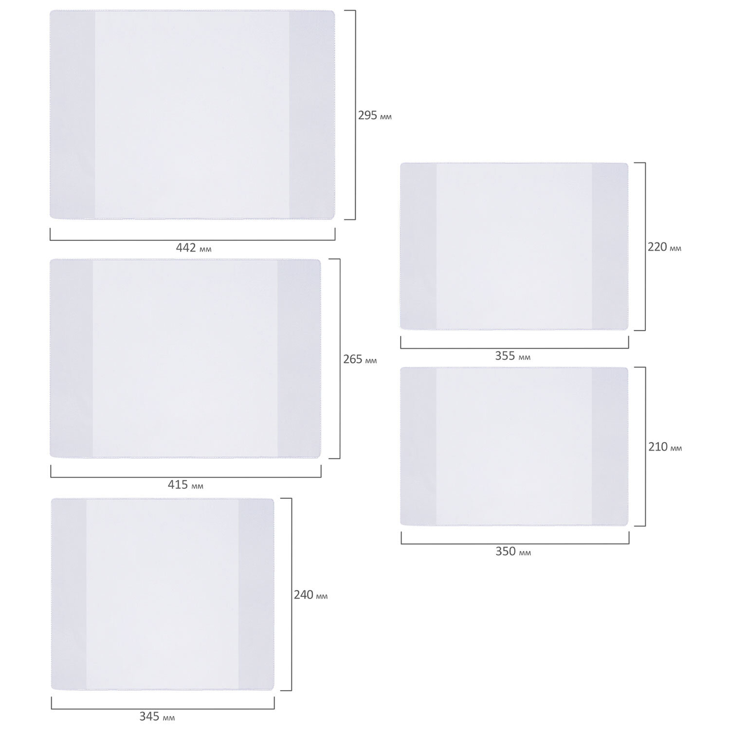 Изготовлены из высококачественного поливинилхлорида (ПВХ) толщиной 120 мкм. Предназначены для учебников и тетрадей. В наборе: 210x350 мм – 11 шт., 220x355 мм – 6 шт., 240x345 мм – 5 шт., 265x415 мм – 12 шт., 295x442 мм – 2 шт. Классические обложки без регулировки по ширине. Не содержат веществ, вредных для здоровья детей.