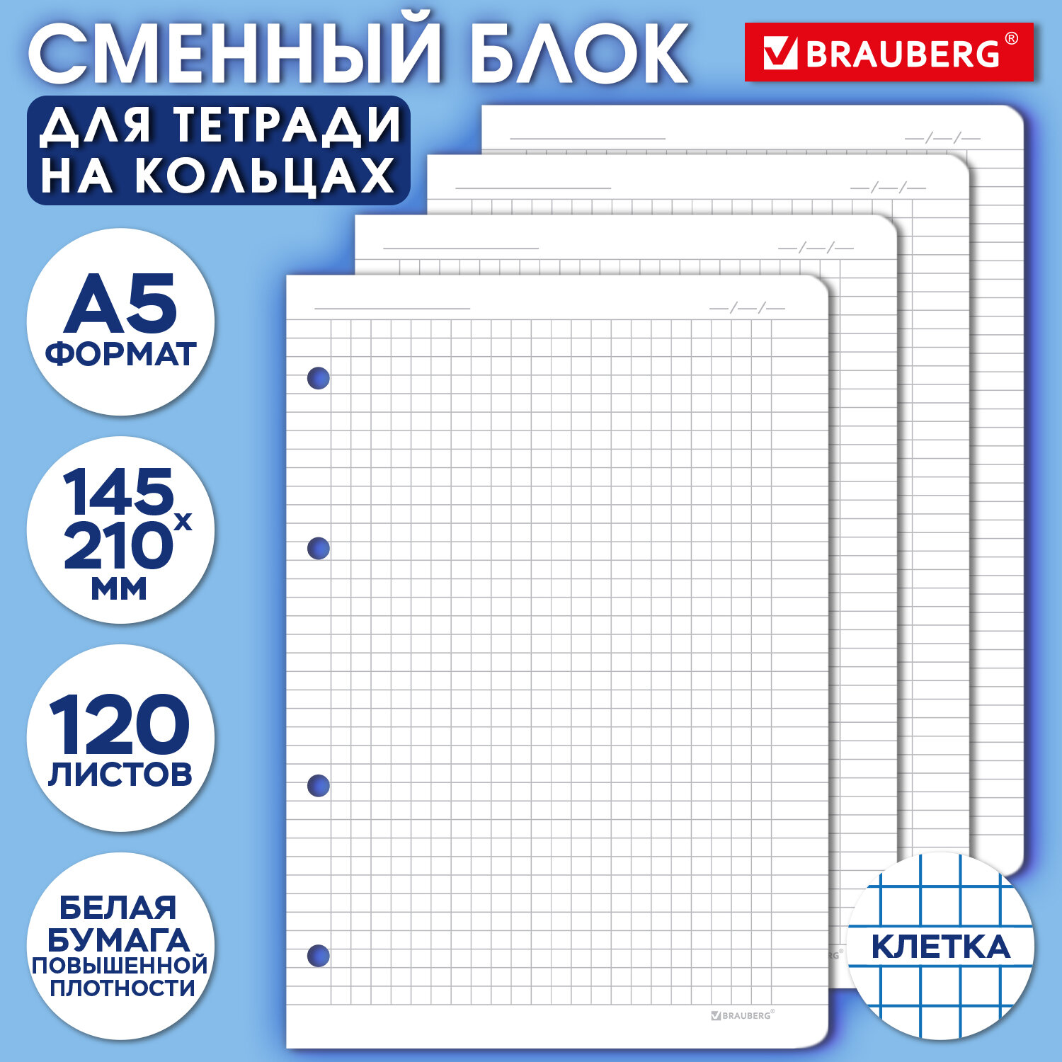 Сменный блок для тетради на кольцах А5 120 л., BRAUBERG, ПОВЫШЕННОЙ ПЛОТНОСТИ, белый Код товара: 403638 451,75 ₽ Купить Производитель:BRAUBERG Сменный блок BRAUBERG предназначен для письма гелевыми, шариковыми, капиллярными и перьевыми ручками. Универсальная перфорация на 4 отверстия. Сменный блок подходит для всех тетрадей на 4 кольцах формата А5. Блок состоит из 120 листов офсетной бумаги белого цвета повышенной плотности 70 г/м2. Линовка – клетка с полями.Производство: КитайФормат: А5Тип товара: сменный блокОбщее количество листов: 120Вид бумаги: офсетПлотность бумаги: 70 г/м2Вид линовки: клеткаБелизна: 100 %Наличие полей: даЦвет сменного блока: белый матовыйТермоупаковка: даВес: 278 грРазмер упаковки: 1.3 × 21 × 14.5 смОбъём: 0.0005 м3Промежуточная упаковка: 30 штТранспортная упаковка: 30 штШтрих-код: 4606224275482 Сертификат-1.jpg Сертификат-2.jpg Сертификат-3.jpg