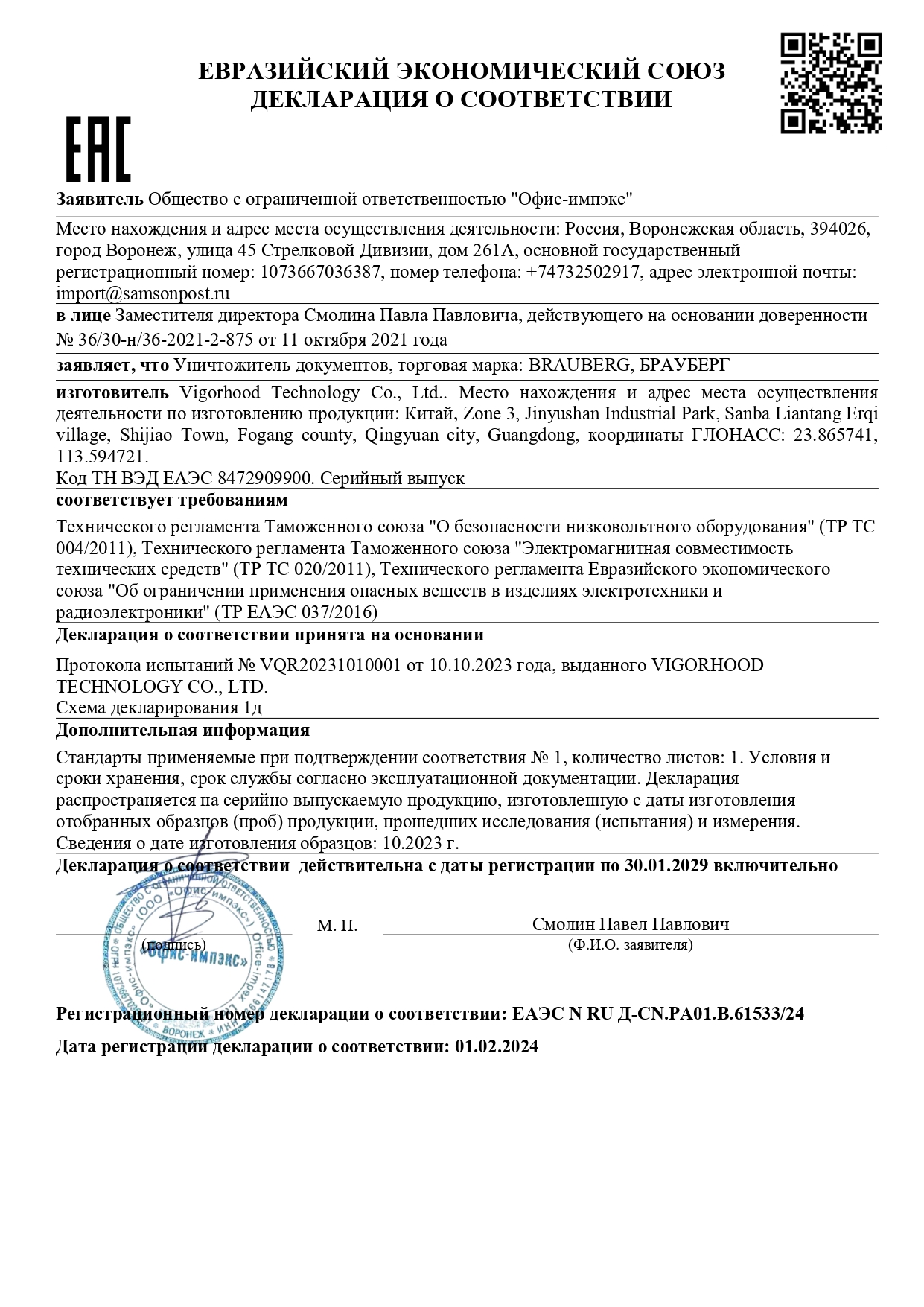 Уничтожитель (шредер) BRAUBERG S12, 4 уровень секретности, фрагменты 4х35 мм, 12 листов, корзина 25 литров Код товара: 531774 12 396,56 ₽ Купить Производитель:BRAUBERG Уничтожитель документов (шредер) BRAUBERG S12 предназначен для уничтожения документов, компакт-дисков и пластиковых карт (банковских, дисконтных и прочих), потерявших актуальность. Отлично подходит для интенсивного персонального использования или коллективного использования в малом офисе. Резка на фрагменты размером 4х35 мм обеспечивает P-4 уровень секретности (DIN 66399). Рекомендуемое количество пользователей - 3-5 человек. За один раз уничтожает 12 листов формата А4. Объем корзины составляет 25 л. Дополнительным преимуществом данной модели является наличие функции энергосберегающего режима, т.е. когда аппарат не используется некоторое время, он находится в режиме готовности, но при этом, снижается потребление энергии. Аппарат включится автоматически в момент начала уничтожения бумаги/компакт-диска/пластиковой карты. Данный уничтожитель снабжен надежными ножами, способными уничтожать скобы от степлера, что облегчает уничтожение скрепленных документов, экономя время потребителя. Шредер оснащен защитой двигателя от перегрева, что является частой причиной выхода этой дорогостоящей запчасти из строя на уничтожителях бумаги других производителей. Для удобства отслеживания наполняемости корзины отходами в ней предусмотрено прозрачное смотровое окошко. Под входом для пластиковых карт/компакт дисков предусмотрена отдельная небольшая корзина для того, чтобы отходы от карт и дисков не смешивались с отходами от бумаги, уничтожаемой через основной вход. Комплектация: - уничтожитель; - руководство пользователя; - гарантийный талон.Производство: КитайУровень секретности (DIN 66399): P-4Область применения: офисныйВозможности уничтожения: бумаги А4 (80 г/м2), дисков CD и DVD, пластиковых карт, скобРекомендуемое кол-во пользователей: 3-5Тип резки: перекрестнаяКоличество уничтожаемых листов: 12 А4Резка бумаги на полоски / фрагменты размером: 4х35 ммВремя непрерывной работы: 4 минВремя перерыва: 30 минСредняя скорость резки: 2 м/минОбъем приемной корзины: 25 литр.Ширина входного отверстия: 235 ммУровень шума: 72 дБАвтостарт: даРеверс: даИндикатор перегрева двигателя: даЭнергосберегающий режим: даВысота: 43.5 смШирина: 35.7 смГлубина: 23.5 смМатериал корпуса: пластикЦвет: черно-серыйВес: 9.1 кгРазмер упаковки: 43.7 × 39.2 × 26.6 смОбъём: 0.0509 м3Промежуточная упаковка: 2 штТранспортная упаковка: 2 штШтрих-код: 4606224169675 Сертификат-1.jpg Сертификат-2.jpg Сертификат-3.jpg