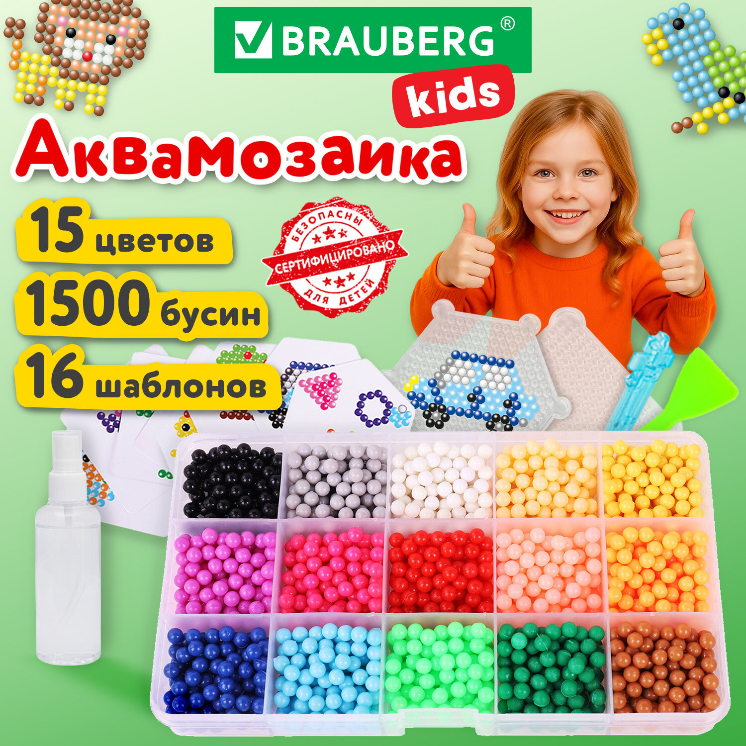 В набор входят бусины 15 различных цветов, около 100 штук каждого цвета, пластиковый контейнер с отсеками для удобного хранения бусин, 2 подставки-трафарета, 8 двусторонних карточек с картинками, бутылочка-пульверизатор для воды, специальная ручка для аквамозаики и лопатка для снятия готовой фигурки с трафарета. Диаметр одной бусины – 0,5 см.