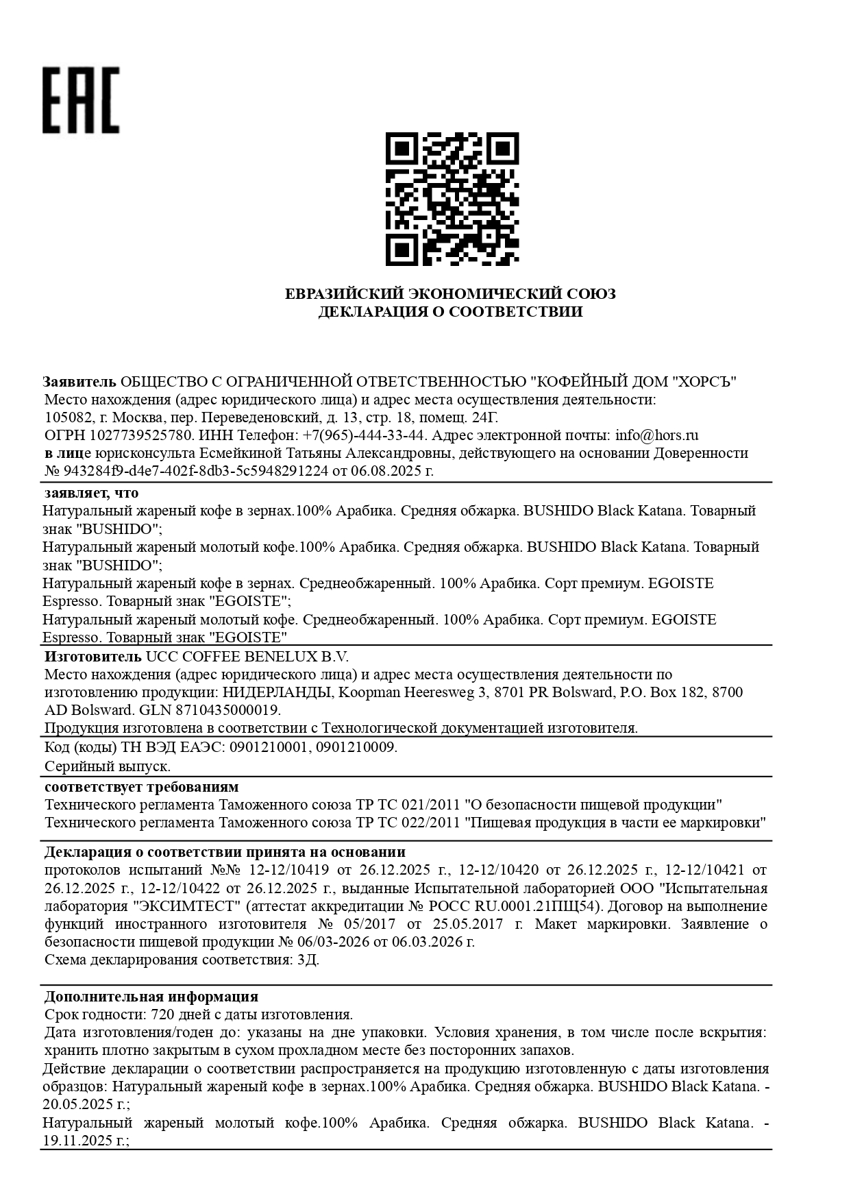 Кофе в зернах BUSHIDO "Black Katana" 1 кг, арабика 100%, НИДЕРЛАНДЫ Код товара: 622197 3 442,1 ₽ Купить Производитель:BUSHIDO Кофе в зернах BUSHIDO "Black Katana" - это бленд из спелых кофейных ягод Арабики, произрастающих в Южной и Центральной Америке. Бленд из спелых кофейных ягод Арабики, произрастающих в Южной и Центральной Америке. Во вкусе ощущается сладость фруктов, черники, лесного ореха, темного шоколада. Условия хранения, в том числе после вскрытия: хранить плотно закрытым в сухом прохладном месте без посторонних запахов.Производство: НидерландыМасса нетто: 1000 гСтепень обжарки: средняяСорт зерна: 100% арабикаТип кофе: зерновойСрок годности: 24 мес.Вкус: Black KatanaСерия: Black KatanaФирма-производитель: ХорсъУпаковка: вакуумный пакетСрок годности: 24 месВес: 1,09 кгРазмер упаковки: 9.1 × 28.4 × 15 смОбъём: 0.0042 м3Промежуточная упаковка: 4 штТранспортная упаковка: 4 штШтрих-код: 5060367340534 Файлы Сертификат-1.jpg Сертификат-2.jpg Сертификат-3.jpg Сертификат-4.jpg