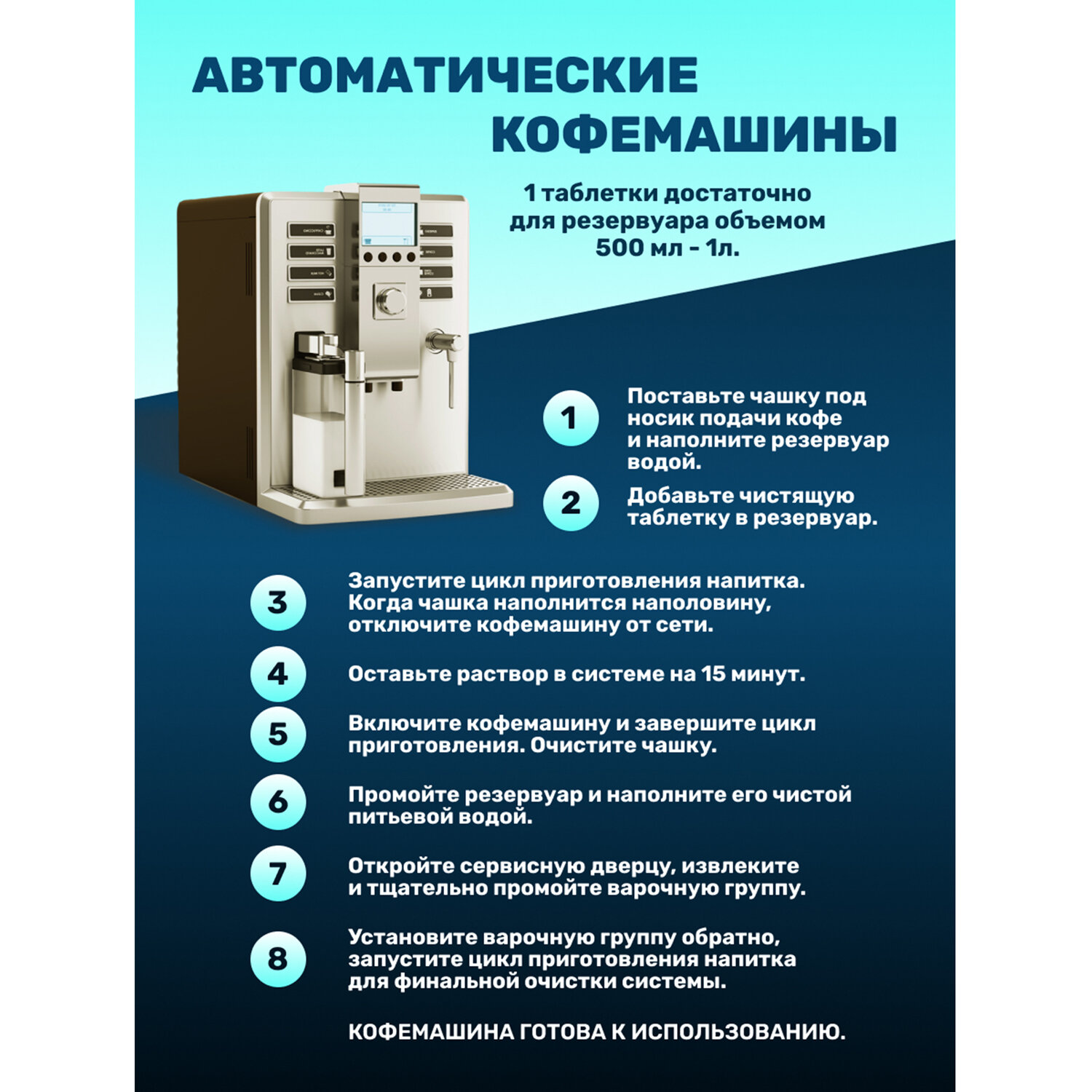 Таблетки для очистки кофемашин 12 шт., CLEAN&FRESH Код товара: 609703 208,97 ₽ Купить Производитель:Clean&Fresh Таблетки для удаления накипи и кофейных масел CLEAN&FRESH помогут сохранять кофемашину в хорошем состоянии и продлить срок ее службы! Состав: фосфаты менее 30%, отбеливающие средства на основе кислорода менее15%, неиногенные ПАВ менее 5%, фосфонаты менее 5%, антиресорьенты менее 2%, функциональные добавки.Производство: РоссияНазначение: очистка кофемолокПрименение для: кофемашиныДействие: очисткаФорма: таблеткиОбъем/Вес: 120 мл/гСерия: кофемашиныУпаковка: картонный коробСрок годности: 36 месРазмер упаковки: 1.8 × 15.8 × 7.1 смОбъём: 0.0003 м3Промежуточная упаковка: 10 штТранспортная упаковка: 10 штШтрих-код: 4660002311793 Файлы Сертификат-1.jpg Сертификат-2.jpg