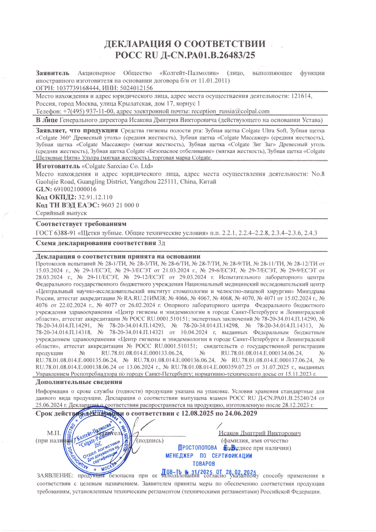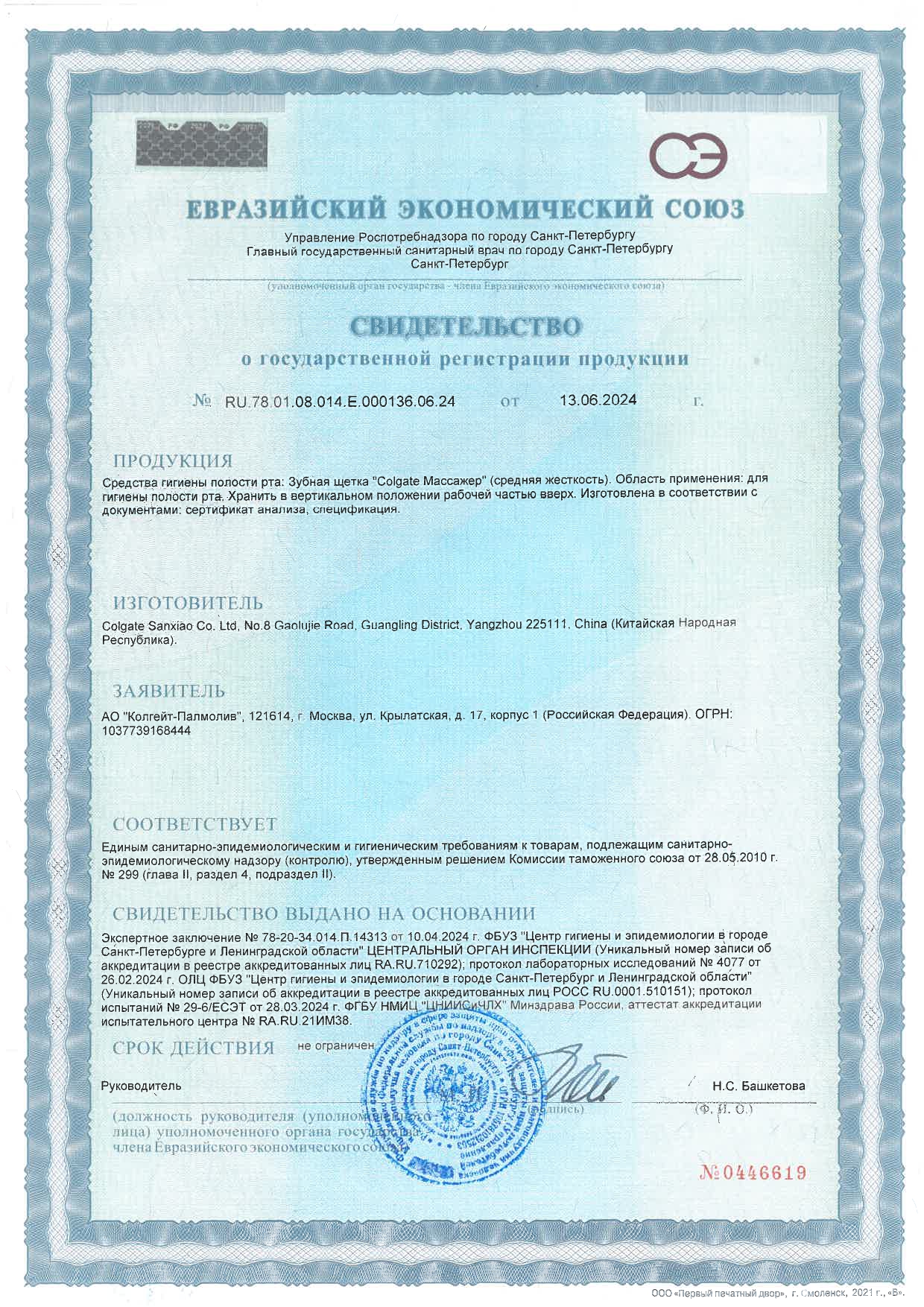 Зубная щетка НАБОР (1+1) COLGATE "Массажер", средней жесткости Код товара: 609071 203,69 ₽ Купить Производитель:COLGATE Зубная щетка средней жесткости COLGATE "Массажер" эффективно чистит зубы и не повреждает десны. Такой эффект достигается благодаря качественному волокну щетины и гибкой ручке. В Colgate "Массажер" сочетаются щетинки средней жесткости и мягкие прорезиненные. Она специально разработана для эффективного удаления зубного налета и массажа десен. В набор Colgate "Массажер" входят 2 зубные щетки разных цветов. Преимущества щеток: - мягкие резиновые щетинки бережно массируют десны, стимулируя кровообращение. - разноуровневые щетинки позволяют эффективно удалять налет и остатки пищи из межзубных промежутков. - гибкая головка щетки адаптируется к контурам зубов. Рекомендации: Чистите зубы не менее двух раз в день или по указанию стоматолога или врача. Используйте зубную пасту и щетку Colgate, подходящие для вашей полости рта. Стоматологи и гигиенисты рекомендуют менять зубную щетку каждые 3 месяца. Срок хранения: при целостности упаковки срок годности не ограничен. Состав на упаковке: ручка – полипропилен, термопластичный эластомер; щетинки – нейлон.Производство: КитайТип товара: зубная щеткаЖесткость щетины: средняяРезиновые вставки в щетине: даНаличие скребка для языка: даПрорезиненная вставка на рукоятке : даКоличество в упаковке: 2 шт.Особенности щетки: НаборСерия: МассажерВозрастная группа: взрослаяЦвет ассорти: даВес: 50 грРазмер упаковки: 2.2 × 22.8 × 6.9 смОбъём: 0.0005 м3Промежуточная упаковка: 48 штТранспортная упаковка: 48 штШтрих-код: 5900273113405 Сертификат-1.jpg Сертификат-2.jpg