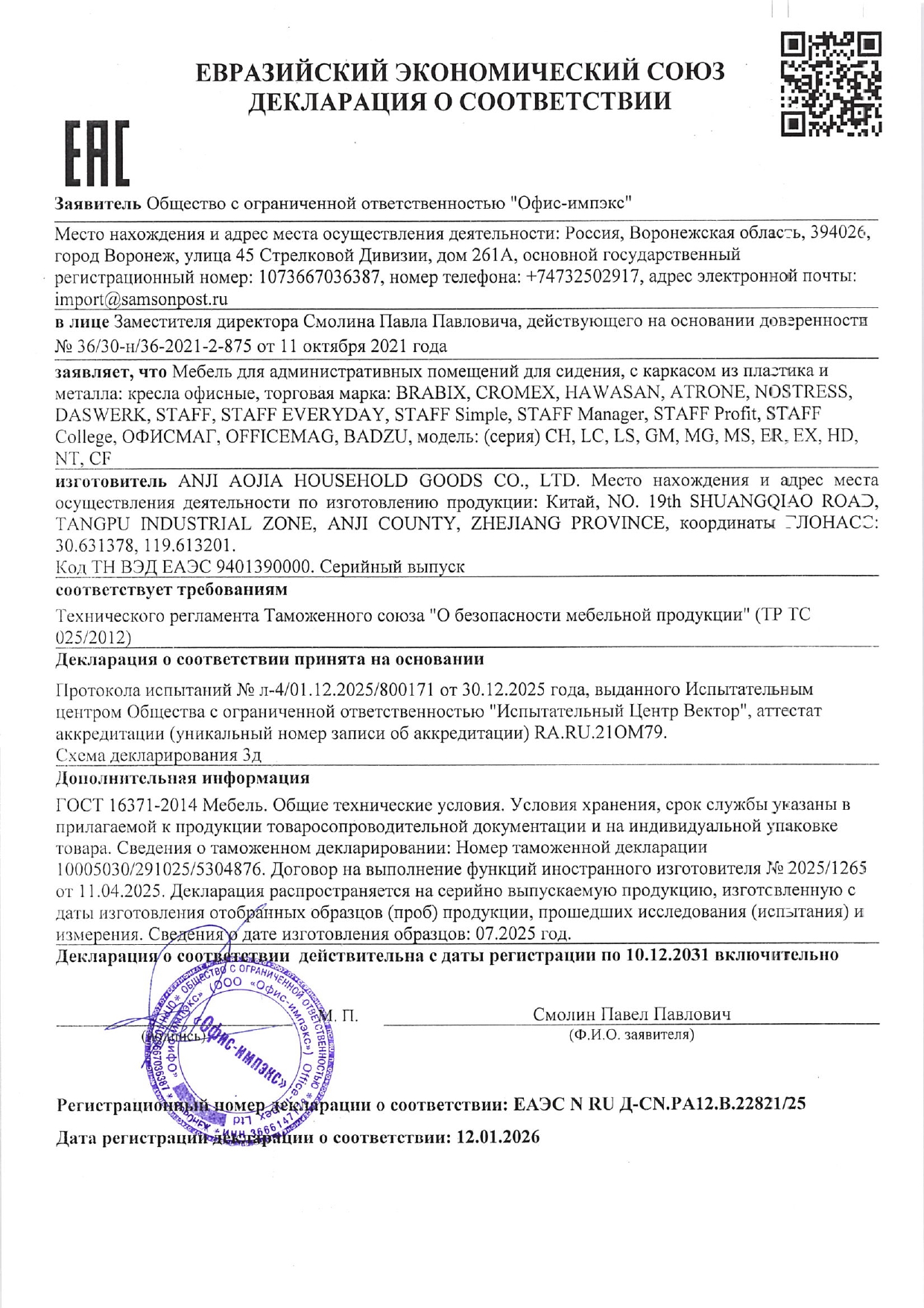 Кресло CROMEX (КРОМЕКС) "Top CH-695", ХРОМ, с подлокотниками, сетка/ткань TW, черное Код товара: 533066 3 687 ₽ Купить Производитель:CROMEX Кресло CROMEX "Top CH-695" – доступное, качественное кресло с эргономичной сетчатой спинкой на хромированном пятилучии. Прекрасный вариант для повседневной работы в офисе и дома. Спинка выполнена из прочного материала – акриловой сетки и имеет выраженную поясничную поддержку, обеспечивающую комфортную посадку в течение всего рабочего дня. Ткань TW обладает высокой воздухопроницаемостью и прочностью, практически не истирается. Наполнитель сиденья – утолщенный поролон средней жесткости. Кресло способно выдержать нагрузку до 100 кг! Модель оснащена регулировкой по высоте посадки. Неприхотливая модель для дома и офиса среднего ценового сегмента.Производство: КитайМатериал обивки: сетка/ткань TWЦвет обивки: черныйМаксимальная нагрузка: до 100 кгТип механизма: "Up&Down" - регулировка высоты кресла Сетка в спинке : даКрестовина (пятилучие): хромированный металлПодлокотники: пластик черныйМинимальная высота кресла: 880 ммМаксимальная высота кресла: 980 ммШирина кресла: 570 ммМинимальная высота до сиденья: 450 ммМаксимальная высота до сиденья: 550 ммСиденье ширина: 490 ммСиденье глубина: 460 ммСпинка ширина: 440 ммСпинка высота: 440 ммПоставляется в разобранном виде: даСерия: TopСоответствует требованиям ГОСТа: нетВес: 7,8 кгРазмер упаковки: 51.3 × 52.6 × 29.7 смОбъём: 0.0801 м3Промежуточная упаковка: 1 штТранспортная упаковка: 1 штШтрих-код: 4606224461236 Сертификат-1.jpg Сертификат-2.jpg Сертификат-3.jpg