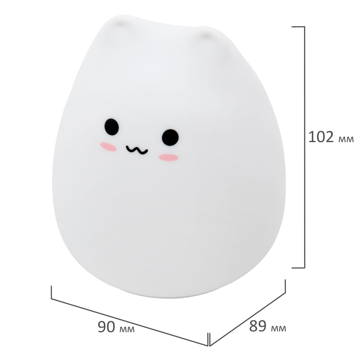 Ночник силиконовый LED "Котик" 90x89x102 мм, белый свет/RGB, таймер, USB, аккумулятор 400 мАч, DASWERK (ДАСВЕРК) Код товара: 238935 617,55 ₽ Купить Производитель:DASWERK Силиконовый ночник DASWERK предназначен для мягкого освещения пространства. Этот милый котик станет не только забавным элементом декора, но и поможет владельцу уснуть в комфортной обстановке. Силиконовый ночник DASWERK в очаровательном дизайне мягко рассеивает свет, создавая тёплую и спокойную атмосферу в любой комнате – будь то детская, спальня или гостиная. Корпус из приятного на ощупь силикона безопасен для самых маленьких, не нагревается и устойчив к деформации, поэтому его можно использовать даже как антистресс-игрушку. Если легко стукнуть по ночнику, он поменяет цвет. Встроенный аккумулятор обеспечивает автономную работу до 5 часов.Производство: КитайПитание: аккумуляторТаймер включения/отключения: даПереключение режимов света: даЦвет корпуса: белый матовыйМатериал корпуса: силиконДизайн: КотикСерия: DAS HAUSИсточник света: светодиодыМощность: 1.6 ВтВысота: 10.2 смШирина: 9 смГлубина: 8.9 смУпаковка: колорбоксВес: 190 грРазмер упаковки: 9.2 × 10.9 × 9.3 смОбъём: 0.0012 м3Промежуточная упаковка: 50 штТранспортная упаковка: 50 штШтрих-код: 4606224500263 Сертификат-1.jpg Сертификат-2.jpg