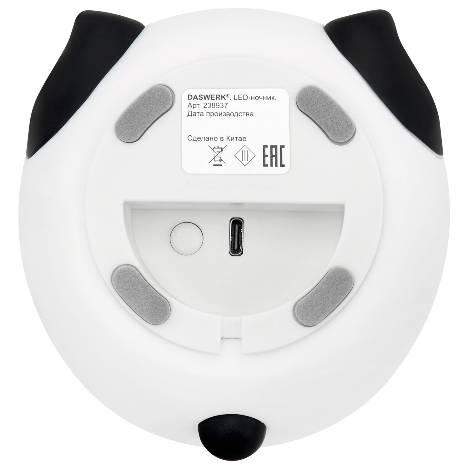 Ночник силиконовый LED "Панда" 106x112x136 мм, белый свет/RGB, таймер, USB, аккумулятор 1200 мАч, DASWERK (ДАСВЕРК) Код товара: 238937 770,16 ₽ Купить Производитель:DASWERK Силиконовый ночник DASWERK предназначен для мягкого освещения пространства. Эта милая панда станет не только забавным элементом декора, но и поможет владельцу уснуть в комфортной обстановке. Силиконовый ночник DASWERK в очаровательном дизайне мягко рассеивает свет, создавая тёплую и спокойную атмосферу в любой комнате – будь то детская, спальня или гостиная. Корпус из приятного на ощупь силикона безопасен для самых маленьких, не нагревается и устойчив к деформации, поэтому его можно использовать даже как антистресс-игрушку. Если легко стукнуть по ночнику, он поменяет цвет. Встроенный аккумулятор обеспечивает автономную работу до 10 часов.Производство: КитайПитание: аккумуляторТаймер включения/отключения: даПереключение режимов света: даЦвет корпуса: белый матовыйМатериал корпуса: силиконДизайн: ПандаСерия: DAS HAUSИсточник света: светодиодыМощность: 3 ВтВысота: 13.6 смШирина: 11.2 смГлубина: 10.6 смУпаковка: колорбоксВес: 321 грРазмер упаковки: 11.1 × 14 × 11.8 смОбъём: 0.0022 м3Промежуточная упаковка: 30 штТранспортная упаковка: 30 штШтрих-код: 4606224500287 Сертификат-1.jpg Сертификат-2.jpg