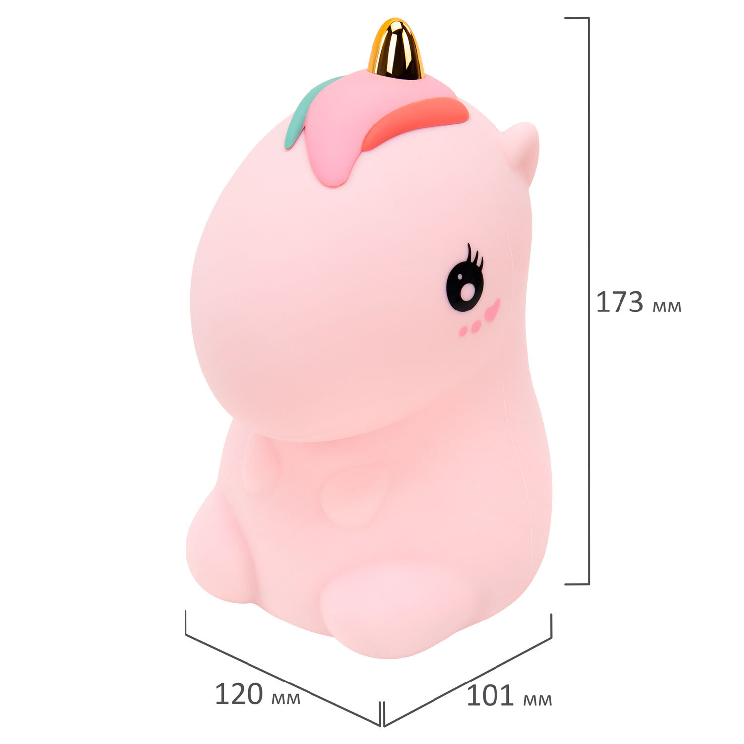 Ночник силиконовый LED "Единорог" 101x120x173 мм, белый свет/RGB, таймер, USB, аккумулятор 1200 мАч, DASWERK (ДАСВЕРК) Код товара: 238941 752,44 ₽ Купить Производитель:DASWERK Силиконовый ночник DASWERK предназначен для мягкого освещения пространства. Этот милый единорог станет не только забавным элементом декора, но и поможет владельцу уснуть в комфортной обстановке. Силиконовый ночник DASWERK в очаровательном дизайне мягко рассеивает свет, создавая тёплую и спокойную атмосферу в любой комнате – будь то детская, спальня или гостиная. Корпус из приятного на ощупь силикона безопасен для самых маленьких, не нагревается и устойчив к деформации, поэтому его можно использовать даже как антистресс-игрушку. Если легко стукнуть по ночнику, он поменяет цвет. Встроенный аккумулятор обеспечивает автономную работу до 10 часов.Производство: КитайПитание: аккумуляторТаймер включения/отключения: даПереключение режимов света: даЦвет корпуса: светло-розовыйМатериал корпуса: силиконДизайн: ЕдинорогСерия: DAS HAUSИсточник света: светодиодыМощность: 2.5 ВтВысота: 17.3 смШирина: 12 смГлубина: 10.1 смУпаковка: колорбоксВес: 351 грРазмер упаковки: 10.8 × 17.9 × 12.2 смОбъём: 0.0028 м3Промежуточная упаковка: 30 штТранспортная упаковка: 30 штШтрих-код: 4606224500324 Сертификат-1.jpg Сертификат-2.jpg