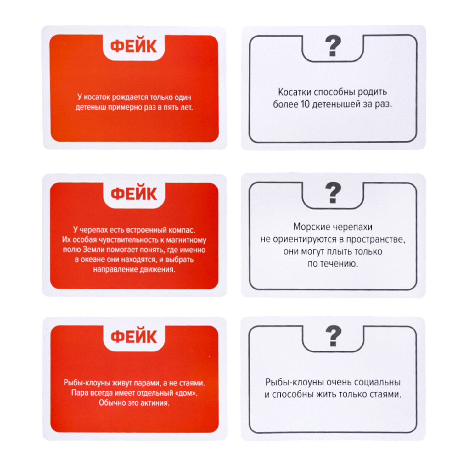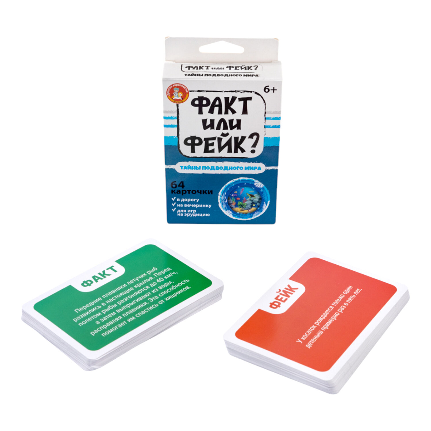 Настольная игра "Факт или фейк?", АССОРТИ, 10 КОР Код товара: 665863 222,24 ₽ Купить Производитель:ДЕСЯТОЕ КОРОЛЕВСТВО Настольные игры – хороший способ весело и интересно провести время в кругу семьи или друзей. Подходят как для семейных вечеров, так и для больших и шумных компаний. Детская настольная игра для большой компании "Факт или Фейк?" – это интересная игра в удобном формате, которую можно взять с собой на вечеринку, в гости или в дорогу. С этой игрой вы проверите уровень знаний о космосе и интересно проведете время в компании. Состав игры: • карточки – 64 шт. (8х11,9 см); • инструкция – на обратной стороне упаковки.Производство: РоссияТип игры: настольнаяЖанр игры: -Сюжет: -Возраст: 6+Количество игровых элементов: 64 шт.Мин. количество игроков: 2Макс. количество игроков: 8Время игры: 30 минМатериал: картонУпаковка: картонная коробкаВес: 183 грРазмер упаковки: 2.8 × 14.5 × 8.5 смОбъём: 0.0003 м3Промежуточная упаковка: 8 штТранспортная упаковка: 40 штШтрих-код: 4606088054148 Файлы Сертификат-1.jpg Сертификат-2.jpg Сертификат-3.jpg Сертификат-4.jpg Сертификат-5.jpg Сертификат-6.jpg