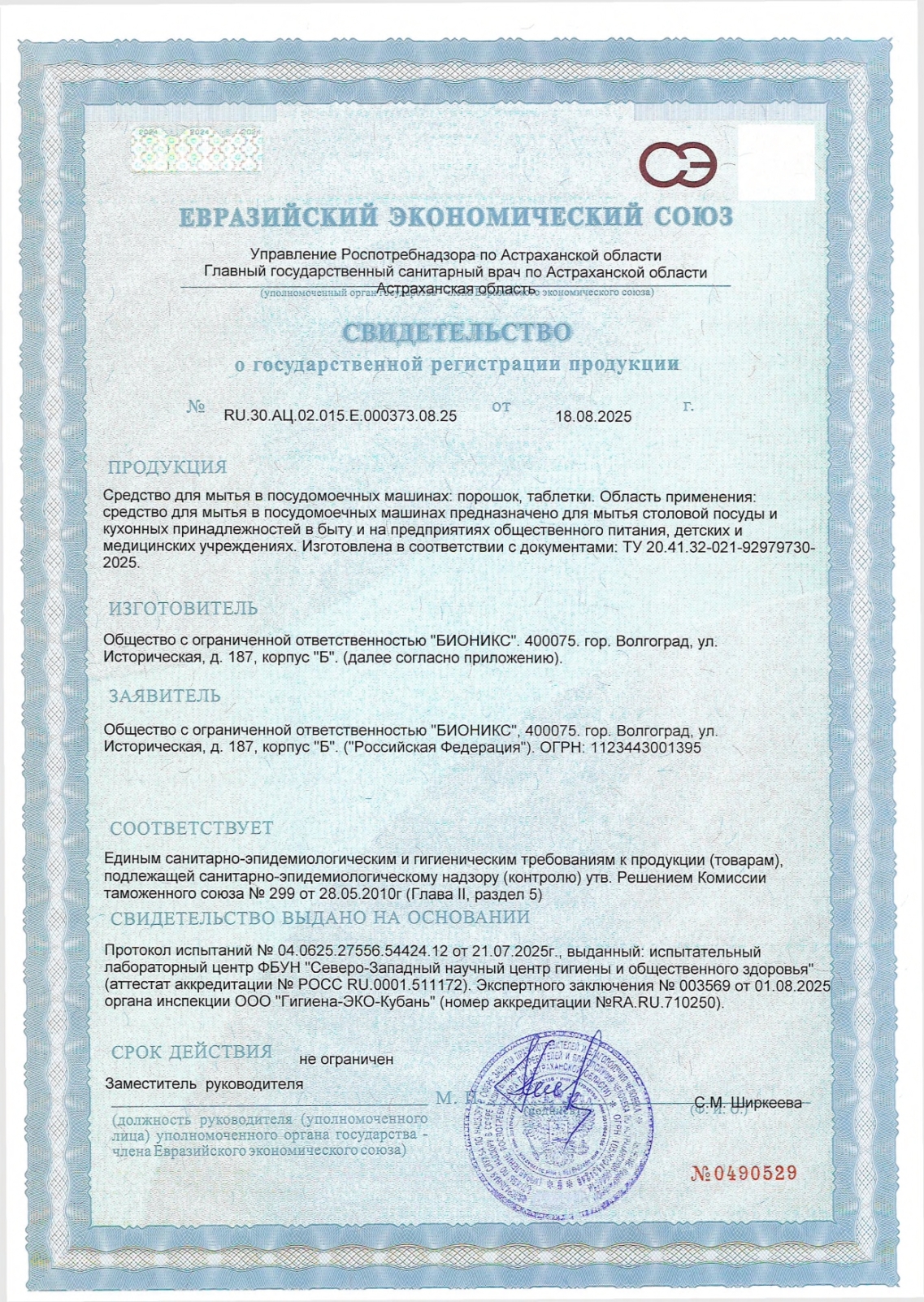 Таблетки для посудомоечных машин 60 штук, DIWASH Код товара: 604642 445,92 ₽ Купить Производитель:DIWASH Средство для мытья посуды в посудомоечных машинах в таблетках. Удаляет сложные и засохшие загрязнения посуды, в том числе пятна крахмала и жира. Отлично очищает посуду и столовые приборы, придавая им блеск. Защищает от накипи и коррозии. Используйте таблетки вместе с солью и ополаскивателем. Состав: – менее 5% кислородосодержащий отбеливатель; – активатор TAED; – менее 5% неионогенные ПАВ; – фосфаты 5-15%; – фосфонаты; – силикаты; – энзимы; – поликарбоксилаты; – ароматизатор; – лимонен. Каждая таблетка в упаковке. Упаковка НЕ водорастворимая.Производство: РоссияТип товара: средство для мытья посудыФорма выпуска: таблеткиСерия: TABSКоличество капсул/таблеток: 60 шт.Отдушка: нетВес / Объём: 1200 г/млВсе в 1: даТип упаковки: картонный коробСрок годности: 24 месВес: 1,33 кгРазмер упаковки: 7.6 × 20.5 × 18.3 смОбъём: 0.0035 м3Промежуточная упаковка: 6 штТранспортная упаковка: 6 штШтрих-код: 4650063430588 Файлы Сертификат-1.jpg Сертификат-2.jpg Сертификат-3.jpg Сертификат-4.jpg Сертификат-5.jpg Сертификат-6.jpg Сертификат-7.jpg Сертификат-8.jpg Сертификат-9.jpg Сертификат-10.jpg Сертификат-11.jpg Сертификат-12.jpg Сертификат-13.jpg Сертификат-14.jpg Сертификат-15.jpg Сертификат-16.jpg Сертификат-17.jpg Сертификат-18.jpg Сертификат-19.jpg Сертификат-20.jpg Сертификат-21.jpg Сертификат-22.jpg Сертификат-23.jpg Сертификат-24.jpg Сертификат-25.jpg Сертификат-26.jpg Сертификат-27.jpg Сертификат-28.jpg