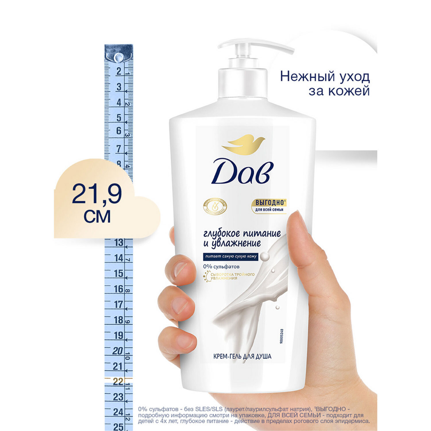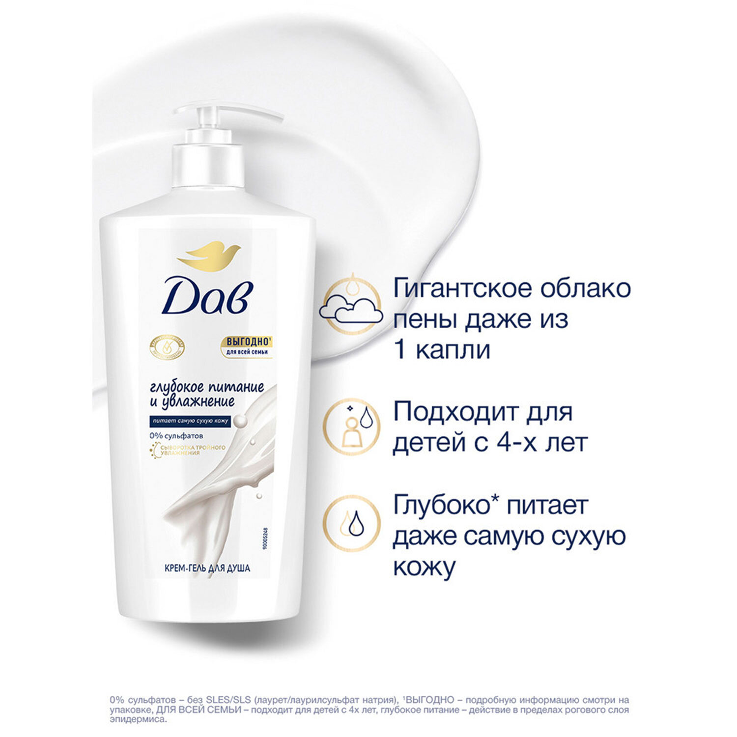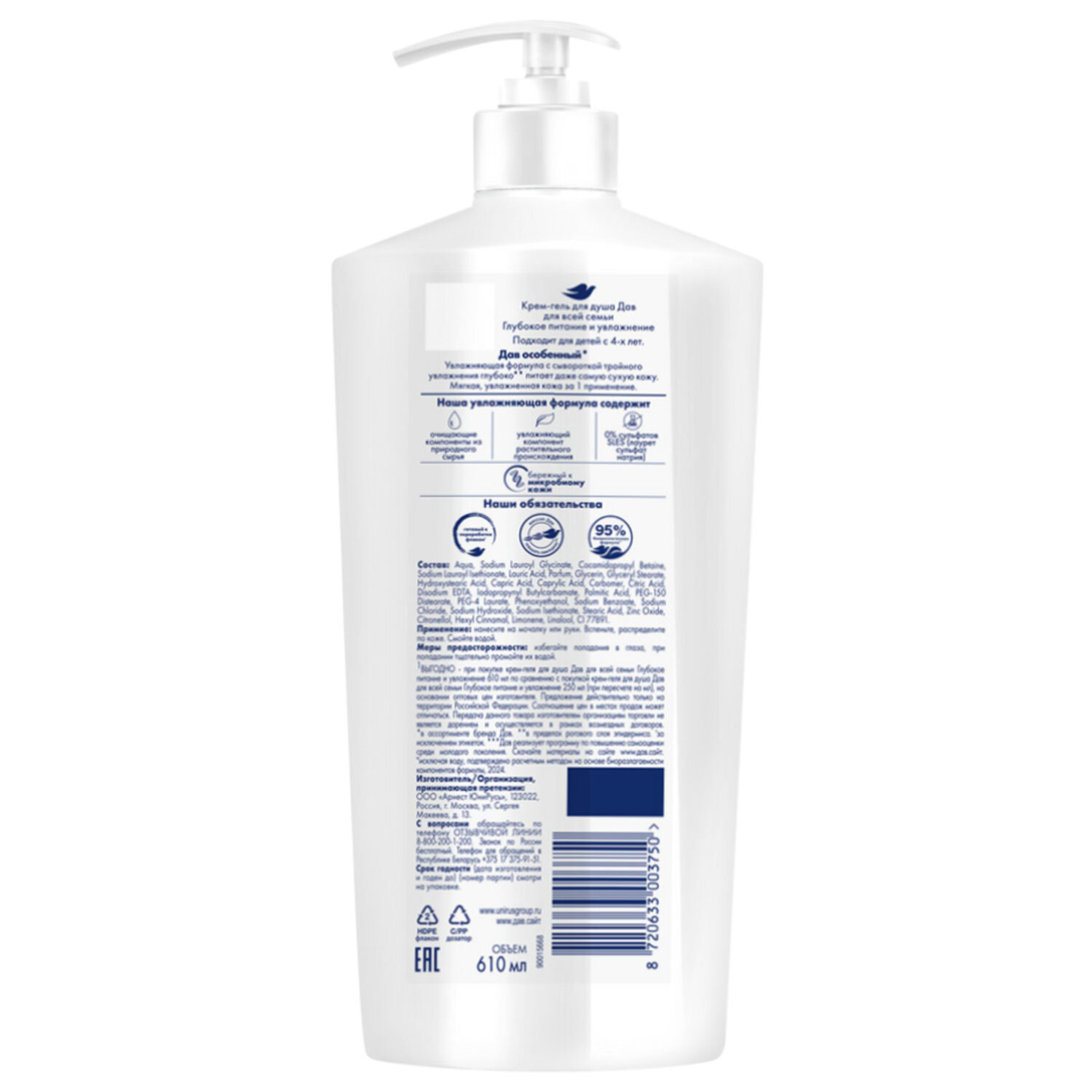Бессульфатный гель для душа ДАВ экономично расходуется, создавая гигантское облако пены всего от одной капли. Уходовое средство превращает обычный прием душа в приятный расслабляющий спа-ритуал, позволяя отдохнуть после тяжелого дня, посвятить время себе и своей красоте. Увлажняющий гель для душа с дозатором разработан на основе 95% биоразлагаемой формулы. Смягчает и увлажняет кожу всего за 1 применение. Гель для душа большого объема (610 мл) представлен по выгодной цене.