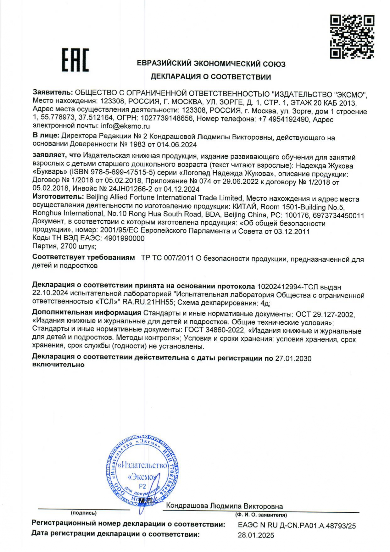 Букварь, Жукова Н.С. Код товара: 690082 597,52 ₽ Купить Производитель:ЭКСМО При составлении "Букваря" автор использовал свой 30-летний опыт работы логопеда, что впервые позволило сочетать обучение грамоте с предупреждением ошибок при письме, возникающих в школьном возрасте. "Букварь" основан на традиционном подходе к обучению чтению на русском языке, дополняя традиционный подход оригинальным способом обучения ребенка осознанию буквосочетания как цельного графического элемента – слога в качестве единицы чтения (в дальнейшем письма). "Букварь" не имеет развлекательного или занимательного характера, его задача – обеспечить ребенку наибыстрейшее овладение техникой чтения, что должно доставить детям радость и удовольствие в награду за труд. Надеемся, что наши дети, овладев без особых затруднений чтением, возьмут в руки книгу как орудие культуры и источник знаний.Производство: КитайИздательство: ЭксмоАвтор: Жукова Н.С.Серия: Логопед Надежда ЖуковаТематика: Развитие ребенка и подготовка к школе (4-6 лет)Год издания: 2002Количество страниц: 96Тип обложки: твердый переплетЯзык издания: русскийВозрастное ограничение: 0+ISBN: 978-5-699-47515-5Вес: 424 грРазмер упаковки: 1.1 × 27 × 20.6 смОбъём: 0.0006 м3Промежуточная упаковка: 14 штТранспортная упаковка: 14 штШтрих-код: 9785699475155 Сертификат-1.jpg Сертификат-2.jpg Сертификат-3.jpg