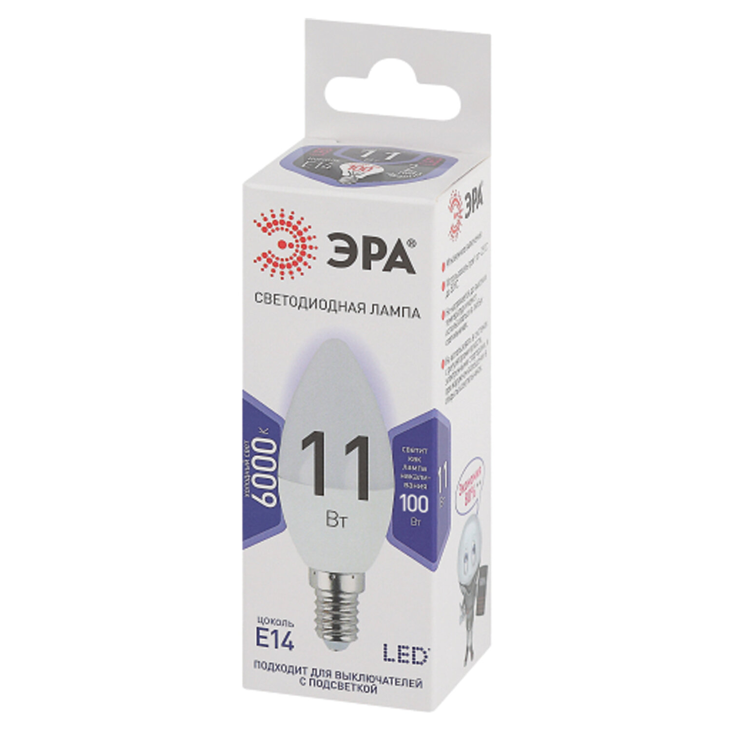 Лампа светодиодная ЭРА STD, 11 (100) Вт, цоколь E14, свеча, холодный белый свет, 35000 ч., LED B35-11W-860-E14 Код товара: 457675 122,41 ₽ Купить Производитель:ЭРА Экономичная светодиодная лампа ЭРА STD с отличными характеристиками для установки в люстры и все типы бытовых светильников – потолочные, настольные, бра. Бережет электроэнергию, ярко светит, имеет долгий срок службы. Цветовая температура – холодный белый свет. Такое освещение бодрит, повышает работоспособность. Этот современный источник света создает комфортное и безопасное для глаз освещение.Производство: Китай Тип цоколя : E14Оттенок света: холодный белыйМощность: 11 ВтТип лампы: светодиоднаяТип колбы: свечеобразнаяВид колбы: матоваяМинимальное рабочее напряжение: 170 ВМаксимальное рабочее напряжение: 265 ВМощность эквивалентной по световому потоку лампы накаливания: 100 ВтСветовой поток: 880 ЛмЦветовая температура: 6000 КИндекс цветопередачи: 80 %Срок службы: 35000 ч.Высота (длина) лампы: 110 ммДиаметр лампы: 37 ммВес: 27 грРазмер упаковки: 3.8 × 13.4 × 3.8 смОбъём: 0.0002 м3Промежуточная упаковка: 10 штТранспортная упаковка: 100 штШтрих-код: 5056183732424 Файлы Сертификат-1.jpg Сертификат-2.jpg Сертификат-3.jpg Сертификат-4.jpg Сертификат-5.jpg