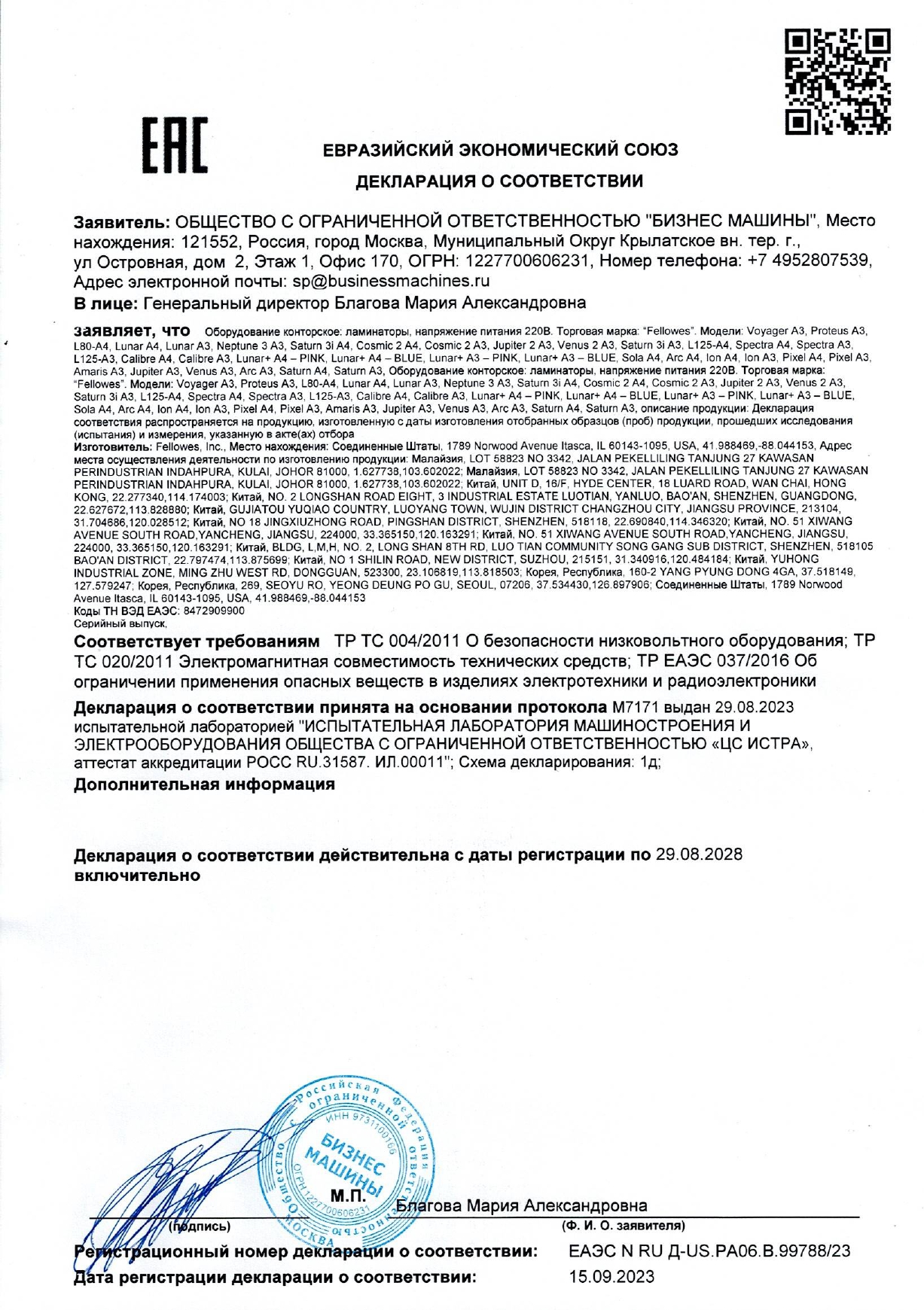 Ламинатор FELLOWES ARC A4, 75-80 мкм, 30 см/мин., автоотключение, Jam Free, набор пленок Код товара: 532109 5 673,05 ₽ Купить Производитель:FELLOWES Ламинатор FELLOWES ARC позволяет надежно заламинировать документы, презентационные, рекламные материалы и многое другое. Рычаг освобождения поможет изъять неправильно поданный документ. Корпус ламинатора не перегревается во время работы. Новый компактный ламинатор начального уровня FELLOWES ARC A4 предназначен для использования в условиях домашнего офиса. Ламинатор рассчитан для работы с наиболее популярными плёнками толщиной 75-80 мкм. FELLOWES ARC A4 прост и понятен в управлении, у него есть всего лишь одна кнопка - включение. Ламинатор имеет универсальный температурный режим, который прекрасно подойдет для большинства повседневных задач. Зеленый световой сигнал подскажет о готовности к началу работы уже через 4 минуты после включения. Рычаг для освобождения некорректно поданного документа позволит избегать образования заторов. Благодаря компактным размерам и плоскому корпусу вы сможете разместить его в любом удобном месте на рабочем столе. Ламинатор FELLOWES ARC A4 надежно защитит фотографии, детские рисунки, открытки, грамоты и другие документы от влаги, загрязнения и навсегда сохранит их привлекательный внешний вид. Вся информация на сайте о товарах носит справочный характер и не является публичной офертой в соответствии с пунктом 2 статьи 437 ГК РФ. Производитель оставляет за собой право изменять характеристики товара, его внешний вид и комплектность без предварительного уведомления продавца.Производство: КитайМаксимальный формат ламинирования: А4Тип ламинатора: пакетныйТип ламинирования: горячееМакс. толщина пленки: 80 мкмМакс. толщина документа: 0.4 ммВремя нагрева: 240 секундСерия: ARCКоличество валов: 2 шт.Скорость ламинирования: 30 см/мин.Индикация о готовности к работе: даФункция разжима валов: даАвтовыключение после простоя: 30 минут Цвет: черныйВысота: 62 ммШирина: 359 ммДлина: 113 ммВес: 1 кгРазмер упаковки: 9.8 × 39.4 × 14.2 смОбъём: 0.0069 м3Промежуточная упаковка: 4 штТранспортная упаковка: 4 штШтрих-код: 0043859752867 Файлы Приложение-1.pdf Сертификат-1.jpg Сертификат-2.jpg Сертификат-3.jpg