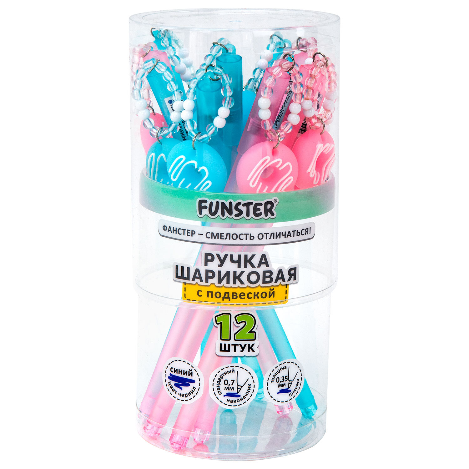 Ручка с подвеской шариковая FUNSTER (ФАНСТЕР) "DONUT", СИНЯЯ, ассорти, пишущий узел 0,7 мм, линия письма 0,35 мм Код товара: 144373 52,85 ₽ Купить Производитель:FUNSTER Ручка с подвеской шариковая FUNSTER "DONUT" – это надежный инструмент для письма и источник радости и вдохновения на каждый день. Надежный круглый корпус ручки выполнен в двух дизайнах ассорти розового и голубого цвета. Колпачок ручки дополнен подвеской с аппетитным пончиком – дизайн, который станет украшением любого рабочего пространства. Пишущий узел стандартной формы диаметром 0,7 мм обеспечит аккуратную линию письма толщиной 0,35 мм. Цвет чернил – синий, что делает ручку универсальной для повседневных дел.Производство: КитайТип ручки: шариковаяЦвет чернил: синийТолщина линии письма: 0.35 ммДиаметр пишущего узла: 0.7 ммСерия: Ручка с топперомДлина сменного стержня: 129 ммФорма наконечника: стандартныйПокрытие корпуса: -Форма корпуса: с топперомЦвет корпуса: ассортиДизайн: ПончикУпаковка: пластиковая тубаСрок годности: 60 месВес: 18 грРазмер упаковки: 1.1 × 17.3 × 3.5 смОбъём: 0.0002 м3Промежуточная упаковка: 12 штТранспортная упаковка: 432 штШтрих-код: 4606224466743 Сертификат-1.jpg Сертификат-2.jpg