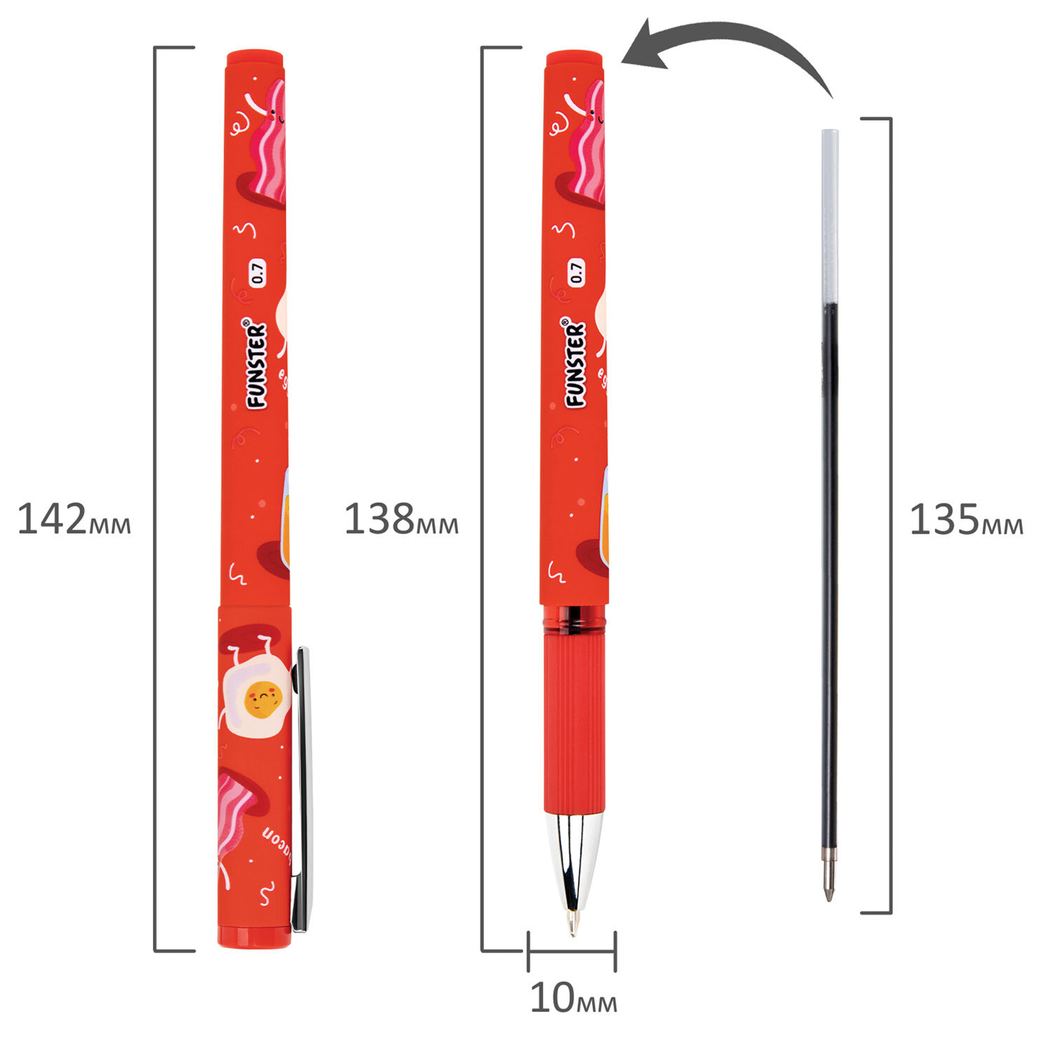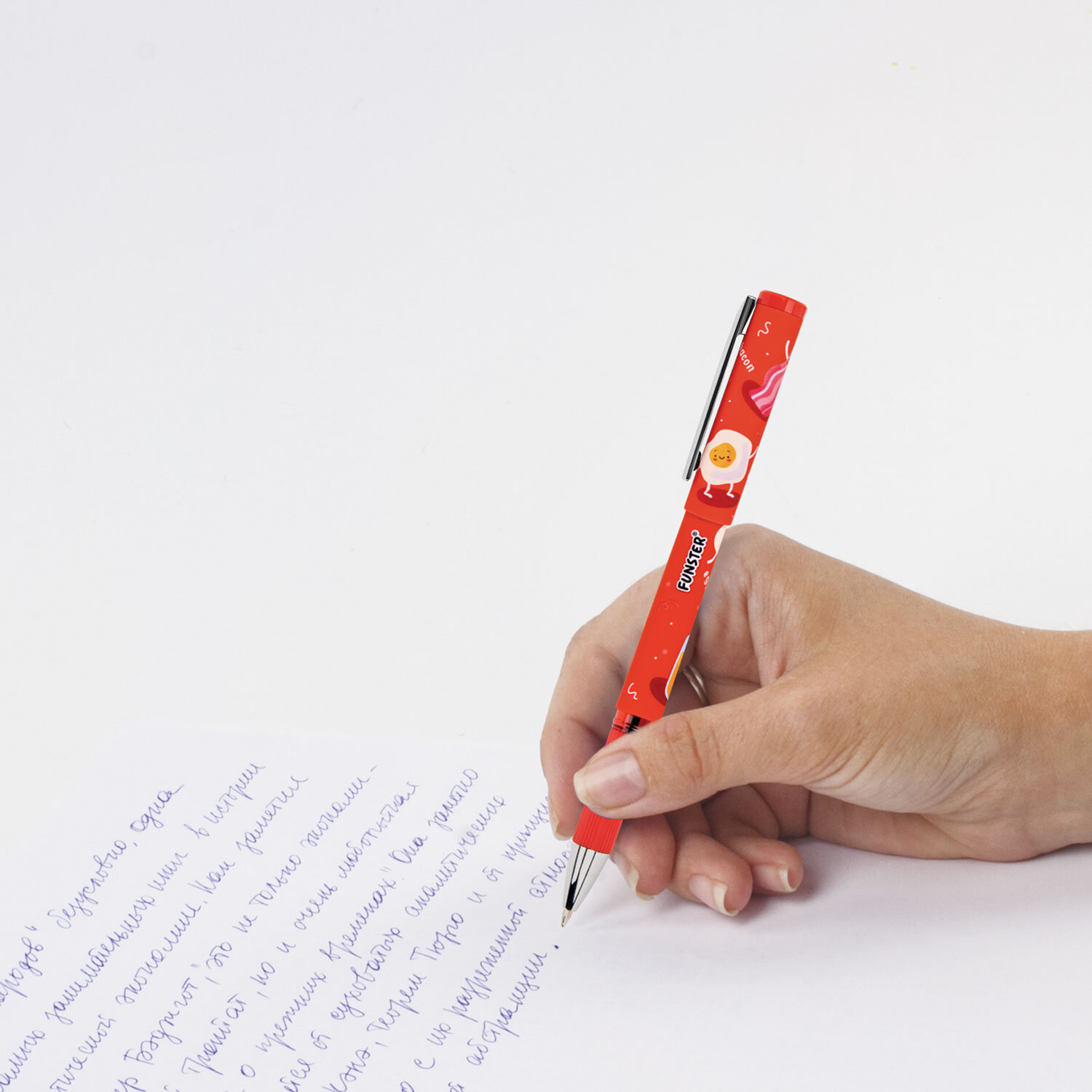 Ручка шариковая с грипом FUNSTER (ФАНСТЕР) GRIP "TASTY FOOD", СИНЯЯ, пишущий узел 0,7 мм, линия письма 0,35 мм Код товара: 144394 78,45 ₽ Купить Производитель:FUNSTER Шариковая ручка FUNSTER GRIP "TASTY FOOD" – идеальный письменный аксессуар для ценителей креативной эстетики и гастрономического вдохновения. Шариковая ручка FUNSTER GRIP "TASTY FOOD" – это стильная ручка с ярким дизайном, украшенная аппетитными изображениями еды, представленная в черном и красном цветах. Ручка оснащена мягким резиновым грипом для более удобного письма и надежным для крепления металлическим клипом. Стандартный пишущий узел диаметром 0,7 мм позволяет создавать линию письма 0,35 мм.Производство: КитайЦвет чернил: синийКоличество в комплекте: 1 шт.Толщина линии письма: 0.35 ммДиаметр пишущего узла: 0.7 ммФорма наконечника: стандартныйДлина сменного стержня: 135 ммСерия: GRIP DESIGNСтиль: с рисункомЭргономичная зона захвата: резиновый держательЦвет корпуса: ассортиДлина письма: 1000 мДизайн: ассортиФорма корпуса: круглаяПокрытие корпуса: Soft-touchУпаковка: пластиковая тубаСрок годности: 60 месВес: 12 грРазмер упаковки: 1.2 × 14.2 × 1.5 смОбъём: 0.0001 м3Промежуточная упаковка: 24 штТранспортная упаковка: 288 штШтрих-код: 4606224469140 Файлы Сертификат-1.jpg Сертификат-2.jpg Сертификат-3.jpg Сертификат-4.jpg