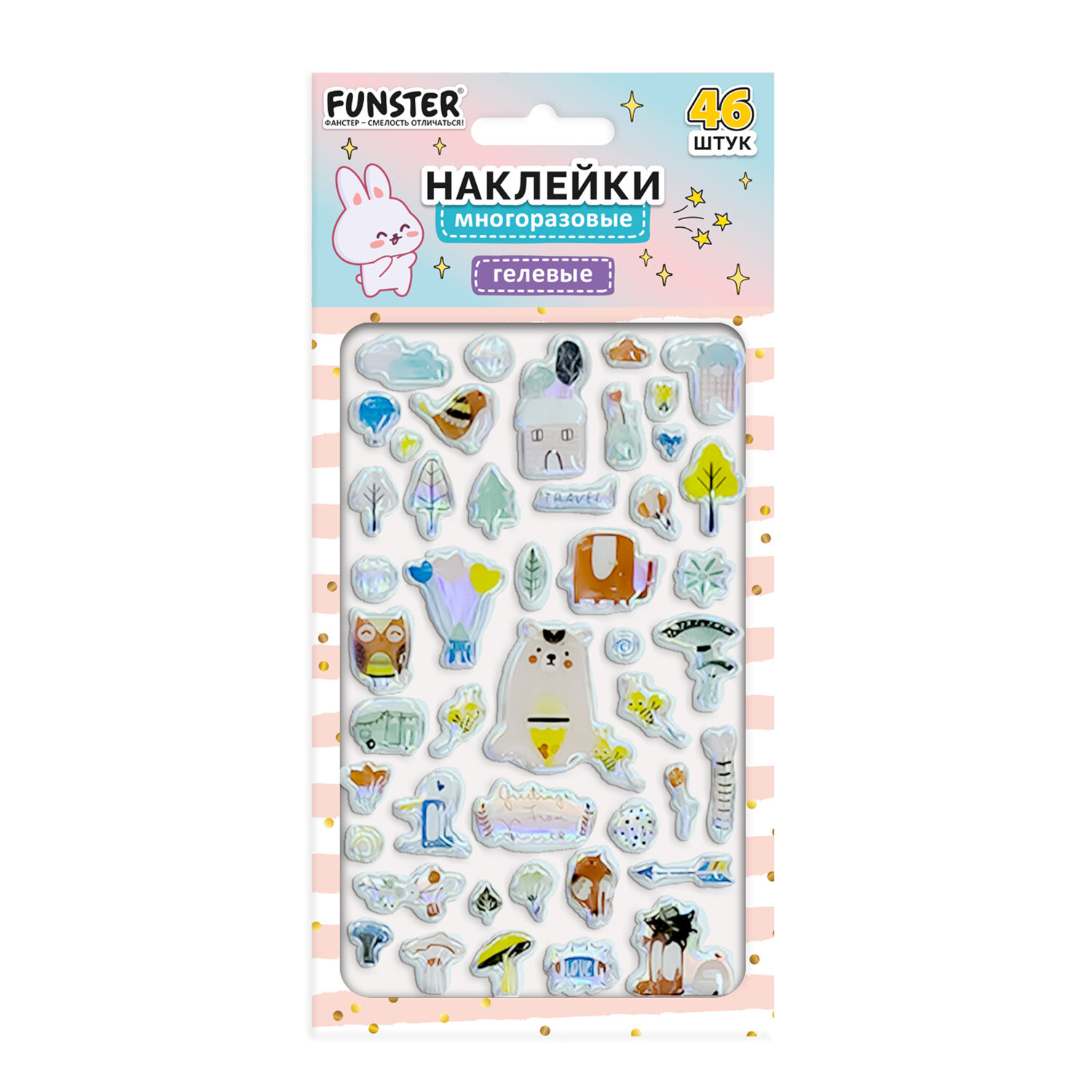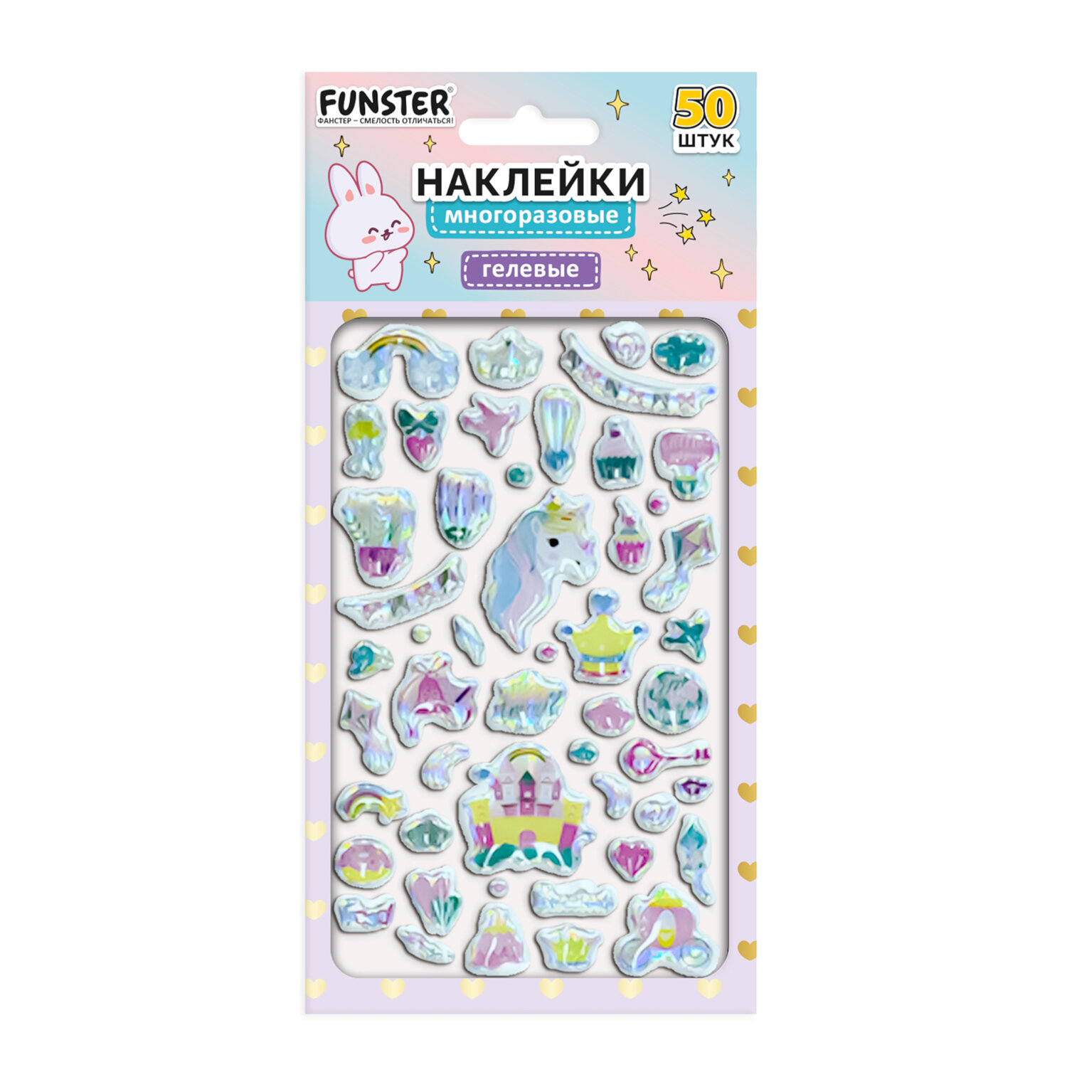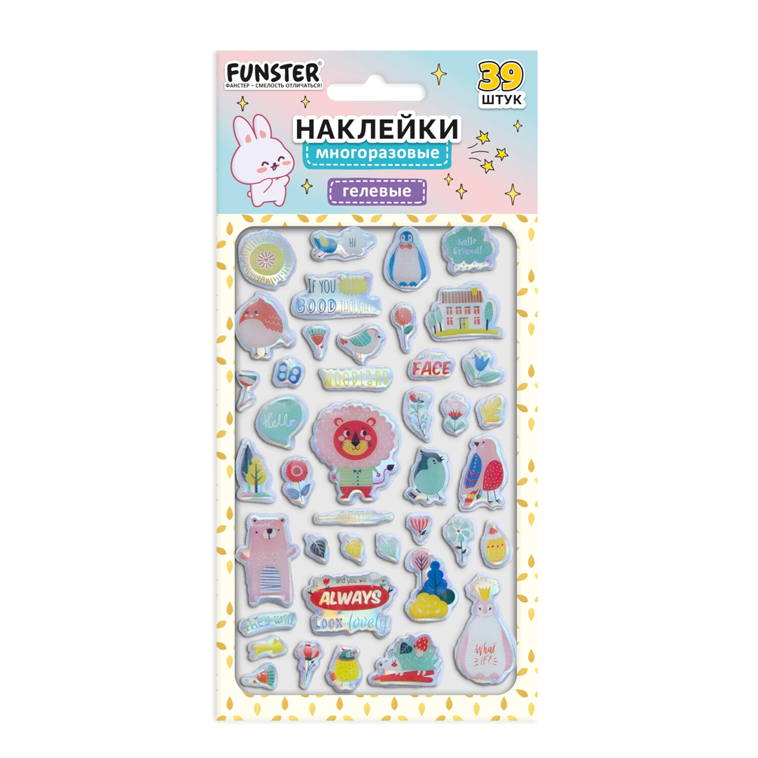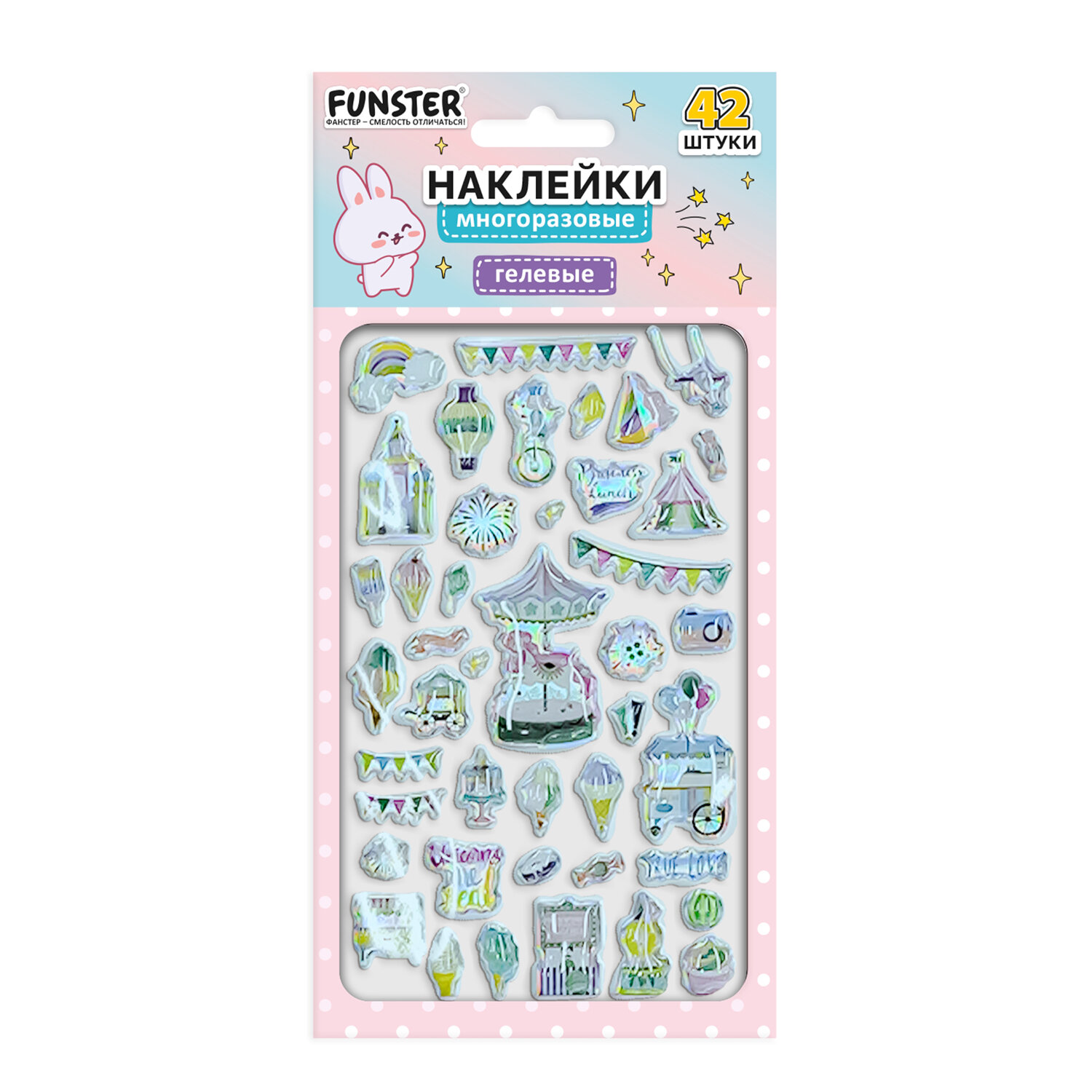 Наклейки гелевые "Блестящий микс", 15,5х9,5 см, ассорти 6 видов, FUNSTER (ФАНСТЕР) Код товара: 666086 99 ₽ Купить Производитель:FUNSTER Гелевые наклейки FUNSTER - идеальный выбор для творчества! Эти очаровательные наклейки в ярких дизайнах ассорти поднимут настроение и добавят красок в повседневность. Превратите обычные вещи в яркие и милые аксессуары с многоразовыми наклейками! Они легко клеятся на бумагу, картон, пластик, стекло, дерево и другие поверхности, а благодаря качественному клеевому слою их можно переклеивать без следов. В наборе от 39 до 52 наклеек с трендовыми дизайнами, которые впишутся в любой стиль и идеально его дополнят. Высокое качество печати гарантирует, что наклейки долго остаются яркими и радуют глаз. А гладкая голографическая поверхность добавляет тактильного удовольствия!Производство: КитайТип наклеек: гелевыеСерия: ГелевыеТематика: Блестящий миксКоличество наклеек: 39 шт.Тип поверхности наклеивания: любаяОбъемные: даМногократное переклеивание без потери качества: даДлина листа: 155 ммШирина листа: 95 ммМатериал: полимерыВозрастная группа: от 3 летПол ребенка: универсальныеУпаковка: пакет с европодвесомСрок годности: 60 месВес: 15 грРазмер упаковки: 0.1 × 21.6 × 10.7 смПромежуточная упаковка: 24 штТранспортная упаковка: 1200 штШтрих-код: 4606224488158 Сертификат-1.jpg Сертификат-2.jpg