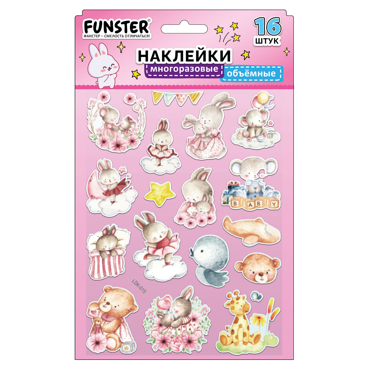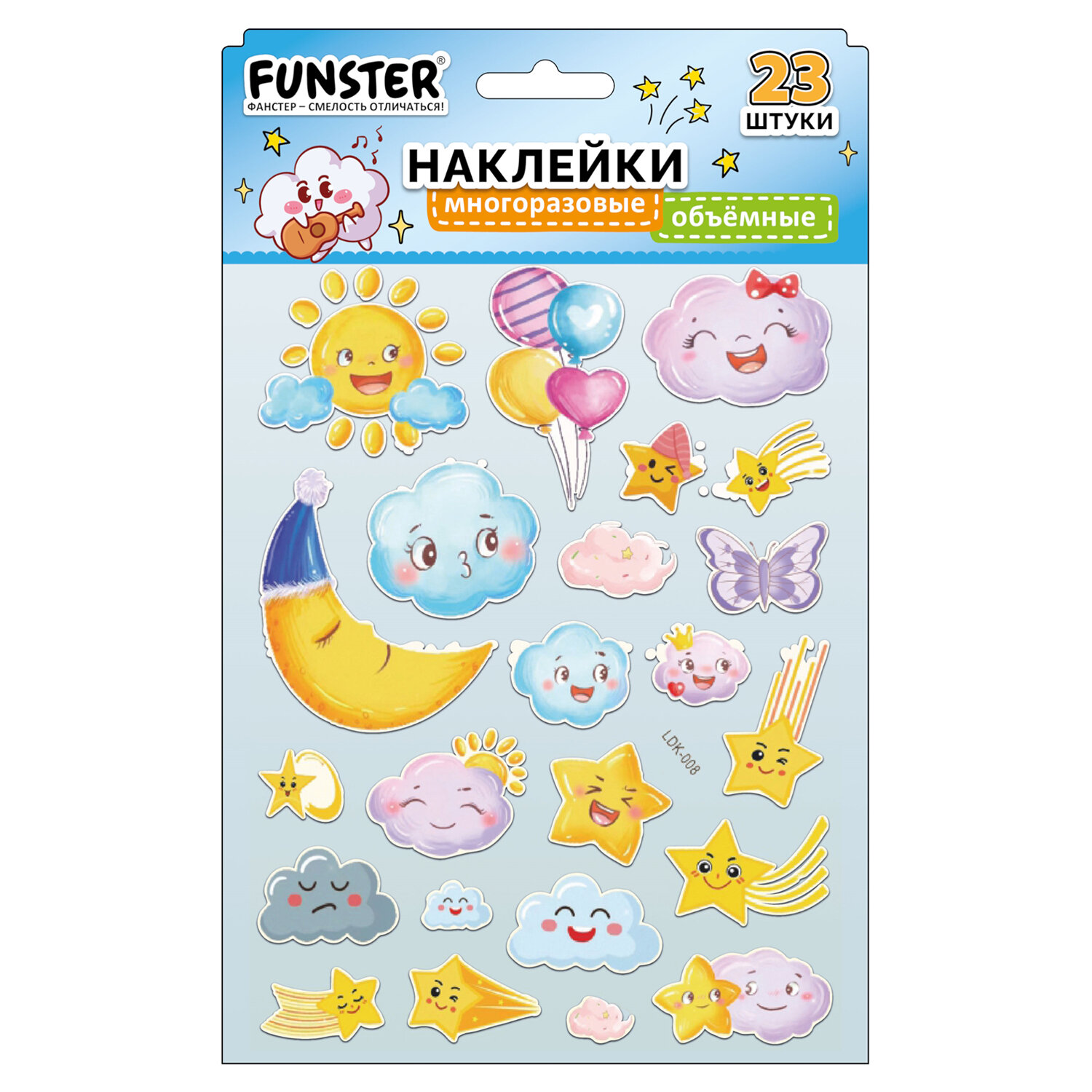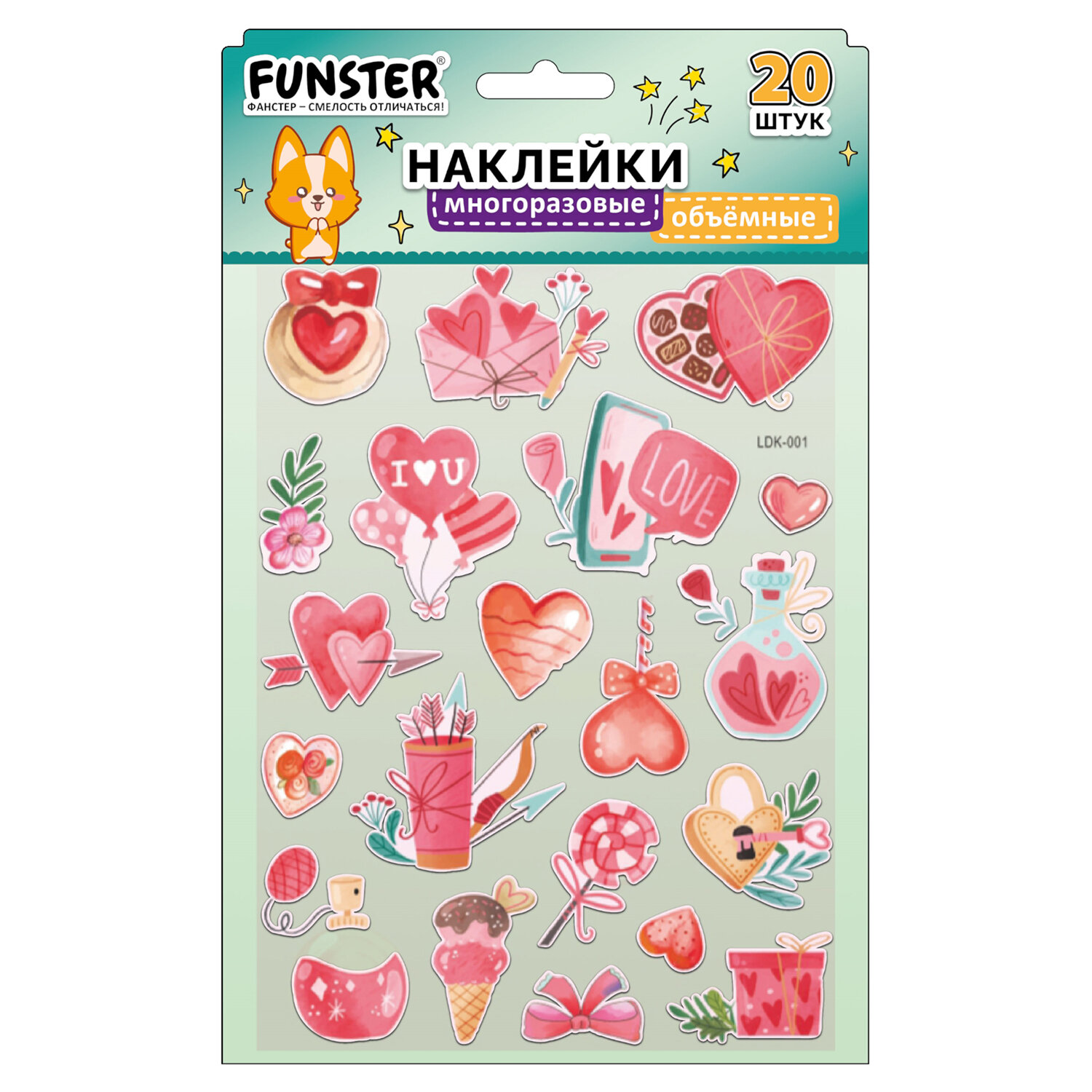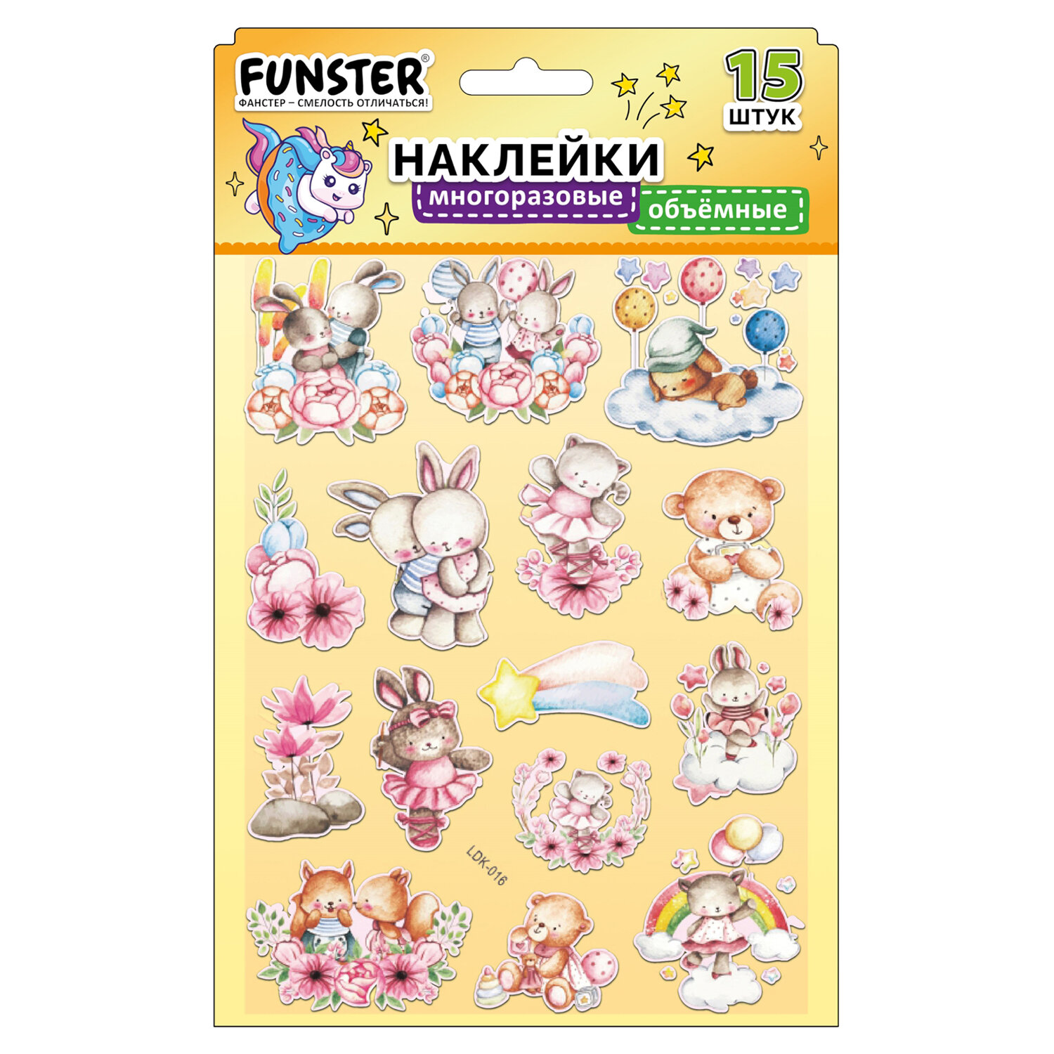 Наклейки объемные "Вдохновение", 19х15 см, ассорти 12 видов, FUNSTER (ФАНСТЕР) Код товара: 666088 99 ₽ Купить Производитель:FUNSTER Объёмные наклейки FUNSTER - идеальный выбор для творчества! Эти очаровательные наклейки в ярких дизайнах ассорти поднимут настроение и добавят красок в повседневность. Превратите обычные вещи в яркие и милые аксессуары с многоразовыми наклейками! Они легко клеятся на бумагу, картон, пластик, стекло, дерево и другие поверхности, а благодаря качественному клеевому слою их можно переклеивать без следов. В наборе от 15 до 23 наклеек с трендовыми дизайнами, которые впишутся в любой стиль и идеально его дополнят. Высокое качество печати гарантирует, что наклейки долго остаются яркими и радуют глаз!Производство: КитайТип наклеек: объемныеСерия: ОбъемныеТематика: ВдохновениеКоличество наклеек: 15 шт.Тип поверхности наклеивания: любаяОбъемные: даМногократное переклеивание без потери качества: даДлина листа: 190 ммШирина листа: 150 ммМатериал: полимерыВозрастная группа: от 3 летПол ребенка: универсальныеУпаковка: пакет с европодвесомСрок годности: 60 месВес: 22 грРазмер упаковки: 0.1 × 23.9 × 15.3 смОбъём: 0.0001 м3Промежуточная упаковка: 24 штТранспортная упаковка: 1200 штШтрих-код: 4606224488172 Сертификат-1.jpg Сертификат-2.jpg