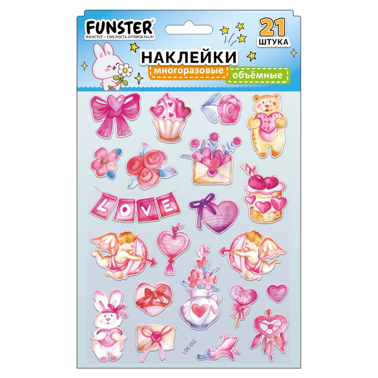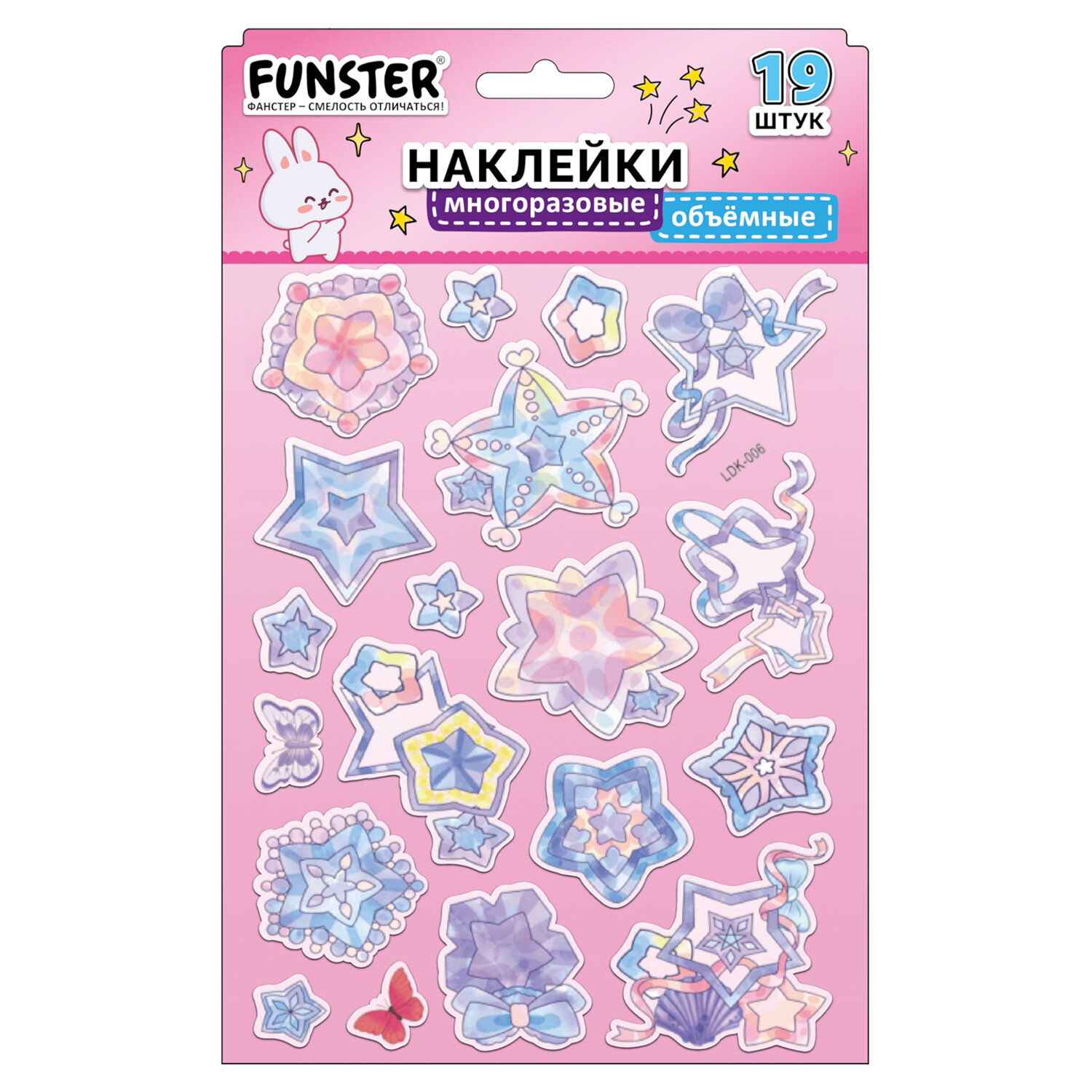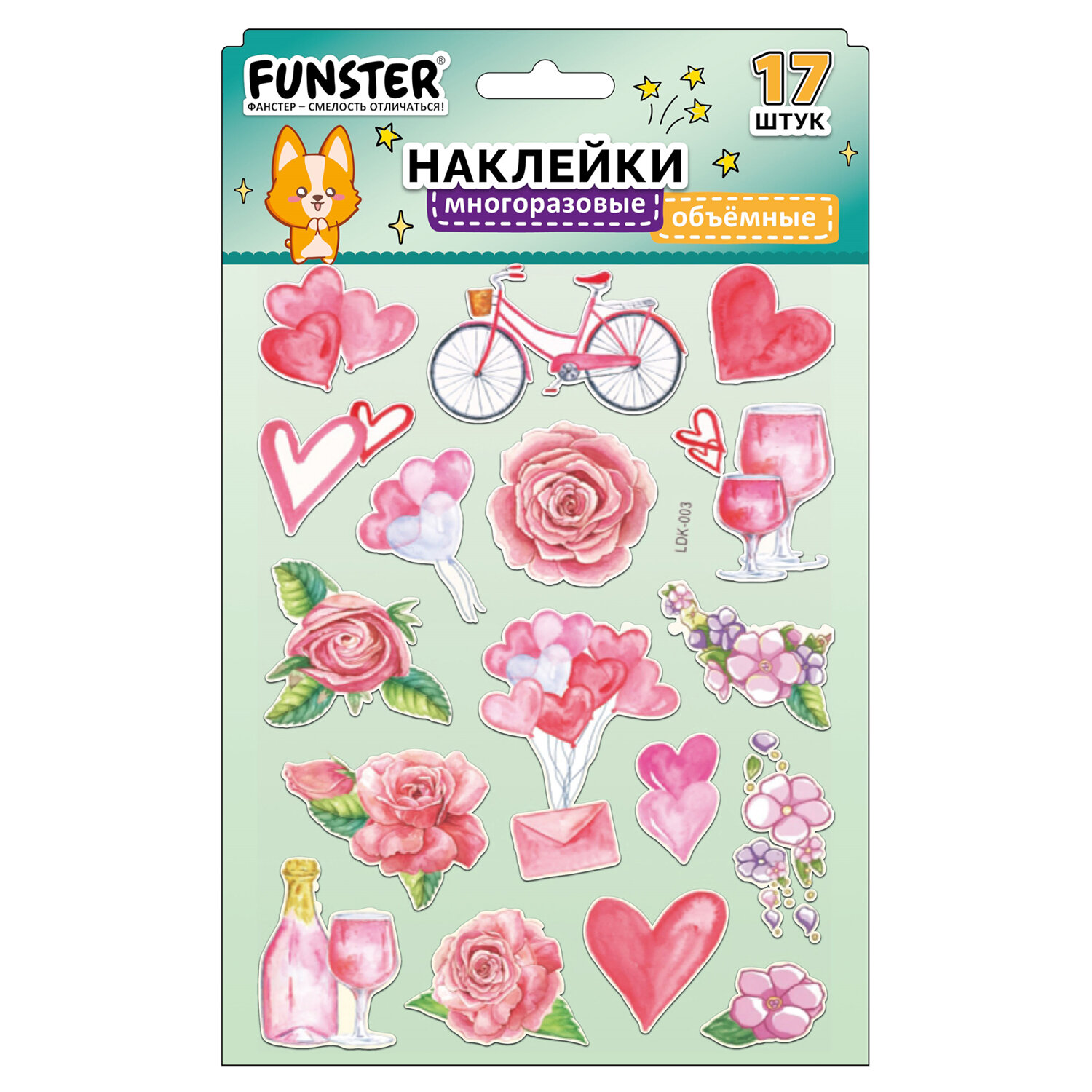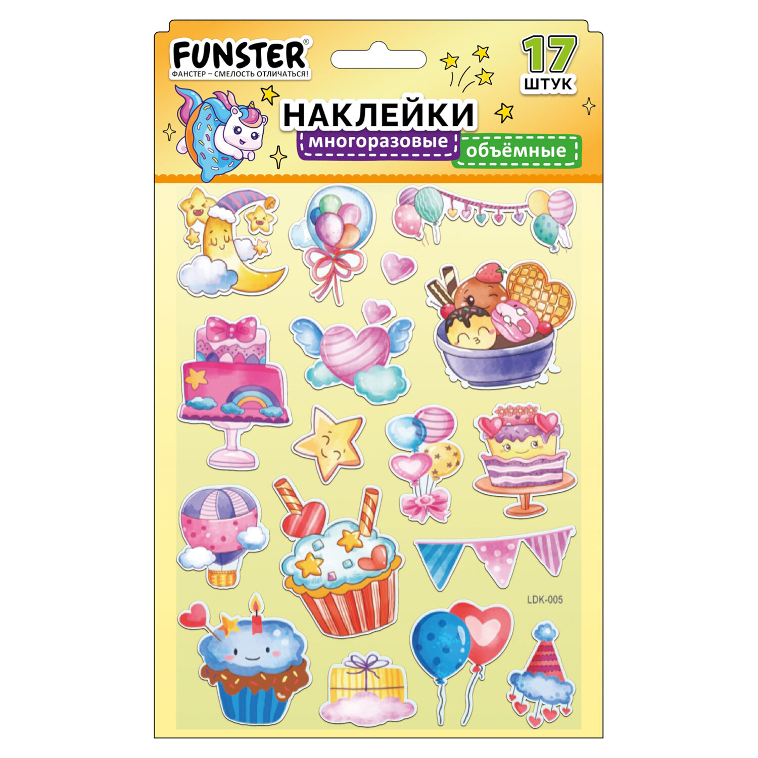 Наклейки объемные "Вдохновение", 19х15 см, ассорти 12 видов, FUNSTER (ФАНСТЕР) Код товара: 666088 99 ₽ Купить Производитель:FUNSTER Объёмные наклейки FUNSTER - идеальный выбор для творчества! Эти очаровательные наклейки в ярких дизайнах ассорти поднимут настроение и добавят красок в повседневность. Превратите обычные вещи в яркие и милые аксессуары с многоразовыми наклейками! Они легко клеятся на бумагу, картон, пластик, стекло, дерево и другие поверхности, а благодаря качественному клеевому слою их можно переклеивать без следов. В наборе от 15 до 23 наклеек с трендовыми дизайнами, которые впишутся в любой стиль и идеально его дополнят. Высокое качество печати гарантирует, что наклейки долго остаются яркими и радуют глаз!Производство: КитайТип наклеек: объемныеСерия: ОбъемныеТематика: ВдохновениеКоличество наклеек: 15 шт.Тип поверхности наклеивания: любаяОбъемные: даМногократное переклеивание без потери качества: даДлина листа: 190 ммШирина листа: 150 ммМатериал: полимерыВозрастная группа: от 3 летПол ребенка: универсальныеУпаковка: пакет с европодвесомСрок годности: 60 месВес: 22 грРазмер упаковки: 0.1 × 23.9 × 15.3 смОбъём: 0.0001 м3Промежуточная упаковка: 24 штТранспортная упаковка: 1200 штШтрих-код: 4606224488172 Сертификат-1.jpg Сертификат-2.jpg