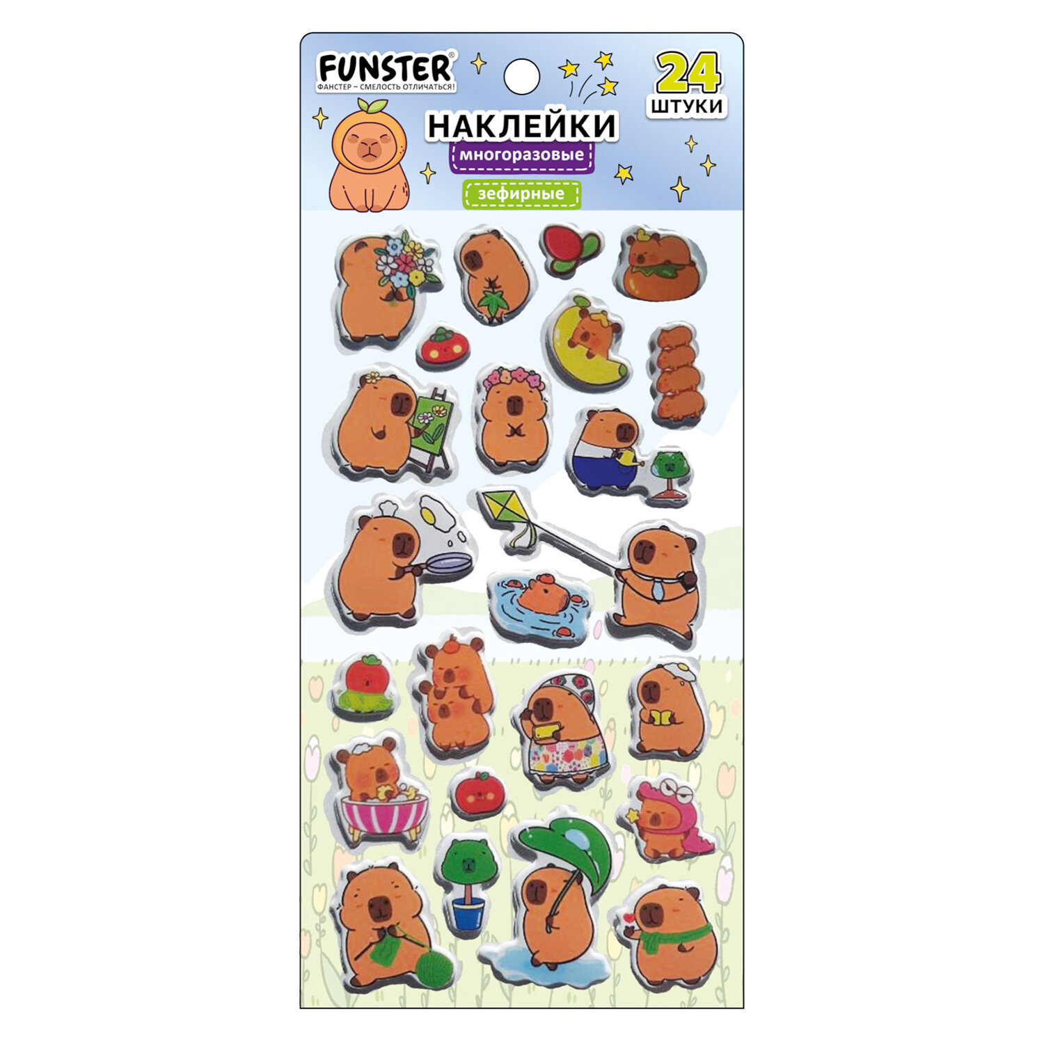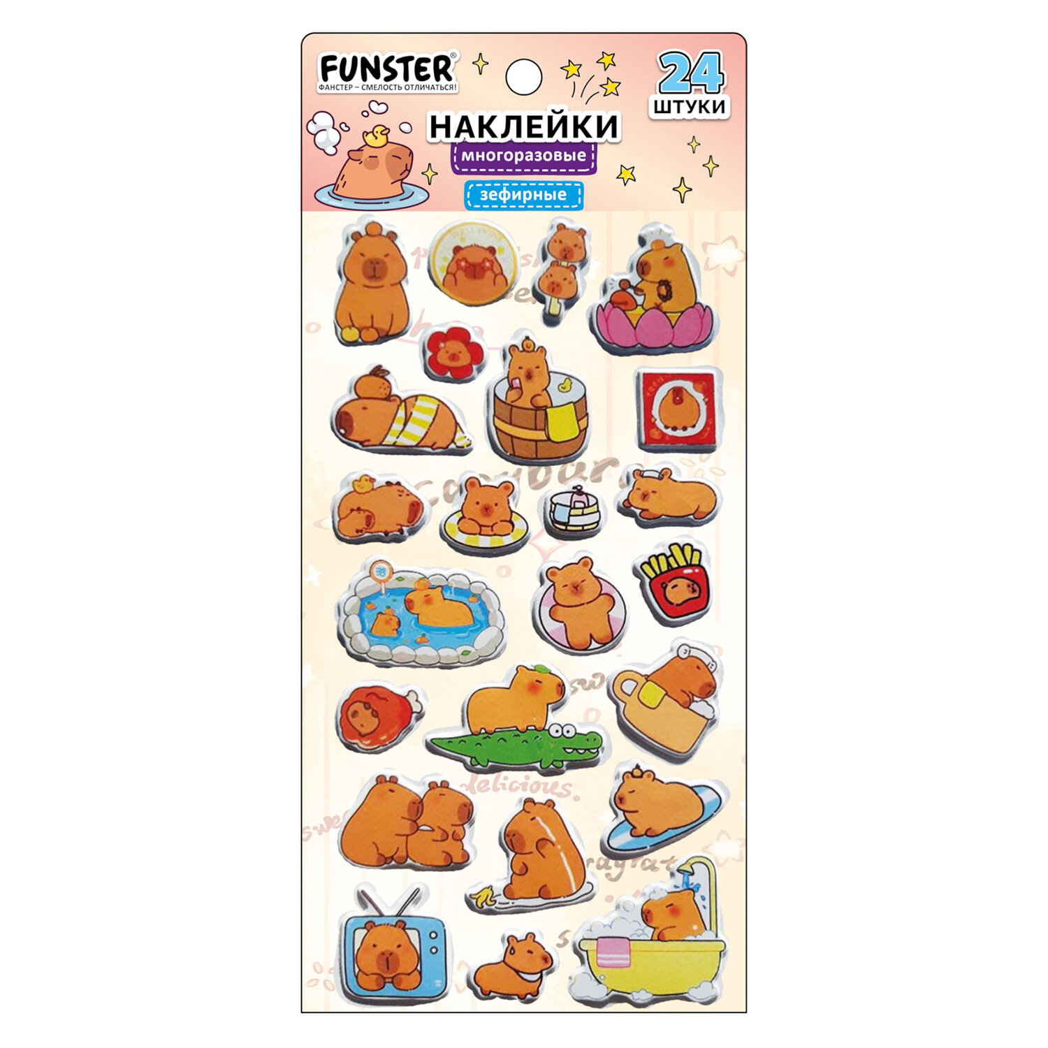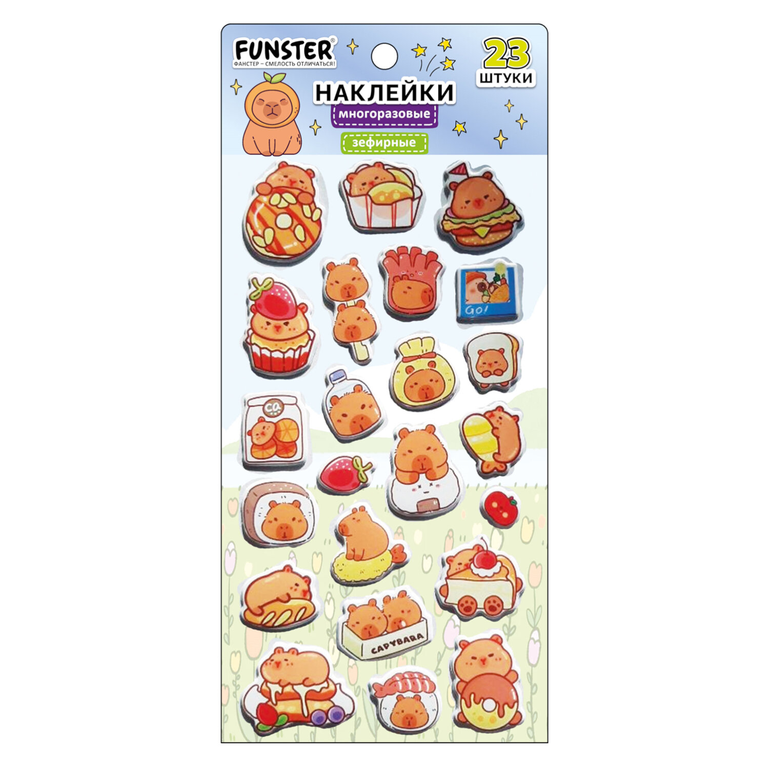Наклейки зефирные "Капибары", 18х9,5 см, ассорти 6 видов, FUNSTER (ФАНСТЕР) Код товара: 666093 99 ₽ Купить Производитель:FUNSTER Зефирные наклейки FUNSTER - идеальный выбор для творчества! Эти очаровательные наклейки в ярких дизайнах ассорти поднимут настроение и добавят красок в повседневность. Превратите обычные вещи в яркие и милые аксессуары с многоразовыми наклейками! Они легко клеятся на бумагу, картон, пластик, стекло, дерево и другие поверхности, а благодаря качественному клеевому слою их можно переклеивать без следов. В наборе от 21 до 26 наклеек с яркими дизайнами капибар, которые никого не оставят равнодушным! Высокое качество печати гарантирует, что наклейки долго остаются яркими и радуют глаз! А гладкая поверхность и "зефирная" текстура добавляют тактильного удовольствия!Производство: КитайТип наклеек: зефирныеСерия: ЗефирныеТематика: КапибарыКоличество наклеек: 21 шт.Тип поверхности наклеивания: любаяОбъемные: даМногократное переклеивание без потери качества: даДлина листа: 180 ммШирина листа: 95 ммМатериал: полимерыВозрастная группа: от 3 летПол ребенка: универсальныеУпаковка: пакет с подвесомСрок годности: 60 месВес: 13 грРазмер упаковки: 0.1 × 22.1 × 10.3 смПромежуточная упаковка: 24 штТранспортная упаковка: 1200 штШтрих-код: 4606224488226 Сертификат-1.jpg Сертификат-2.jpg