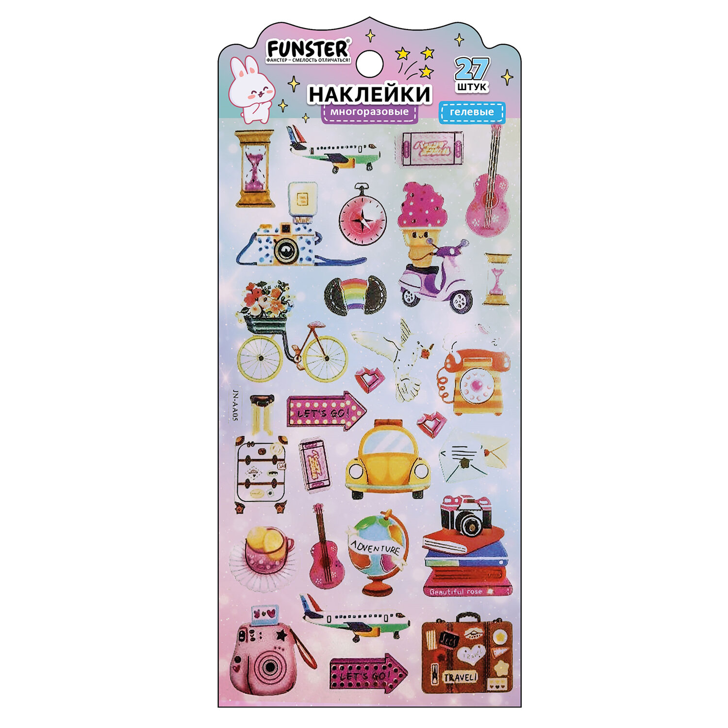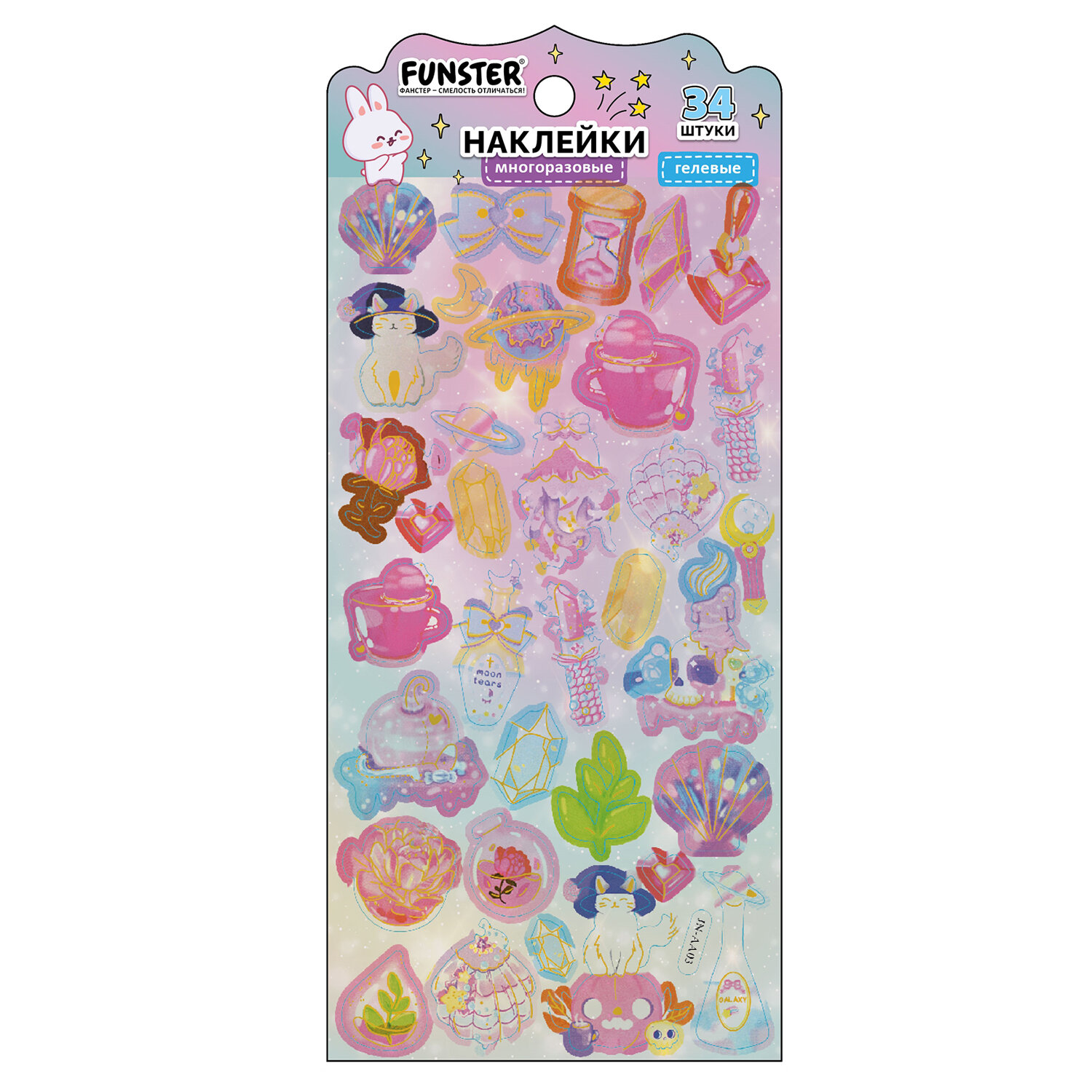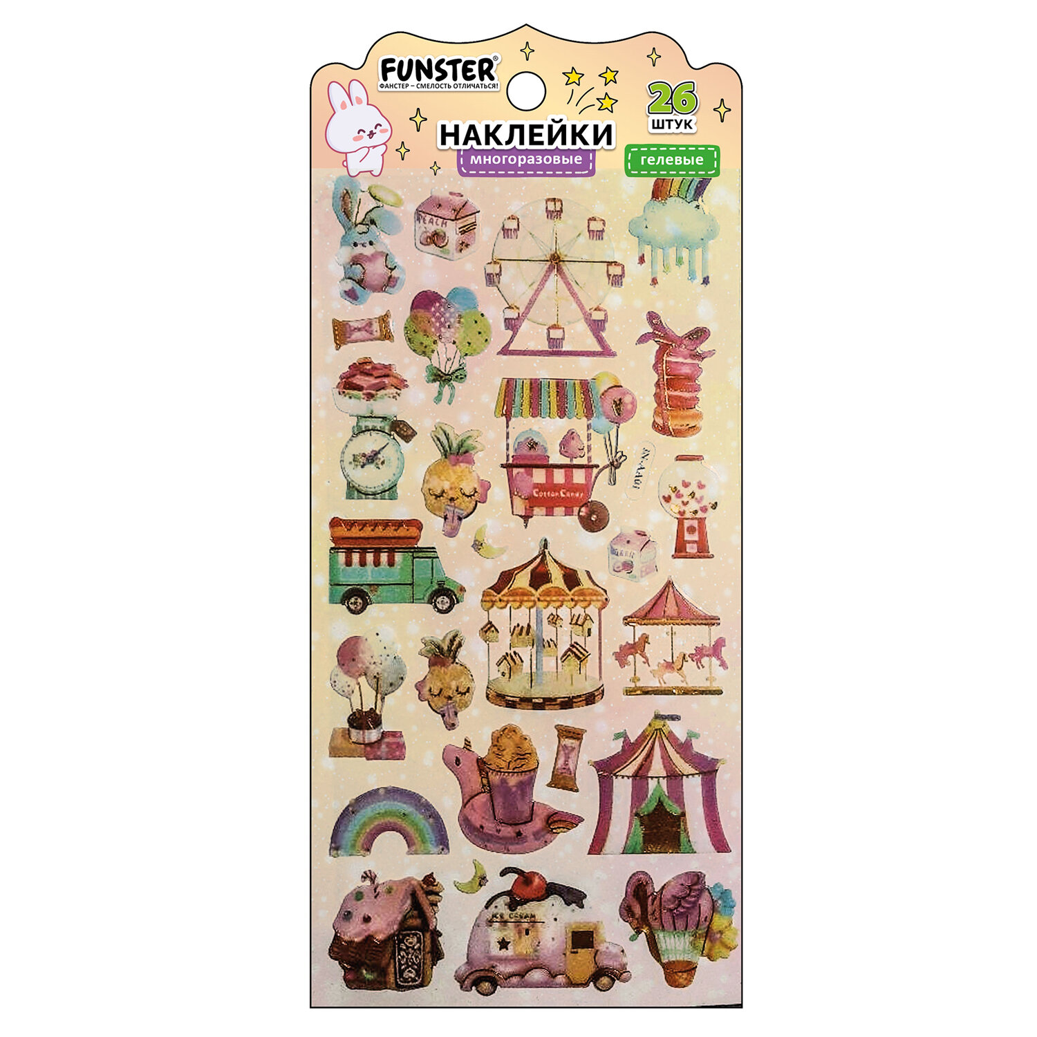 Наклейки гелевые "Акварельные мечты", 17,5х9 см, ассорти 6 видов, FUNSTER (ФАНСТЕР) Код товара: 666096 99 ₽ Купить Производитель:FUNSTER Гелевые наклейки FUNSTER - идеальный выбор для творчества! Эти очаровательные наклейки в ярких дизайнах ассорти поднимут настроение и добавят красок в повседневность. Превратите обычные вещи в яркие и милые аксессуары с многоразовыми наклейками! Они легко клеятся на бумагу, картон, пластик, стекло, дерево и другие поверхности, а благодаря качественному клеевому слою их можно переклеивать без следов. В наборе от 26 до 34 наклеек с трендовыми дизайнами, которые впишутся в любой стиль и идеально его дополнят. Высокое качество печати гарантирует, что наклейки долго остаются яркими и радуют глаз. А гладкая поверхность добавляет тактильного удовольствия!Производство: КитайТип наклеек: гелевыеСерия: ГелевыеТематика: Акварельные мечтыКоличество наклеек: 26 шт.Тип поверхности наклеивания: любаяОбъемные: даМногократное переклеивание без потери качества: даДлина листа: 175 ммШирина листа: 90 ммМатериал: полимерыВозрастная группа: от 3 летПол ребенка: универсальныеУпаковка: пакет с подвесомСрок годности: 60 месВес: 13 грРазмер упаковки: 0.1 × 20.6 × 9.2 смПромежуточная упаковка: 24 штТранспортная упаковка: 1200 штШтрих-код: 4606224488257 Сертификат-1.jpg Сертификат-2.jpg