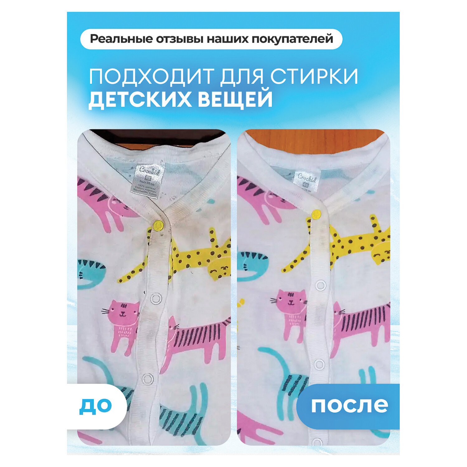 Эффективно удаляет застарелые загрязнения и пятна, отбеливает, нейтрализует запахи, проходит для белого и цветного белья; предназначено для удаления сложных пятен и загрязнений с различных поверхностей (кроме посуды); подходит для отбеливания детского белья.