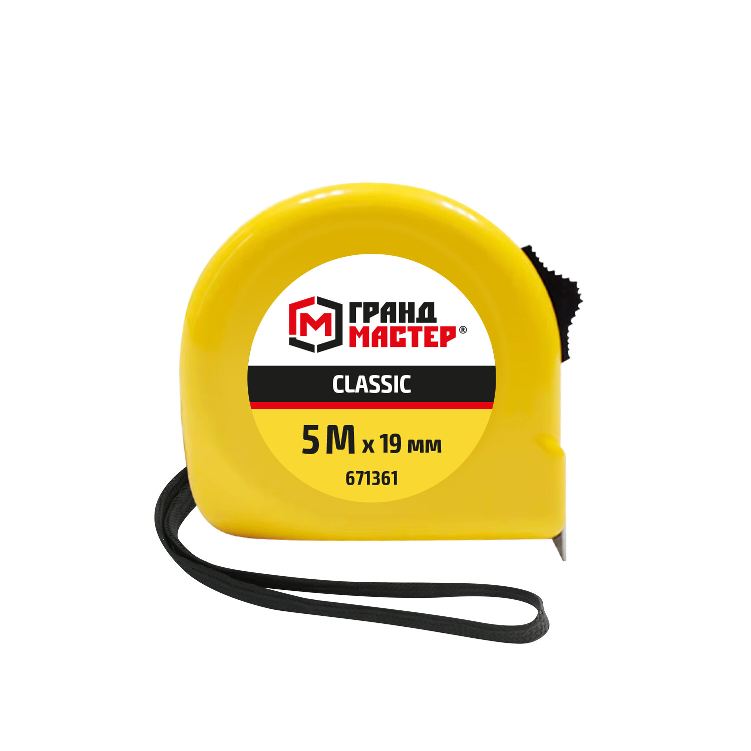 Рулетка измерительная 5 м х 19 мм, пластиковый корпус, с фиксатором, ГРАНДМАСТЕР Classic Код товара: 671361 127,08 ₽ Купить Производитель:ГРАНДМАСТЕР Рулетка ГРАНДМАСТЕР применяется для измерения размеров поверхностей и расстояний. Благодаря эргономичному дизайну и высокому классу точности измерений рулетка станет незаменимым помощником в быту и профессиональной деятельности. Рулетка ГРАНДМАСТЕР проста в обращении и обладает повышенной износостойкостью благодаря корпусу, изготовленному из прочного ABS-пластика. Измерительная лента с метрической шкалой II класса точности изготовлена из прочной марганцевой стали, устойчивой к заломам, и оснащена зацепом для удобства измерений. Рулетка оснащена ремешком для ношения на запястье, а также металлической клипсой для крепления на поясе. Эргономичный дизайн с вертикальным фиксатором измерительной ленты позволит использовать рулетку даже одной рукой. Материал корпуса: ABS-пластик. Цвет корпуса: жёлтый. Материал измерительной ленты: 45 марганцевая сталь. Размеры измерительной ленты: длина 5 метров, ширина 19 миллиметров. Система измерения: метрическая. Цвет ленты: жёлтый. Фиксатор: вертикальный. Упаковка: бумажная карта с европодвесом.Производство: КитайВид рулетки: строительныйШирина ленты: 19 ммДлина ленты: 5 мСерия: ClassicМатериал ленты: марганцевая стальКоличество режимов фиксации: 1Цена деления: 1 ммКласс точности: 2Тип корпуса: закрытыйМатериал корпуса: пластикВес: 165 грРазмер упаковки: 3.2 × 14.7 × 9.8 смОбъём: 0.0004 м3Промежуточная упаковка: 12 штТранспортная упаковка: 120 штШтрих-код: 4606224470832