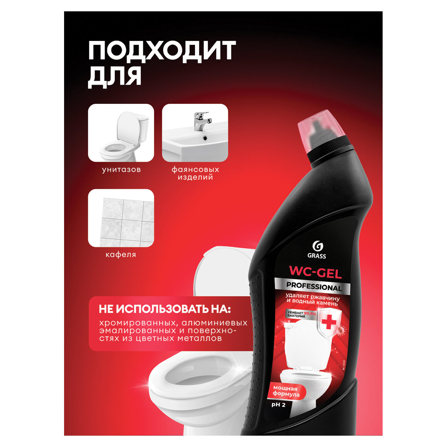 Средство чистящее кислотное для санузлов 750 мл, GRASS WC-GEL PROFESSIONAL Код товара: 609912 247,34 ₽ Купить Производитель:GRASS Кислотное чистящее средство GRASS WC-GEL PROFESSIONAL для чистки унитазов, фаянсовых изделий, кафеля от известкового налета, потеков ржавчины, солевых отложений. Способствует устранению неприятного запаха, убивает микробы. Гелеобразная структура чистящего средства обеспечивает его экономичный расход. Состав: 30% вода; 5-15%: соляная кислота; 5% неионогенные ПАВ, ароматизирующая добавка, краситель. Способ применения: средство нанести на очищаемую поверхность, оставить на 5-10 минут. Потереть щеткой или губкой, смыть водой. При необходимости повторить обработку. Использовать строго по назначению!Производство: РоссияНазначение: для уборки туалетов и ванных комнатСерия: ProfessionalЭффект от использования: дезинфекция, отбеливание, очищение поверхности, удаление запаха, удаление известкового налета, удаление ржавчиныПрофессиональное средство: даПодходит для поверхностей: кафель, фаянсОбъем/вес: 750 мл/гОтдушка: свежестьФорма выпуска: гельСодержит: кислотуТовар относится к сегменту ЭКОНОМ: даpH: 2Дозатор: "утёнок"Упаковка: флаконСрок годности: 18 месВес: 847 грРазмер упаковки: 27.6 × 10.6 × 5.7 смОбъём: 0.0017 м3Промежуточная упаковка: 12 штТранспортная упаковка: 12 штШтрих-код: 4630037519839 Сертификат-1.jpg Сертификат-2.jpg