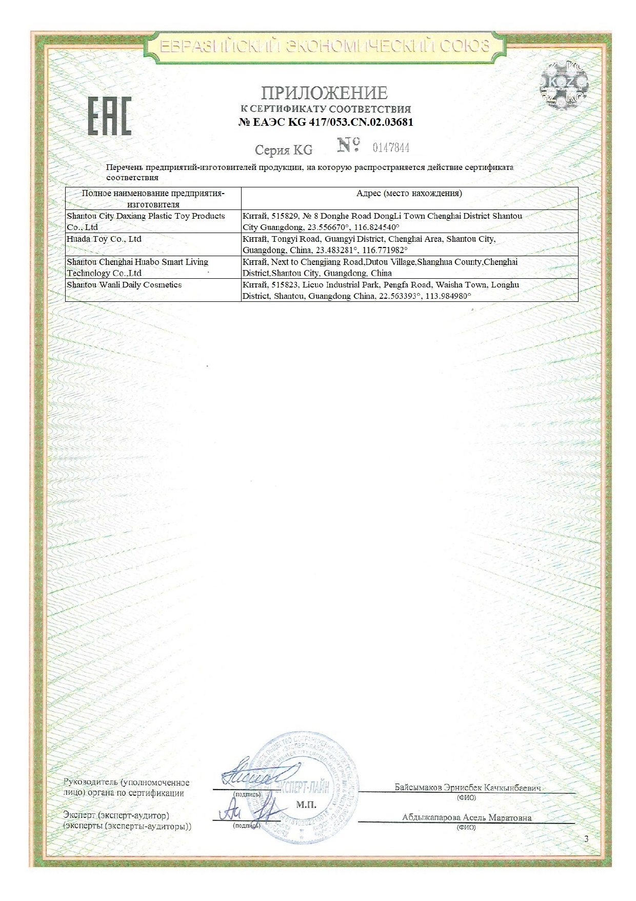 Мяч надувной полноцветный, лицензия, ПВХ, 23 см, АССОРТИ 10 видов Код товара: 665639 226,75 ₽ Купить Производитель:ИГРАЕМ ВМЕСТЕ Мяч ИГРАЕМ ВМЕСТЕ – отличный подарок для детей! Подвижные игры с мячом способствуют повышению общей двигательной активности и развивают ловкость, координацию, меткость. Мяч поставляется в сдутом виде (насос в комплект не входит). Диаметр мяча – 23 см. Материал – ПВХ. Рекомендовано детям от 3 лет. Данный товар поставляется без возможности выбора дизайна!Производство: КитайТип товара: мяч игровойНазначение для: дома, улицыДиаметр: 23 смЦвет: ассортиКоличество в комплекте: 1 шт.Материал: ПВХСерия: детскийВозраст: 3+Упаковка: сеткаВес: 111 гРазмер упаковки: 7.4 × 16 × 16 смОбъём: 0.0009 м3Промежуточная упаковка: 10 штТранспортная упаковка: 10 шт Файлы Сертификат-1.jpg Сертификат-2.jpg Сертификат-3.jpg Сертификат-4.jpg Сертификат-5.jpg Сертификат-6.jpg Сертификат-7.jpg