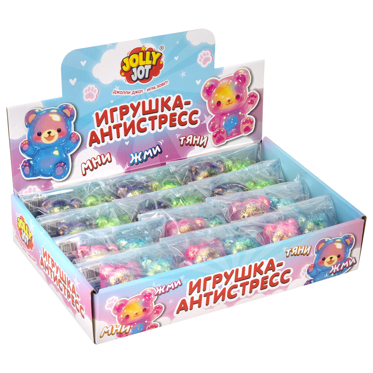 Игрушка-антистресс "МЕДВЕДИКИ. НАБОР 2 ШТУКИ", 5 см, ассорти 4 цвета, дисплей, JOLLY JOT (ДЖОЛЛИ ДЖОТ) Код товара: 665771 199,41 ₽ Купить Производитель:JOLLY JOT Игрушка-антистресс "МЕДВЕДИКИ. НАБОР 2 ШТУКИ" создана для развлечения и расслабления! Изготовлена из пластичного и безопасного материала. Быстро восстанавливает первоначальную форму. Мягкая игрушка приятна на ощупь – её можно держать в руках, сжимать, растягивать и мять. Таким образом не только успокаиваются нервы, но и развивается мелкая моторика рук. Игрушка-антистресс станет милым подарком как для ребенка, так и для взрослого.Производство: КитайТип товара: игрушки-антистресс супергельНазначение: повышает чувствительность пальцев, развивает моторику, способствует релаксации, устраняет волнениеСерия: супергельВозраст ребенка от: 3 летЦвет: ассортиСюжет: МедведьМатериал: полимерВысота: 5 смШирина: 4 смУпаковка: пакет с европодвесомВес: 150 гСрок годности: 60 месРазмер упаковки: 4.3 × 12.9 × 6.4 смОбъём: 0.0005 м3Промежуточная упаковка: 12 штТранспортная упаковка: 72 штШтрих-код: 4606224458540 Файлы Сертификат-1.jpg Сертификат-2.jpg Сертификат-3.jpg Сертификат-4.jpg