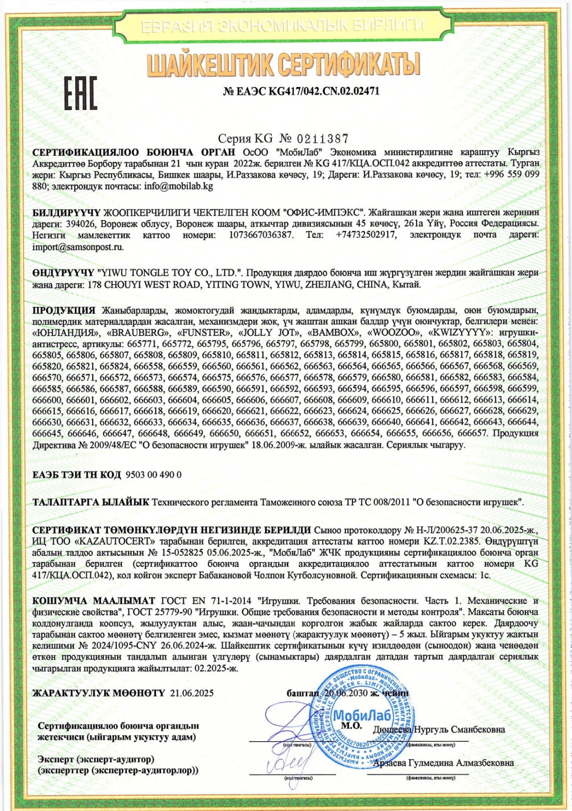 Игрушка-антистресс "ЗАЙЧИК-УШАСТИК", 9х7 см, ассорти, 2 цвета, JOLLY JOT (ДЖОЛЛИ ДЖОТ) Код товара: 665801 149 ₽ Купить Производитель:JOLLY JOT Игрушка-антистресс "ЗАЙЧИК-УШАСТИК" создана для развлечения и расслабления! Изготовлена из пластичного и безопасного материала. Быстро восстанавливает первоначальную форму. Игрушка мягкая, ее приятно держать в руках. Игрушку можно сжимать, растягивать и мять. Таким образом не только успокаиваются нервы, но и развивается мелкая моторика рук. Игрушка-антистресс станет милым подарком как для ребенка, так и для взрослого.Производство: КитайТип товара: игрушки-антистрессНазначение: повышает чувствительность пальцев, развивает моторику, способствует релаксации, устраняет волнениеСерия: нетВозраст ребенка от: 3 летЦвет: ассортиСюжет: Зайчик-ушастикМатериал: полимерВысота: 9 смШирина: 7 смУпаковка: пластиковая коробкаВес: 73 гСрок годности: 60 месРазмер упаковки: 5 × 10.5 × 6 смОбъём: 0.0005 м3Промежуточная упаковка: 12 штТранспортная упаковка: 144 штШтрих-код: 4606224458847 Сертификат-1.jpg Сертификат-2.jpg Сертификат-3.jpg
