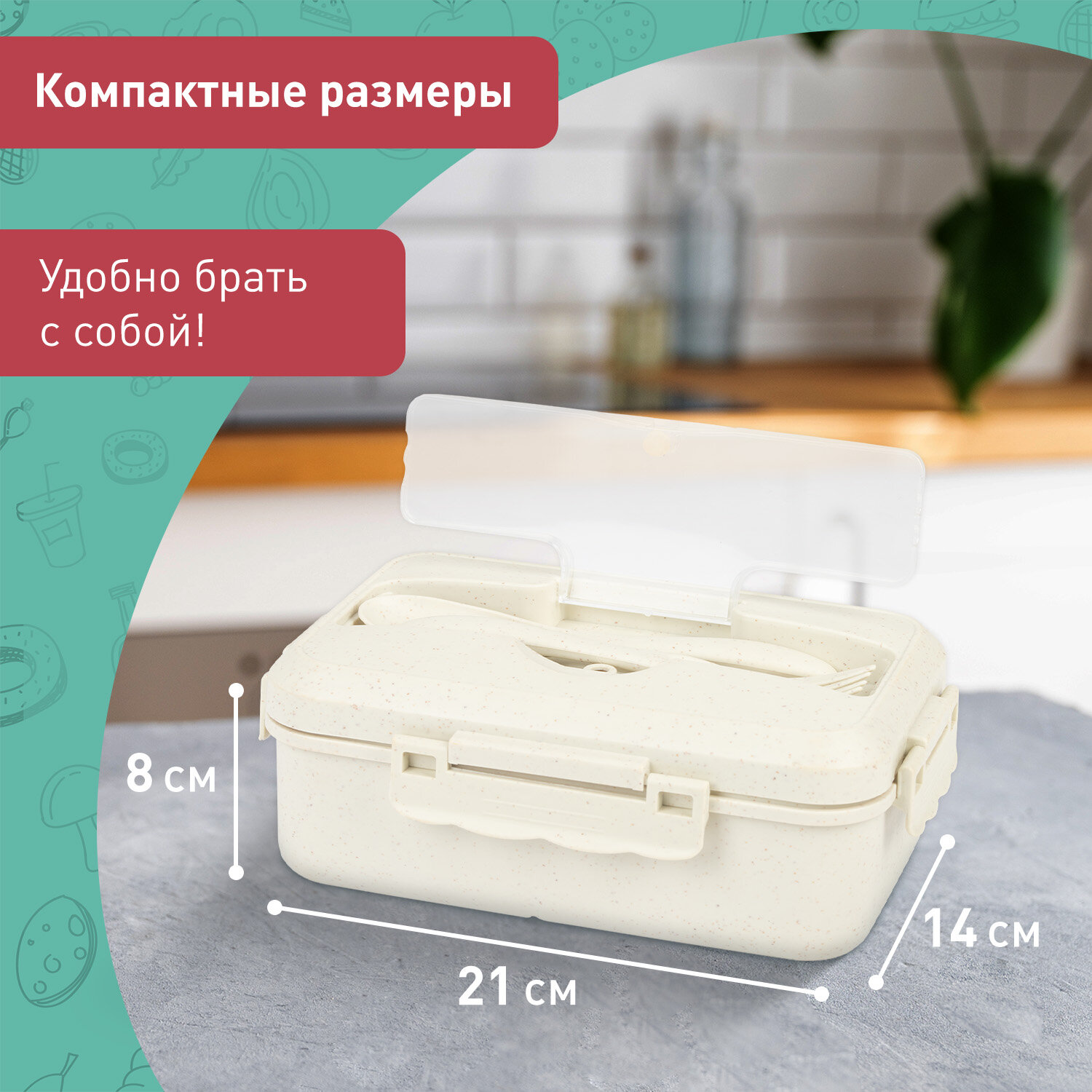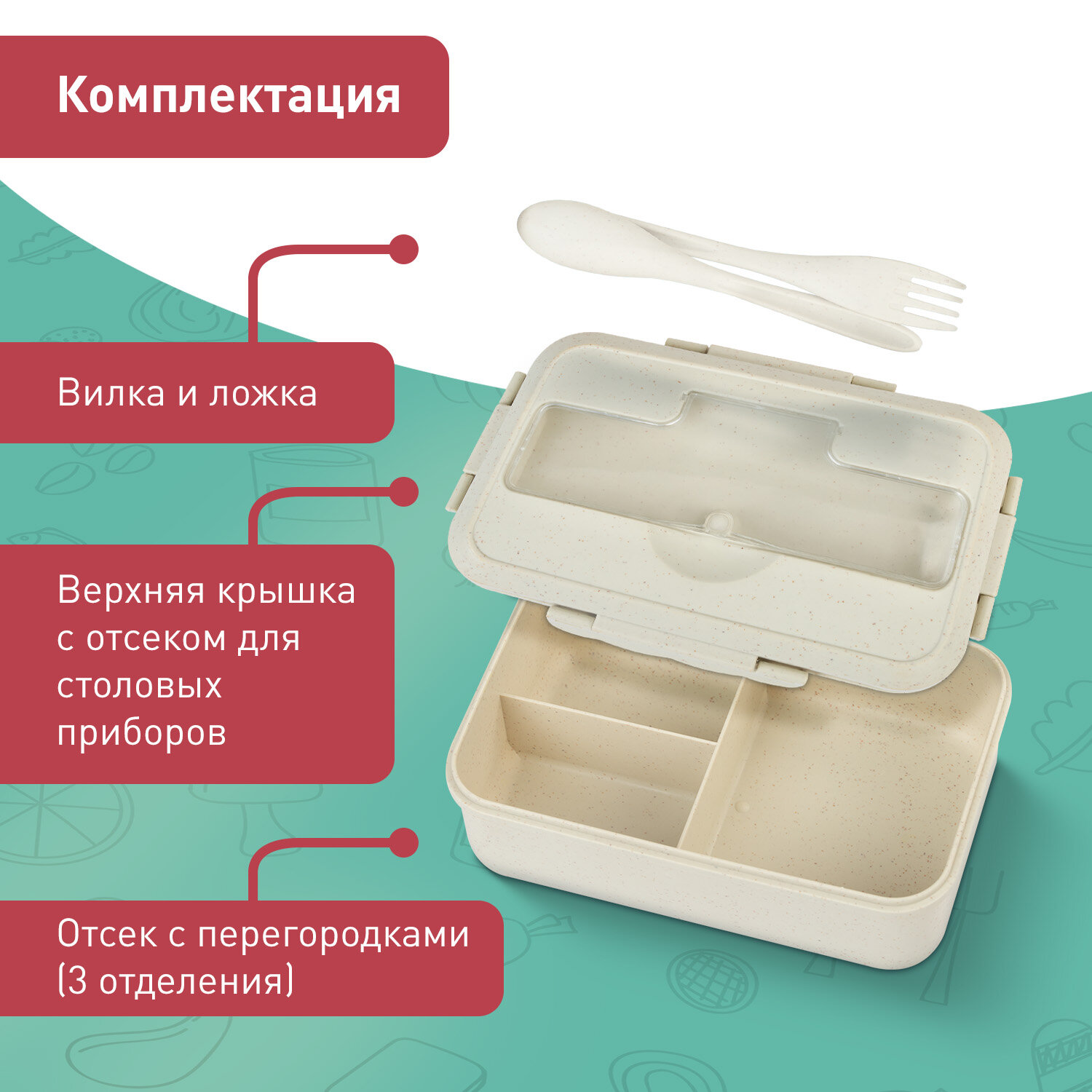 Ланч-бокс контейнер, 1 секция, 3 отделения, 1,4 л, ложка, вилка, 8х21х14 см, бежевый, JOYLUX (ДЖОЙЛЮКС) ECO Код товара: 609346 342,88 ₽ Купить Производитель:Joylux Многофункциональный герметичный ланч-бокс JOYLUX объемом 1400 мл имеет три отсека и изготовлен из пластика высокого качества – это универсальное и безопасное решение для полноценного сбалансированного приема пищи в офисе, школе, поездках и путешествиях! Ланч-бокс JOYLUX выполнен из высококачественного полипропилена с добавлением натуральной пшеничной соломы – материал соответствует всем требованиям безопасности и не содержит бисфенола А. Контейнер устойчив к высоким температурам и подходит для использования в микроволновой печи и посудомоечной машине, что делает уход за изделием максимально простым. Герметичность обеспечивается за счёт силиконового уплотнителя на крышке – это позволяет безопасно переносить даже жидкие блюда без риска протекания. В комплект входят пластиковые ложка и вилка, которые удобно хранятся в верхней секции ланч-бокса. Объём ланч-бокса – 1400 мл, что оптимально для полноценного обеда. Он представляет собой одноуровневую конструкцию с тремя отсеками, идеальными для основного блюда, например, гарнира и мяса, а также для салатов, сэндвичей и снеков. Благодаря продуманной конструкции контейнера блюда в нём сохраняют вкусовые качества и не смешиваются между собой. Ланч-бокс JOYLUX отличается современным универсальным дизайном, который понравится и детям, и взрослым. Компактные размеры и удобная форма позволяют легко разместить ланч-бокс в сумке или рюкзаке. Рекомендации по использованию: - Используйте ланч-бокс для хранения и транспортировки горячих и холодных блюд (диапазон температур при использовании от -20 до +110 °C). - Перед разогревом в микроволновой печи убедитесь, что крышка открыта. - Подходит для посудомоечной машины и микроволновой печи.Производство: КитайОбъем: 1.4 лНазначение: СВЧ, хранениеКоличество секций: 1Особенности: герметичныйЦвет контейнера: бежевыйЦвет крышки: бежевыйМатериал: пластикВысота: 8 смШирина: 21 смГлубина: 14 смВес: 336 грРазмер упаковки: 8.1 × 21.7 × 15 смОбъём: 0.0031 м3Промежуточная упаковка: 60 штТранспортная упаковка: 60 штШтрих-код: 4606224440057 Сертификат-1.jpg Сертификат-2.jpg Сертификат-3.jpg