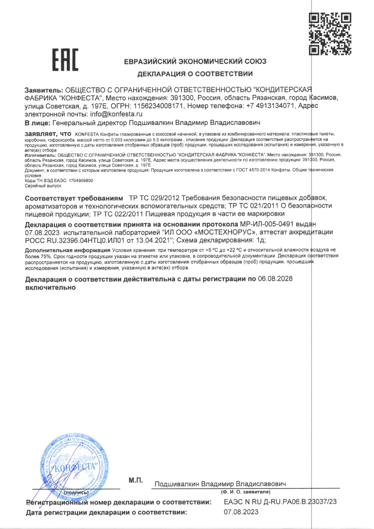Конфеты KONFESTA со сливочно-кокосовым кремом, вафельные, 500 г, пакет Код товара: 623132 404,11 ₽ Купить Производитель:KONFESTA KONFESTA - вкусные лёгкие конфеты в форме трубочек, с нежным сливочным кремом в хрустящей вафле и обсыпке из ароматной кокосовой стружки. Состав: начинка (жир растительный, молоко сухое обезжиренное, сахар, сыворотка сухая молочная, крахмал тапиоковый, лактоза, эмульгатор – соевый лецитин, ароматизатор «Кокос»); глазурь (сахар, жир растительный, молоко сухое обезжиренное, сыворотка сухая молочная, эмульгатор – соевый лецитин, ароматизатор «Ванилин»); мука пшеничная, стружка кокосовая, сахар, масло кокосовое, эмульгатор – соевый лецитин. Условия хранения: хранить при температуре от +5 до +22 °C и относительной влажности воздуха не более 75%.Производство: РоссияВес нетто: 500 гСерия: KONFESTAУпаковка: пакетВид начинки: кремВкус: сливочно-кокосовыйСрок годности: 12 мес.Фирма-производитель: КФ "Конфеста"Срок годности: 12 месВес: 533 грРазмер упаковки: 7.1 × 23.1 × 16.8 смОбъём: 0.0023 м3Промежуточная упаковка: 8 штТранспортная упаковка: 8 штШтрих-код: 4680025572094 Сертификат-1.jpg Сертификат-2.jpg Сертификат-3.jpg