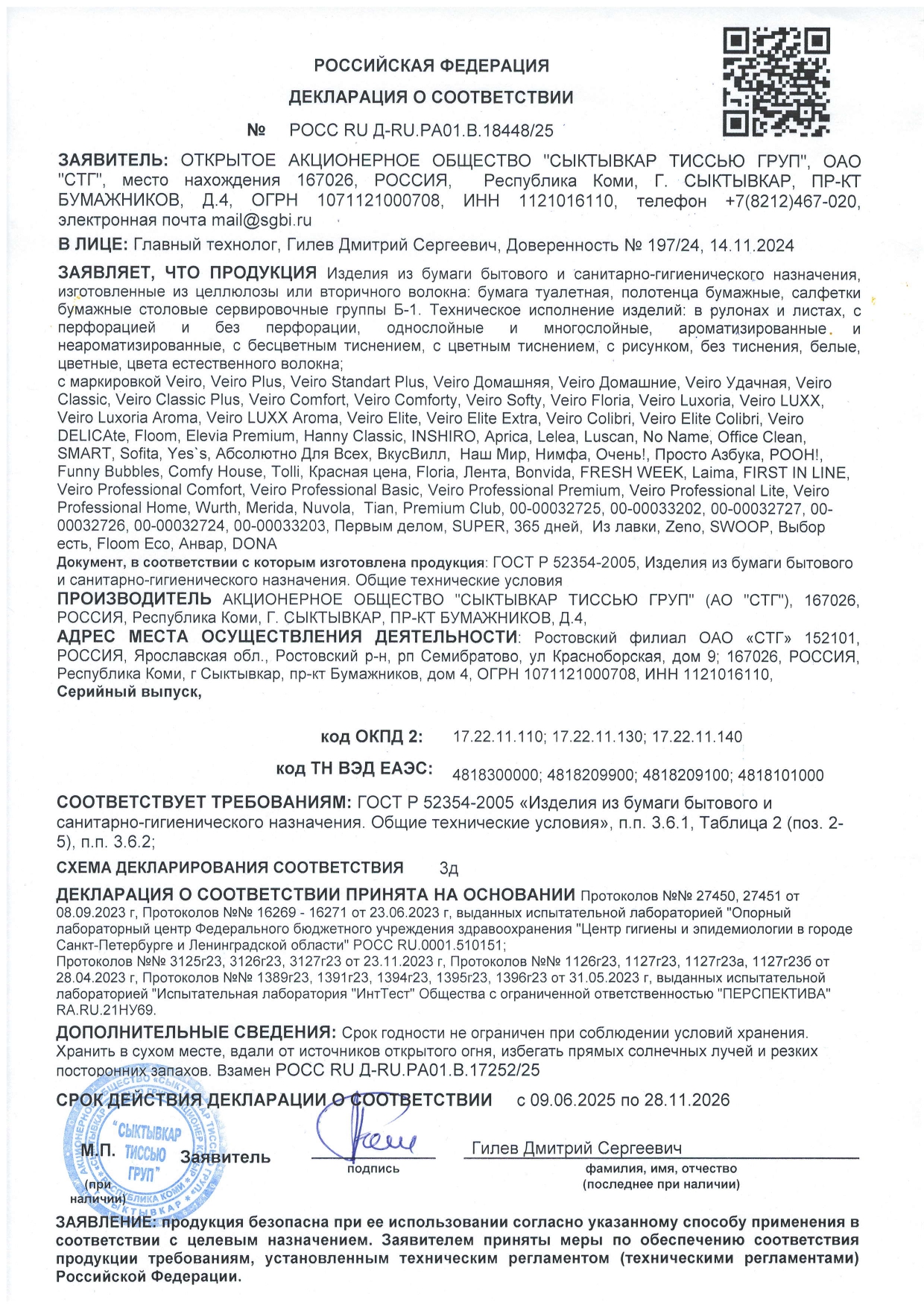 Бумага туалетная БОЛЬШОЙ РУЛОН, 450 м, LAIMA (T1), UNIVERSAL, 1-слойная, КОМПЛЕКТ 6 рулонов Код товара: 111336 1 336,61 ₽ Купить Производитель:LAIMA Однослойная туалетная бумага LAIMA "UNIVERSAL" для диспенсеров в больших рулонах. Лучшее решение для мест с высокой проходимостью - большая намотка рулона обеспечивает увеличение интервала обслуживания диспенсера для туалетной бумаги. В комплекте 6 рулонов длиной 450 м. Такого количества хватит на долгое время использования. Идеально сочетается с диспенсерами других производителей с диспенсерной системой - Т1. Тиснение придает дополнительную мягкость. Распадается на волокна, что препятствует засорам в канализации. Произведена с использованием вторичного сырья. С заботой о сохранении природных ресурсов. Данный товар высокого качества по доступной цене.Производство: РоссияДиспенсерная система: Т1Тип: рулонныеСырье: макулатураКоличество слоев: 1Тиснение: даПерфорация: нетДоля вторичного сырья: 100 %Спайка/комплект: 6 штДлина намотки: 450 мДиаметр рулона: 250 ммШирина рулона: 9.5 смВнутренний диаметр втулки: 60 ммРазмер листа: нет смШирина спайки: 76.5 смГлубина спайки: 19 смВысота спайки: 25.5 смЦвет: натуральныйСочетается с оборудованием других производителей: даРастворяется в воде: даСерия: UniversalВес: 5,17 кгРазмер упаковки: 18.3 × 72.2 × 23.9 смОбъём: 0.0316 м3Промежуточная упаковка: 1 штТранспортная упаковка: 1 штШтрих-код: 4606224242279 Файлы Приложение-1.pdf Приложение-2.jpg Сертификат-1.jpg Сертификат-2.jpg Сертификат-3.jpg Сертификат-4.jpg