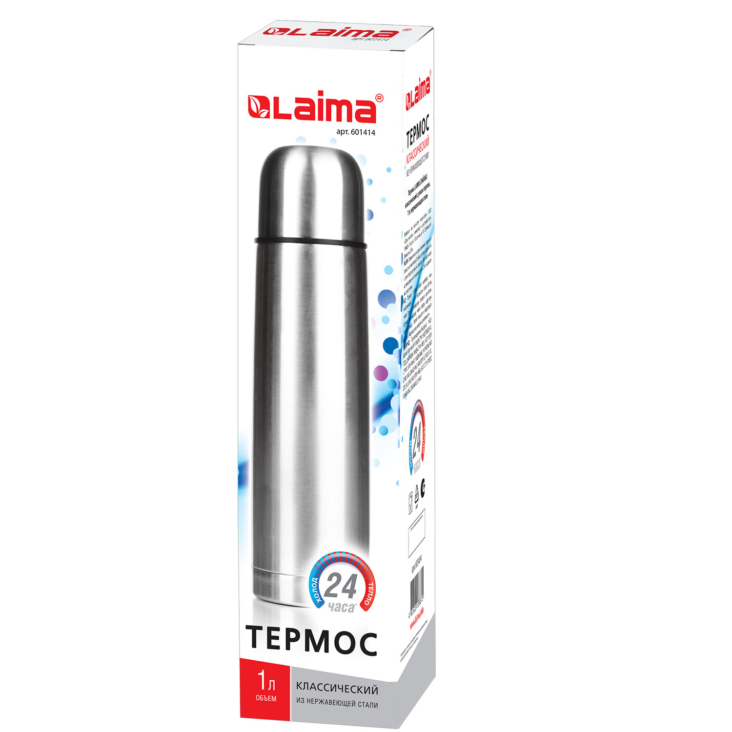 Термос LAIMA классический с узким горлом, 1 л, нержавеющая сталь Код товара: 601414 801,11 ₽ Купить Производитель:LAIMA Термос классического дизайна LAIMA с узким горлом предназначен для хранения горячих и холодных напитков. Удержание температуры зависит от условий использования: частота открывания, время нахождения в открытом состоянии, температура окружающей среды, начальная температура наливаемой жидкости. Изготовлен из высококачественной нержавеющей стали. Термос диаметром 8 см и высотой 33 см выполнен в серебристом цвете. Оснащен специальной кнопкой, позволяющей наливать напитки, не отвинчивая пробку. Объем - 1 л.Производство: КитайОбъем: 1 лТип горла: узкоеСерия: CLASSICВысота: 33 смДиаметр: 8 смЦвет: серебристыйМатериал: нержавеющая стальТип упаковки: картонная коробкаВес: 600 грРазмер упаковки: 8.6 × 32.5 × 8.7 смОбъём: 0.0028 м3Промежуточная упаковка: 30 штТранспортная упаковка: 30 штШтрих-код: 4606224088815 Сертификат-1.jpg Сертификат-2.jpg Сертификат-3.jpg