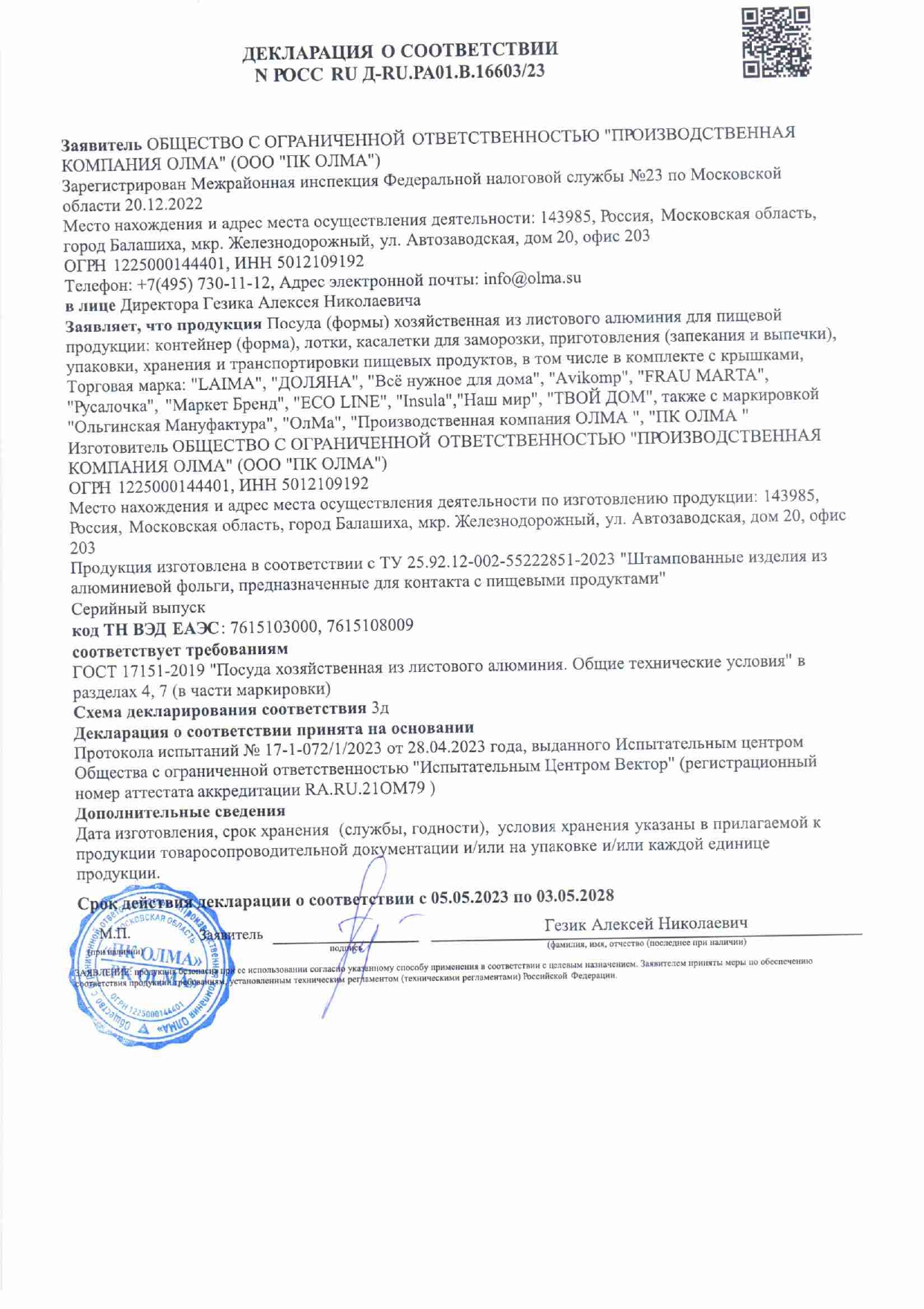 Форма алюминиевая с крышкой для выпечки и хранения, 490 мл, КОМПЛЕКТ 50 шт., 150х124 мм, LAIMA Код товара: 607799 652,43 ₽ Купить Производитель:LAIMA Форма алюминиевая с крышкой LAIMA HOME предназначена для приготовления, упаковки, транспортировки и хранения продуктов. Алюминиевые формы могут использоваться в качестве посуды для приготовления в духовке, упаковки для готовых блюд, а также для хранения и заморозки продуктов. Температурный режим использования форм: от -20 до +250 °C, крышек: от -20 до +150 °C. Алюминиевые формы с крышкой удобны для домашнего использования, идеально подходят кейтеринга, выездного обслуживания и служб доставки еды. Размер формы – 150х124 мм. Объем – 490 мл. Комплект – 50 шт.Производство: РоссияДлина: 150 смШирина: 124 смТолщина: 50 мкмОбъем : 490 млНаличие крышки: даКоличество в комплекте: 50 шт.Материал: алюминийВес: 699 грРазмер упаковки: 12.7 × 16.3 × 15.6 смОбъём: 0.0036 м3Промежуточная упаковка: 18 штТранспортная упаковка: 18 штШтрих-код: 4606224336695 Сертификат-1.jpg Сертификат-2.jpg Сертификат-3.jpg