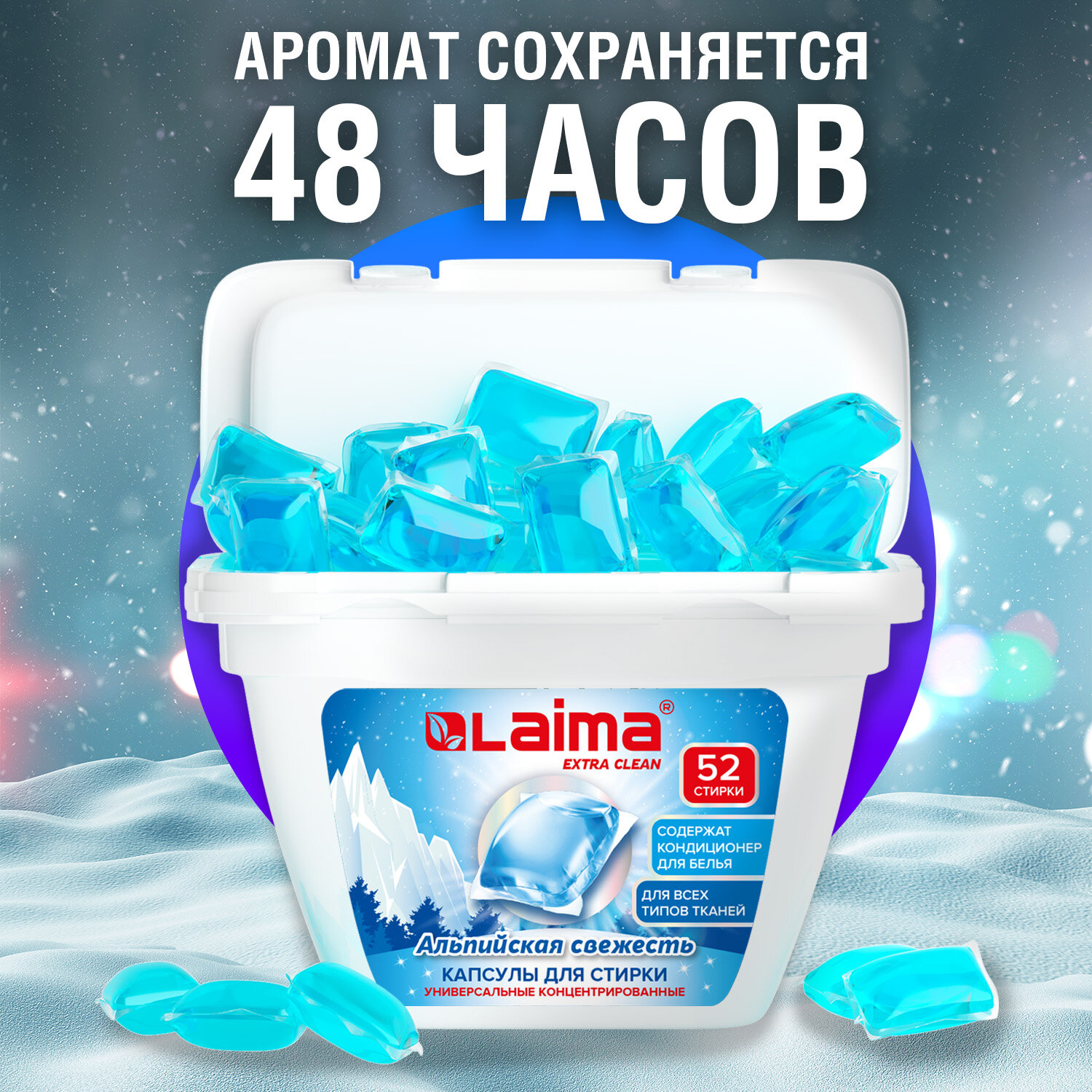 Капсулы для стирки белья концентрат 3 в 1 с кондиционером АЛЬПИЙСКАЯ СВЕЖЕСТЬ, 52 шт., LAIMA Код товара: 608264 369,1 ₽ Купить Производитель:LAIMA Капсулы для стирки LAIMA – это новое высокоэффективное концентрированное средство для стирки в водорастворимых капсулах. Удобный компактный формат позволяет дозировать количество капсул на стирку как при полной загрузке барабана, так и при частичной, а уникальная формула, содержащая смягчающие масла, заботится о ткани даже без использования кондиционера! Состав: более 30% анионные ПАВ, 5-15% дистиллированная вода, менее 5% антиресорбционное вещество, менее 5% кондиционер, энзимы, ароматизирующие добавки, краситель. Подходят для стирки цветных изделий из х/б, льняных, синтетических тканей и тканей из смешанных волокон (кроме шелка и шерсти). Подходят для режимов стирки от 40 минут и более. Подходят для воды любой жесткости. Не предназначено для ручной стирки. Плотно закрывайте упаковку после использования.Производство: КитайТип: автоматВес/Объем: 416 г/млВид средства: капсулыНазначение : для всех видов тканей, кроме шерсти и шелкаОтдушка: Альпийская свежестьКоличество капсул/стиков: 52 шт.Количество бункеров: 1 шт.Серия: CAPSВид упаковки: пластиковая коробкаСрок годности: 48 месВес: 542 грРазмер упаковки: 8.3 × 18.4 × 11.2 смОбъём: 0.0019 м3Промежуточная упаковка: 36 штТранспортная упаковка: 36 штШтрих-код: 4606224375816 Сертификат-1.jpg Сертификат-2.jpg