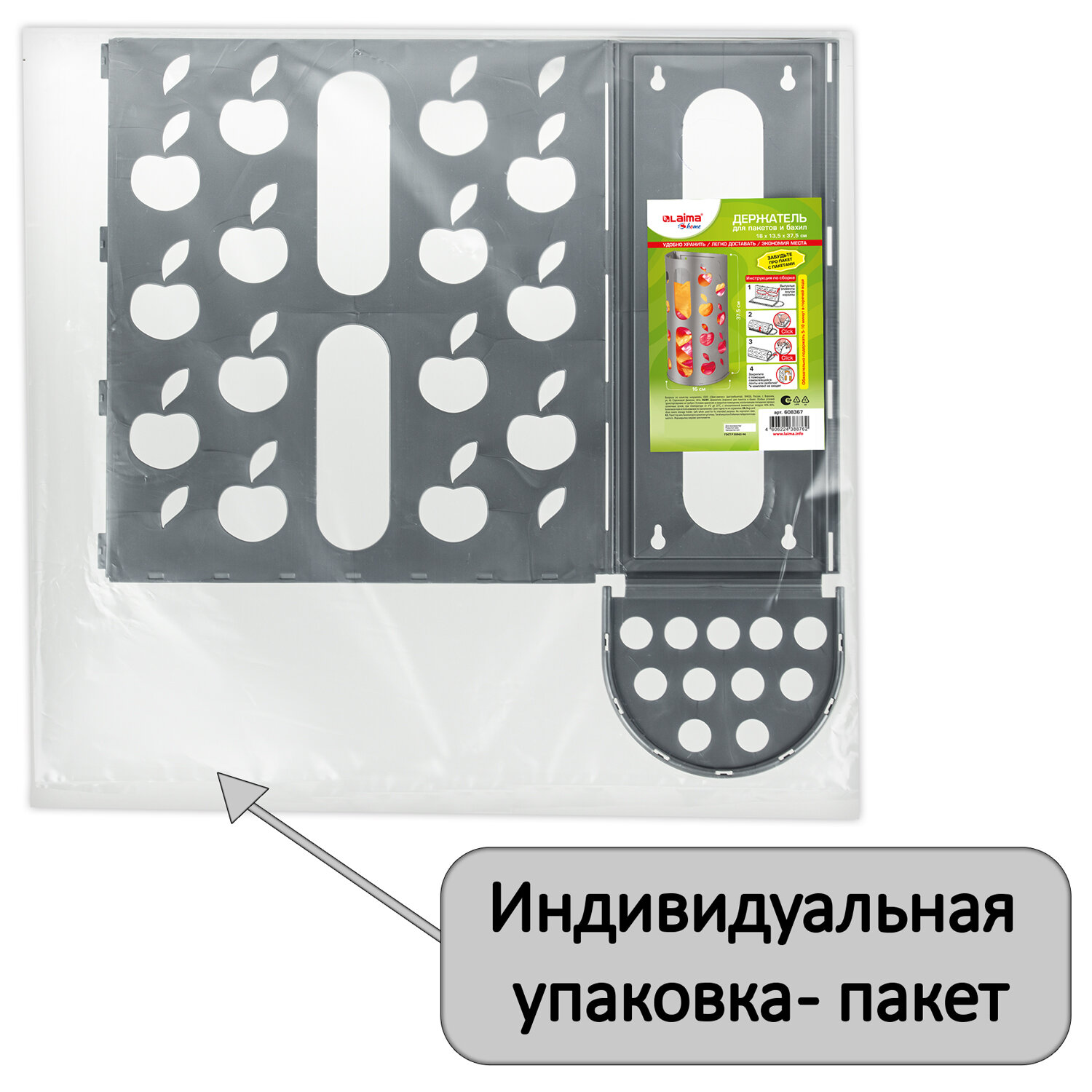 Держатель контейнер корзина APPLE для пакетов, мешков, бахил, 37,5х16х13 см, графит, LAIMA Код товара: 608367 261 ₽ Купить Производитель:LAIMA Держатель-диспенсер для пакетов LAIMA – это вместительное пластиковое приспособление для компактного и упорядоченного хранения бытовых пакетов, салфеток, тряпок, туалетной бумаги, бумажных полотенец, бахил, одноразовых тряпок и салфеток. Возможна установка на столе либо крепление к любой вертикальной поверхности: стене, дверце шкафчика при помощи саморезов. Также можно крепить при помощи двухстороннего скотча (крепление в комплект не входит). Корзинка поставляется в разобранном виде с прочными защелками. Сборка очень простая – достаточно согнуть в местах сгиба и защелкнуть защелки. Материал изделия гибкий, не подвержен растрескиванию на сгибах. Не имеет запаха и не требователен в уходе.Производство: РоссияШирина в собранном виде: 16 смНазначение: для пакетов и бахилМатериал: пластикВысота в собранном виде: 37.5 смЦвет: серыйГлубина в собранном виде: 13.5 смТип товара: Держатель диспенсерВес: 342 грРазмер упаковки: 0.7 × 50.3 × 50.2 смОбъём: 0.0017 м3Промежуточная упаковка: 25 штТранспортная упаковка: 25 штШтрих-код: 4606224388762 Сертификат-1.jpg Сертификат-2.jpg Сертификат-3.jpg