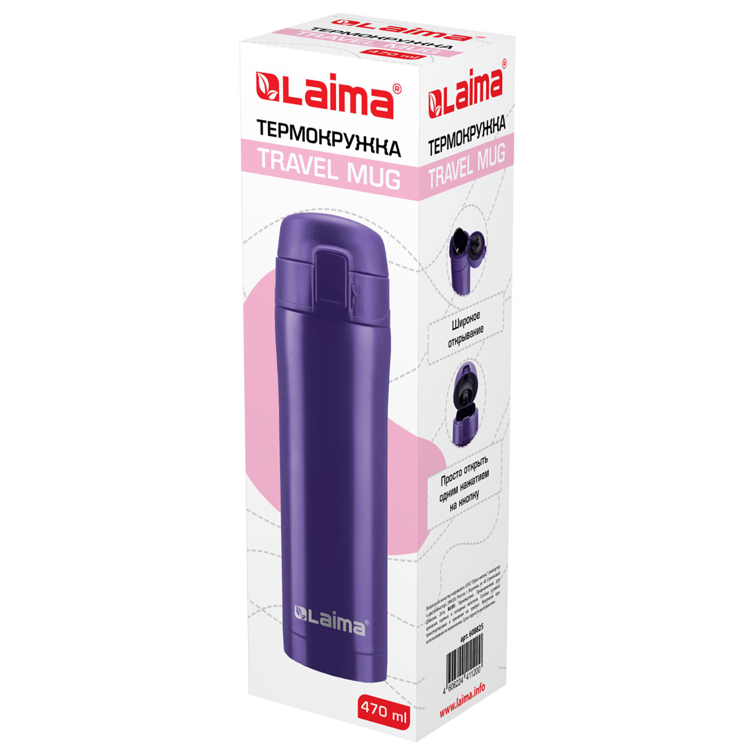 Термокружка 470 мл из нержавеющей стали SUS304, царский фиолетовый матовый, LAIMA Код товара: 608825 766,82 ₽ Купить Производитель:LAIMA Термокружка LAIMA с двойной стальной стенкой изготовлена из нержавеющей стали марки 304 медицинского уровня. Сконструирована по вакуумной технологии. Термокружка обладает оптимальной формой для фиксации в держателе автомобиля, что позволяет использовать ее во время поездок. Термокружка снабжена откидывающейся крышкой с кнопкой, позволяющей с легкостью использовать ее одной рукой. Также, для защиты от непроизвольного нажатия кнопки, кружка имеет специальный защитный замок-предохранитель. Крышка обеспечивает герметичность и простоту использования. Избежать проливания напитка помогает специальный силиконовый клапан. Держит температуру до 18 ч (в зависимости от условий эксплуатации).Производство: КитайОбъем: 0.47 лОсновной цвет: фиолетовыйВысота: 23.5 смДиаметр донышка: 6.5 смМатериал корпуса: нержавеющая стальСерия: CLASSICУпаковка: картонная коробкаВес: 366 грРазмер упаковки: 7.8 × 24.7 × 7.8 смОбъём: 0.0018 м3Промежуточная упаковка: 12 штТранспортная упаковка: 12 штШтрих-код: 4606224411200 Файлы Сертификат-1.jpg Сертификат-2.jpg Сертификат-3.jpg