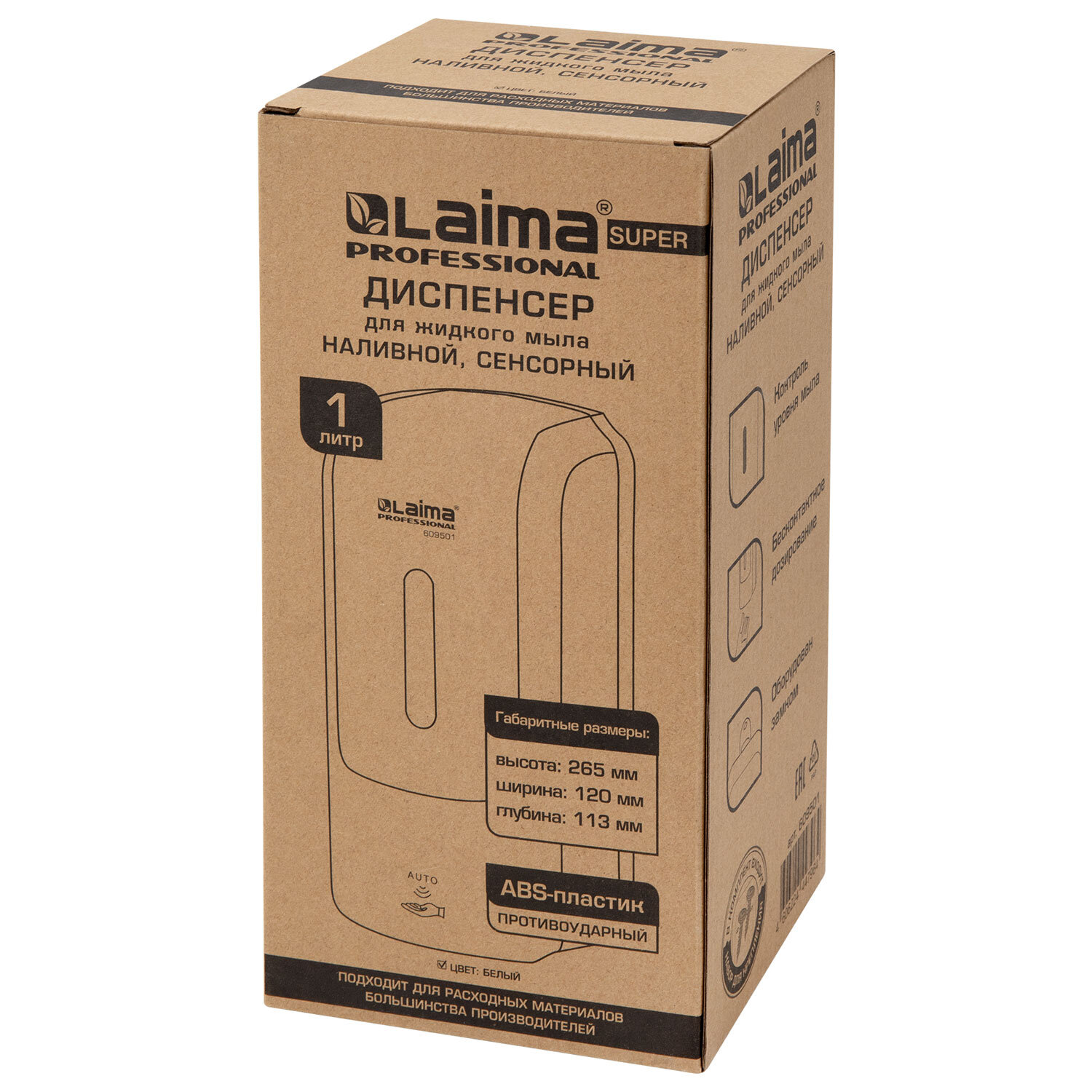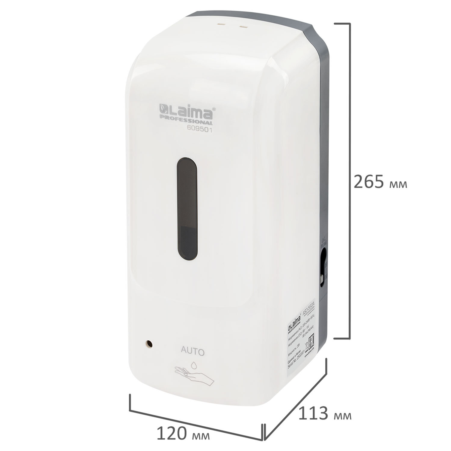Дозатор для жидкого мыла LAIMA PROFESSIONAL SUPER, НАЛИВНОЙ, СЕНСОРНЫЙ, 1 л, белый, ABS-пластик Код товара: 609501 2 867,14 ₽ Купить Производитель:LAIMA Автоматический дозатор для жидкого мыла LAIMA PROFESSIONAL SUPER обеспечивает экономичный расход и повышенный уровень гигиены. Предназначен для офисов, предприятий, торговых центров, вокзалов, организаций здравоохранения. Настенный сенсорный дозатор обеспечивает автоматическую подачу жидкого мыла. Тип дозирования – капля. Исключает контакт рук с поверхностью дозатора. Внимание! Перед установкой убедитесь, что расстояние между сенсором и поверхностью, над которой устанавливается диспенсер, превышает 30 см. В противном случае дозатор может работать нестабильно, что приведет к ложным срабатываниям механизма и выходу из строя диспенсера. Объем – 1 л. Оснащен инфракрасным сенсором. Работает от четырех батареек LR6 АА. Также есть возможность подключения дозатора к сети переменного тока 220 V по средствам адаптера. Параметры адаптера: 6В, 1А, "-" снаружи, "+" внутри. Адаптер и батарейки в комплект не входят. Настенный сенсорный дозатор LAIMA PROFESSIONAL SUPER – незаменимое в современной действительности решение для обеспечения повышенного уровня гигиены в общественных местах.Производство: КитайОбъем: 1 лТип диспенсера: наливной для жидкого мылаАртикул: 609501Серия: SUPERДиспенсерная система: нетУправление: сенсорноеТип закрывания: пластиковый ключИндикаторы: окно для контроля уровня мыла, световой индикатор замены элементов питанияКомплектация: крепежные материалыКоличество режимов дозирования: 1Чувствительность сенсора до: 10 смСочетается с расходными материалами других производителей: даМатериал замка: пластикПитание: от сети, элементы питанияТехнология источника питания (батарейка) : алкалиноваяТипоразмер источника питания (батарейка) : AA - LR6Напряжение источника питания (батарейка) : 1.5 ВКоличество источников питания (батарейка): 4 шт.Материал корпуса: ударопрочный пластик ABSЦвет корпуса: белый/серыйШирина: 120 ммВысота: 265 ммГлубина: 113 ммВес: 937 грРазмер упаковки: 11.9 × 27.2 × 13.1 смОбъём: 0.005 м3Промежуточная упаковка: 15 штТранспортная упаковка: 15 штШтрих-код: 4606224447964 Сертификат-1.jpg Сертификат-2.jpg Сертификат-3.jpg