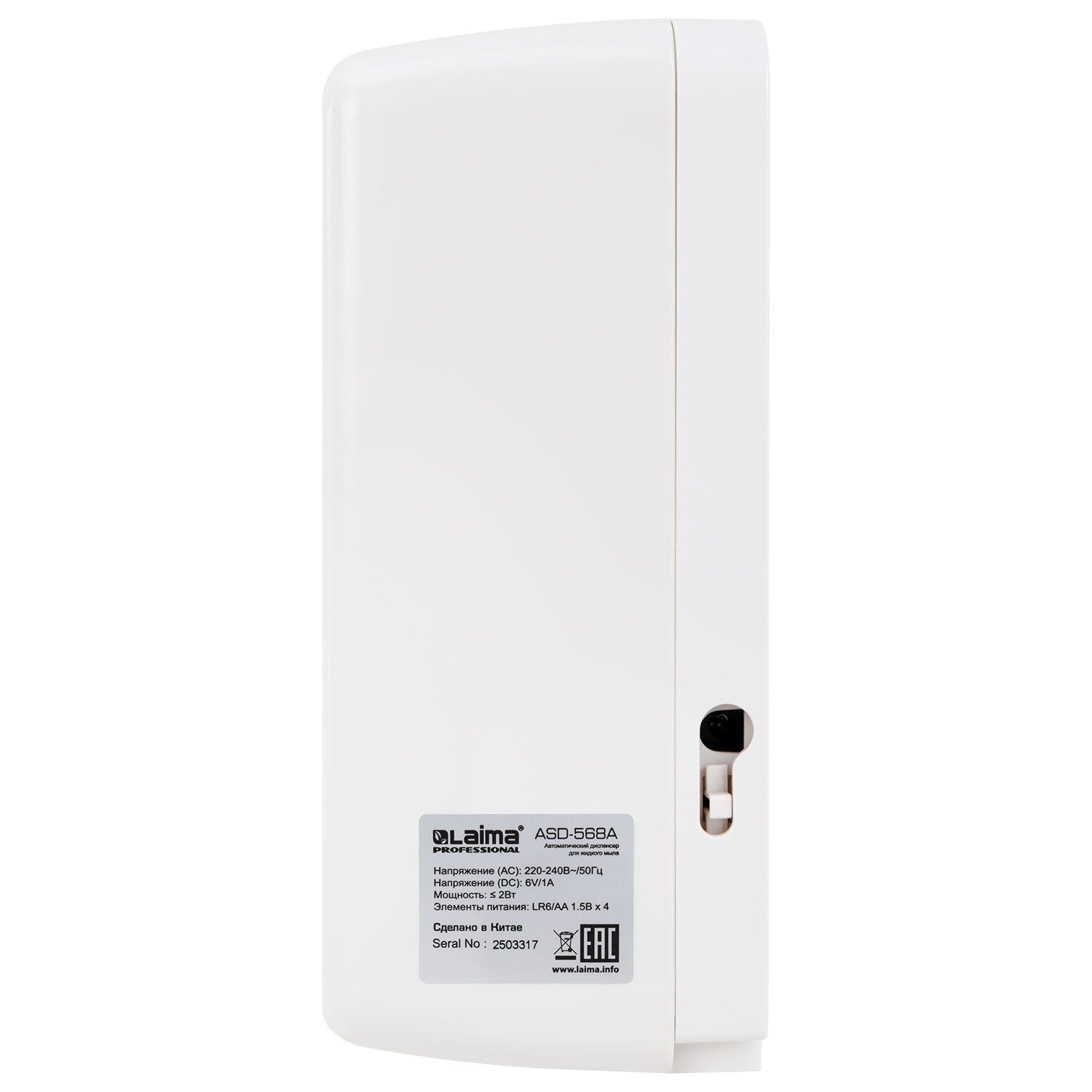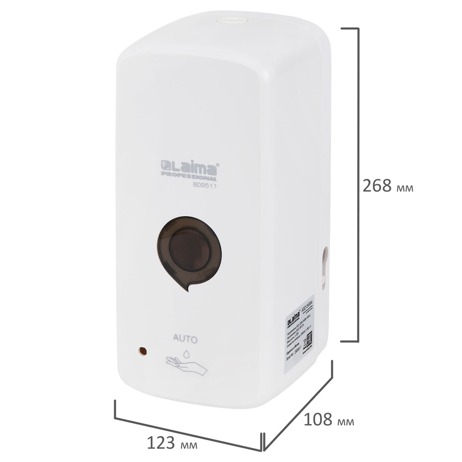 Дозатор для жидкого мыла LAIMA PROFESSIONAL PREMIUM, НАЛИВНОЙ, СЕНСОРНЫЙ, 1 л, белый, ABS-пластик Код товара: 609511 3 102,6 ₽ Купить Производитель:LAIMA Автоматический дозатор для жидкого мыла LAIMA PROFESSIONAL PREMIUM обеспечивает экономичный расход и повышенный уровень гигиены. Предназначен для офисов, предприятий, торговых центров, вокзалов, организаций здравоохранения. Настенный сенсорный дозатор обеспечивает автоматическую подачу жидкого мыла. Тип дозирования – капля. Предназначен для офисов и предприятий, торговых центров Исключает контакт рук с поверхностью дозатора. Внимание! Перед установкой убедитесь, что расстояние между сенсором и поверхностью, над которой устанавливается диспенсер, превышает 30 см. В противном случае дозатор может работать нестабильно, что приведет к ложным срабатываниям механизма и выходу из строя диспенсера. Объем – 1 л. Оснащен инфракрасным сенсором. Работает от четырех батареек LR6 АА. Также есть возможность подключения дозатора к сети переменного тока 220 V по средствам адаптера. Параметры адаптера: 6В, 1А, "-" снаружи, "+" внутри. Адаптер и батарейки в комплект не входят. Настенный сенсорный дозатор LAIMA PROFESSIONAL PREMIUM – незаменимое в современной действительности решение для обеспечения повышенного уровня гигиены в общественных местах.Производство: КитайОбъем: 1 лТип диспенсера: наливной для жидкого мыла СЕНСОРНЫЙАртикул: 609511Серия: PremiumДиспенсерная система: нетУправление: сенсорноеТип закрывания: пластиковый ключИндикаторы: окно для контроля уровня мыла, световой индикатор замены элементов питанияАнтивандальный корпус: даКомплектация: крепежные материалыКоличество режимов дозирования: 1Чувствительность сенсора до: 10 смСочетается с расходными материалами других производителей: даМатериал замка: пластикПитание: от сети, элементы питанияТехнология источника питания (батарейка) : алкалиноваяТипоразмер источника питания (батарейка) : AA - LR6Напряжение источника питания (батарейка) : 1.5 ВКоличество источников питания (батарейка): 4 шт.Материал корпуса: ударопрочный пластик ABSЦвет корпуса: белыйШирина: 123 ммВысота: 268 ммГлубина: 108 ммВес: 957 грРазмер упаковки: 11.3 × 27.4 × 12.5 смОбъём: 0.0047 м3Промежуточная упаковка: 24 штТранспортная упаковка: 24 штШтрих-код: 4606224448060 Файлы Сертификат-1.jpg Сертификат-2.jpg Сертификат-3.jpg