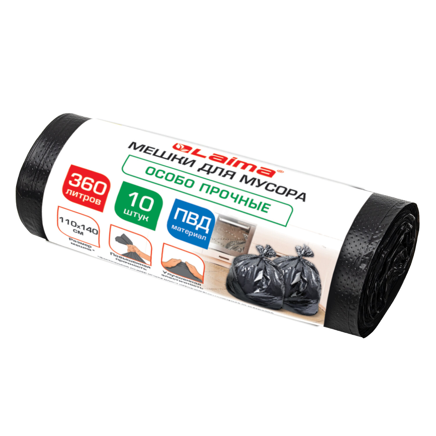 Мешки для мусора 360 л, черные в пласте 10 штук особо прочные, ПВД 60 мкм, 110x140 см, LAIMA, 702687 Код товара: 702687 634,73 ₽ Купить Производитель:LAIMA Мешки для мусора LAIMA в рулоне предназначены для сбора, хранения, транспортировки и утилизации бытовых отходов. Широко используются в офисах, дома, в строительной, медицинской сфере, супермаркетах или на улице, в специальных урнах для мусора. Изготовлены из полиэтилена высокого давления (ПВД) плотностью 60 микрон и имеют объем 360 литров. Размер мешка – 110х140 см (±5%). Поставляются в рулоне по 10 штук. Преимуществами данных мешков для мусора являются: устойчивость к разрыву, повышенная прочность и грузоподъемность.Производство: РоссияОбъем: 360 лЦвет: черныйПрочность: особо прочныеКоличество в комплекте: 10 шт.Материал: ПВДТолщина полиэтилена: 60 мкмТип дна: прямоеТип упаковки: рулонСоответствует требованиям ГОСТа: ГОСТ 12302-2013Ширина: 110 смДлина: 140 смВес: 1,46 кгРазмер упаковки: 9.5 × 29.1 × 9.5 смОбъём: 0.0032 м3Промежуточная упаковка: 8 штТранспортная упаковка: 8 штШтрих-код: 4606224548234 Файлы Приложение-1.pdf Сертификат-1.jpg Сертификат-2.jpg