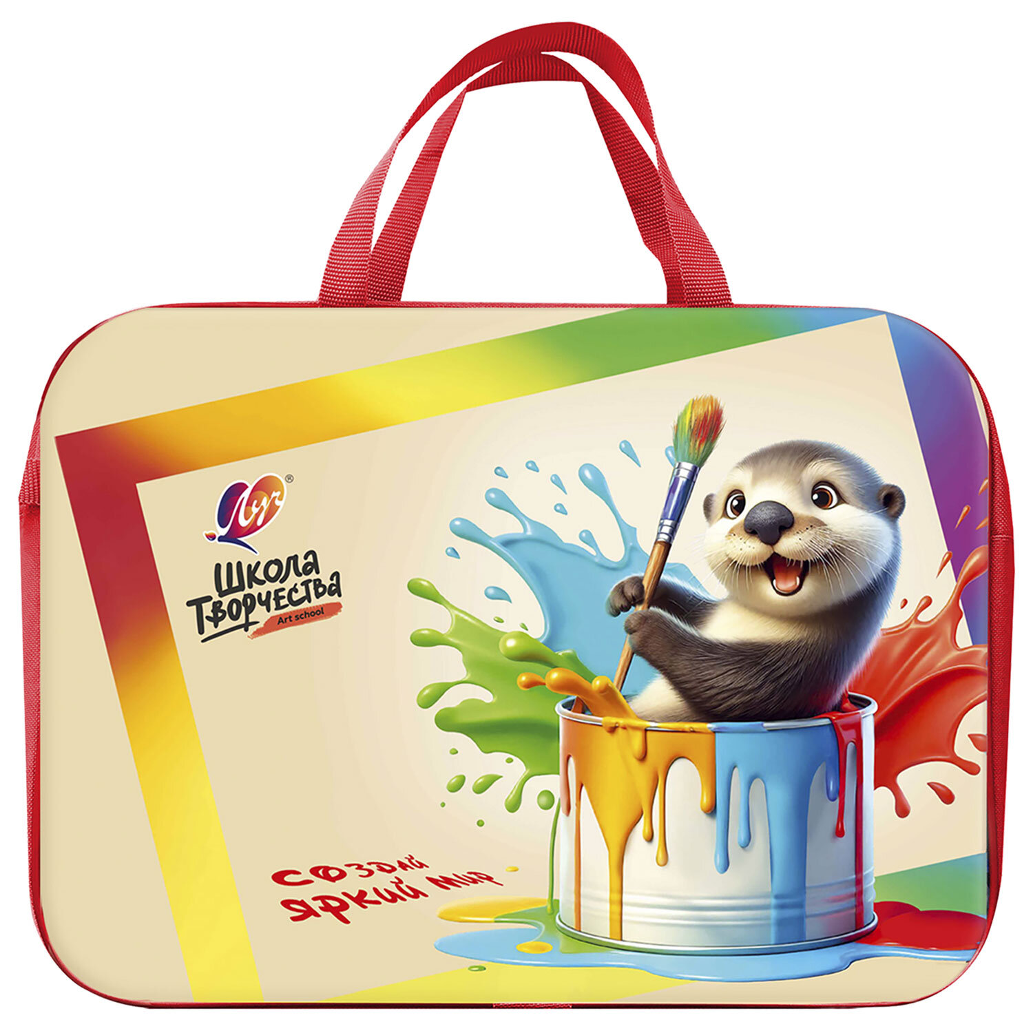 Набор для творчества ЛУЧ "Школа творчества", 15 предметов Код товара: 664691 1 995 ₽ Купить Производитель:ЛУЧ Подарочный набор для творчества ЛУЧ "Школа творчества" состоит из различных канцелярских товаров, которые упакованы в удобную для переноски красочную папку на молнии с двумя ручками. Все они включены в обязательный список покупок к школе. В наборе 17 предметов: 1. Папка А4 «Школа творчества», ткань, с ручками 2. Альбом для рисования, 12 листов 3. Набор картона и цветной бумаги А4, 20 листов 4. Палитра № 5, бежевая 5. Гуашь, 8 цветов, 20 мл 6. Акварель 12 цветов без кисти 7. Пластилин 12 цветов 8. Клей ПВА-М 65 г 9. Коврик А4 для творчества 10. Ножницы детские 13 см с линейкой 11. Карандаши цветные трехгранные 12 цветов 12. Пенал бежевый 13. Линейка 15 см пастельная 14. Карандаш чернографитный с ластиком 15. Кисть № 3 16. Набор ластиков (геометрические фигуры) 17. Стакан-непроливайкаПроизводство: РоссияТип товара: набор материалов для творчестваКоличество предметов: 17 шт.Пол ребенка: универсальныйДлина: 27 смШирина: 36 смГлубина: 8 смМатериал упаковки: ПолиэстерПодарочная упаковка: даВес: 1,72 кгРазмер упаковки: 11.8 × 36.7 × 28.5 смОбъём: 0.0123 м3Промежуточная упаковка: 1 штТранспортная упаковка: 1 штШтрих-код: 4601185017416 Сертификат-1.jpg Сертификат-2.jpg