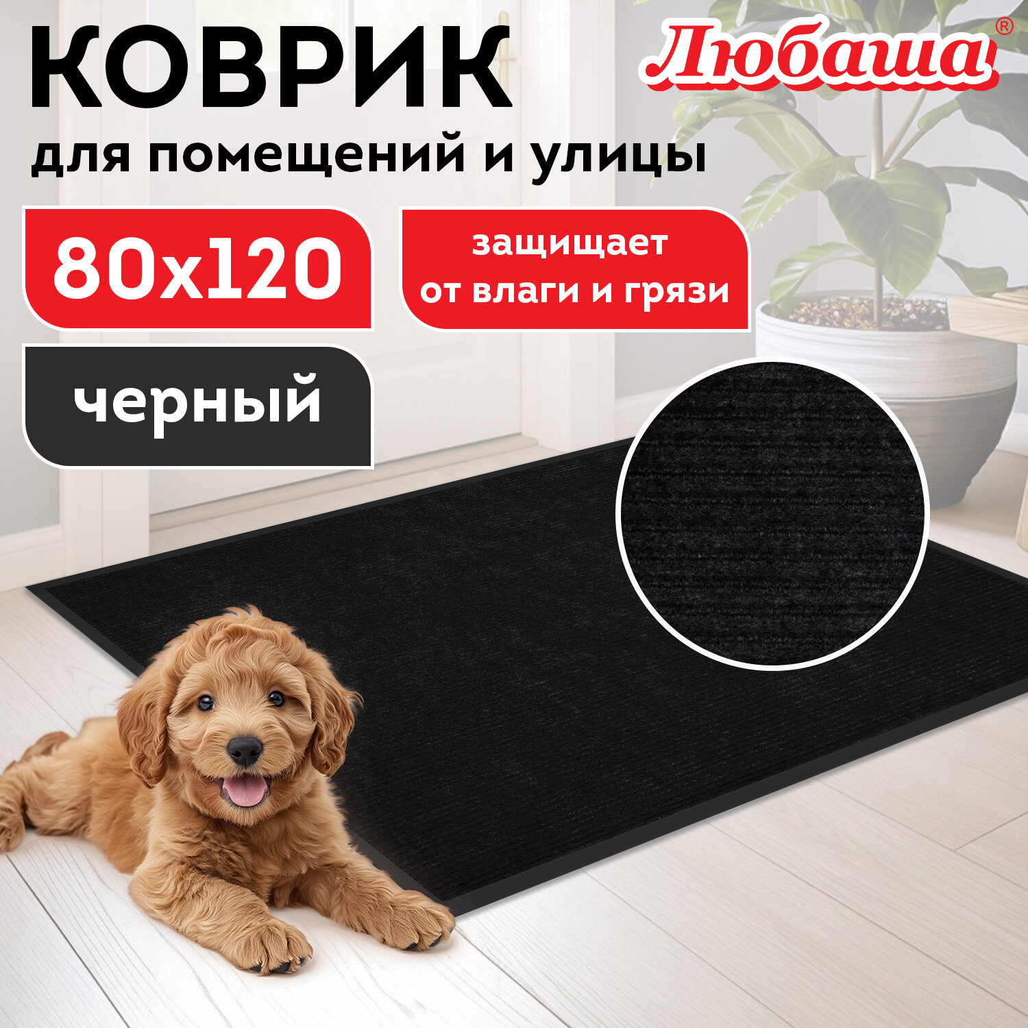 Коврик придверный 80х120 см, ЧЕРНЫЙ, влаго-грязезащитный, 430 г/м2, ребристый, ЛЮБАША СТАНДАРТ Код товара: 701036 953,33 ₽ Купить Производитель:ЛЮБАША Коврик влаго-грязезащитный ЛЮБАША – практичное и эффективное решение для защиты помещения от грязи и влаги. Предназначен для использования внутри и вне помещений. Коврик влаго-грязезащитный ЛЮБАША – практичное и эффективное решение для защиты помещения от грязи и влаги. Ворс коврика изготовлен из полиэстера, который отлично впитывает влагу и задерживает мелкие частицы грязи с подошв обуви. Коврик имеет прямоугольную форму. ПВХ-основа предотвращает скольжение и обеспечивает устойчивость на полу. Основные преимущества влаговпитывающего коврика: Надежная грязезащита и влаговпитывание, что снижает количество уборок в помещении; Износостойкость и устойчивость к деформациям и перепадам температуры; Простота ухода – коврик можно пылесосить; Безопасность за счет нескользящей основы, особенно актуально в осенне-зимний период. Основные характеристики: Размер – 80х120 см. Толщина – 7 мм. Ворс изготовлен из полиэстера. Коврик выполнен в черном цвете. Во избежание скольжения рекомендуется укладывать коврик на чистую увлажненную поверхность (пыль и песок повышают вероятность скольжения ковра). Рекомендации, которые на 100% исключат скольжение ковра на любых напольных покрытиях: 1. Применить противоскользящую ленту. Её наклеивают по периметру коврика с обратной (изнаночной) стороны. 2. Использовать силиконовые наклейки. Они крепятся с изнаночной стороны в углы коврика (обычно нужно 4 наклейки на один коврик). 3. Применить резиновый клей. Им промазывают всю поверхность коврика, при этом и коврик, и кафель в момент приклеивания должны быть сухими и чистыми. Или использовать любой двусторонний скотч. 4. Использовать фиксаторы для ковров. Это специально разработанные подушечки, которые можно поместить под углы коврика. Обычно они состоят из двух частей – липкой, которая приклеивается к подложке коврика, и рельефной, которая прижимается к полу. 5. Использовать липучки для ковров. Одну сторону липучки прикрепляют к изнанке ковра, а другую – к полу. При сжатии застёжки-липучки создают прочное соединение, препятствующее скольжению.Производство: РоссияНазначение: влаго-грязезащитныйДлина: 120 смШирина: 80 смТолщина: 7 ммМатериал: ПВХ, полиэстерМатериал ворса: 100% полиэстерМетод производства: вулканизацияДизайн: стандартныйАнтискользящее основание: даВорсовое покрытие с ребристой текстурой: даЦвет: черныйВес: 2,08 кгРазмер упаковки: 7.5 × 80.5 × 12 смОбъём: 0.0073 м3Промежуточная упаковка: 6 штТранспортная упаковка: 6 штШтрих-код: 4606224505749 Сертификат-1.jpg Сертификат-2.jpg Сертификат-3.jpg