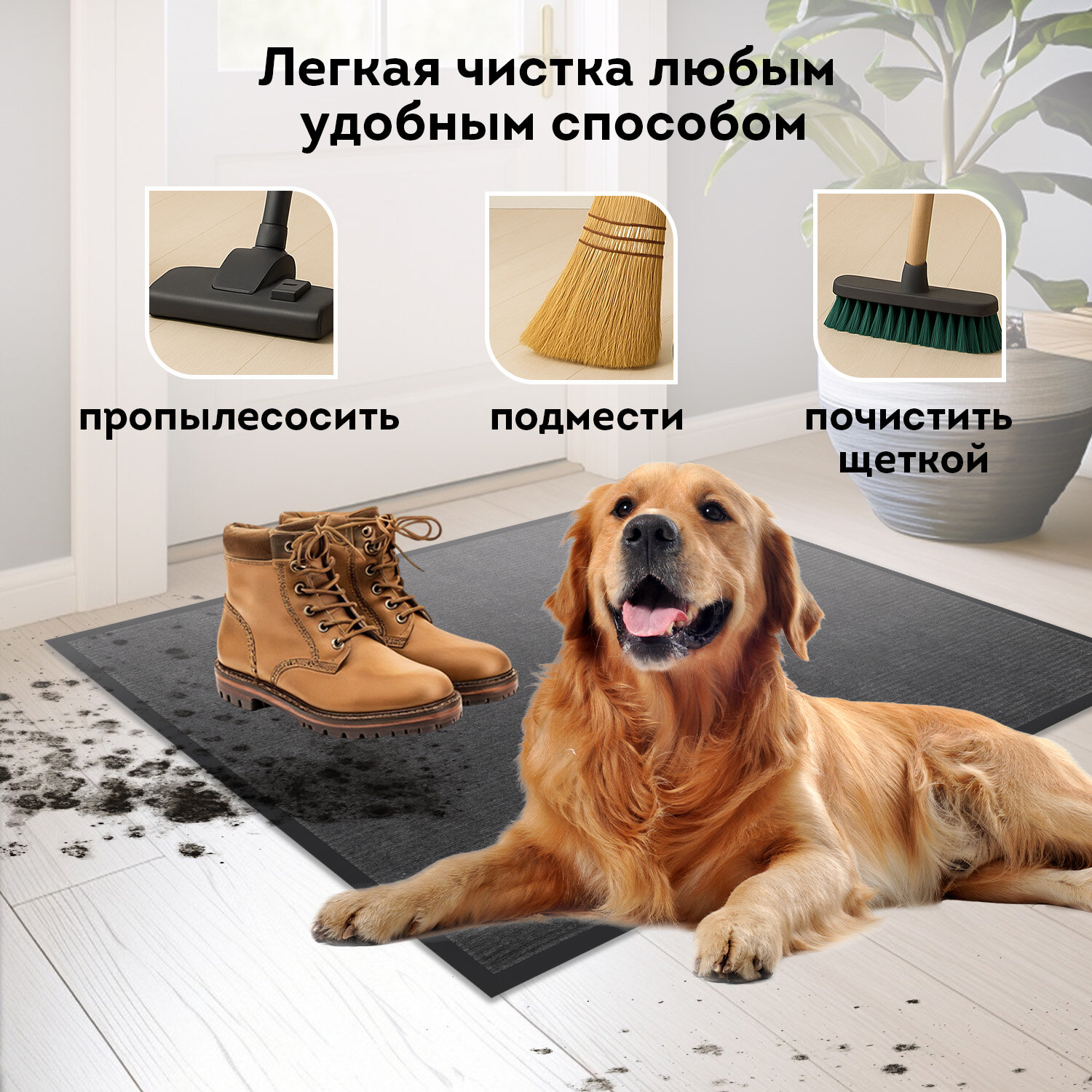 Коврик придверный 80х120 см, СЕРЫЙ, влаго-грязезащитный, 430 г/м2, ребристый, ЛЮБАША СТАНДАРТ Код товара: 701037 953,33 ₽ Купить Производитель:ЛЮБАША Коврик влаго-грязезащитный ЛЮБАША – практичное и эффективное решение для защиты помещения от грязи и влаги. Предназначен для использования внутри и вне помещений. Коврик влаго-грязезащитный ЛЮБАША – практичное и эффективное решение для защиты помещения от грязи и влаги. Ворс коврика изготовлен из полиэстера, который отлично впитывает влагу и задерживает мелкие частицы грязи с подошв обуви. Коврик имеет прямоугольную форму. ПВХ-основа предотвращает скольжение и обеспечивает устойчивость на полу. Основные преимущества влаговпитывающего коврика: Надежная грязезащита и влаговпитывание, что снижает количество уборок в помещении; Износостойкость и устойчивость к деформациям и перепадам температуры; Простота ухода – коврик можно пылесосить; Безопасность за счет нескользящей основы, особенно актуально в осенне-зимний период. Основные характеристики: Размер – 80х120 см. Толщина – 7 мм. Ворс изготовлен из полиэстера. Коврик выполнен в сером цвете. Во избежание скольжения рекомендуется укладывать коврик на чистую увлажненную поверхность (пыль и песок повышают вероятность скольжения ковра). Рекомендации, которые на 100% исключат скольжение ковра на любых напольных покрытиях: 1. Применить противоскользящую ленту. Её наклеивают по периметру коврика с обратной (изнаночной) стороны. 2. Использовать силиконовые наклейки. Они крепятся с изнаночной стороны в углы коврика (обычно нужно 4 наклейки на один коврик). 3. Применить резиновый клей. Им промазывают всю поверхность коврика, при этом и коврик, и кафель в момент приклеивания должны быть сухими и чистыми. Или использовать любой двусторонний скотч. 4. Использовать фиксаторы для ковров. Это специально разработанные подушечки, которые можно поместить под углы коврика. Обычно они состоят из двух частей – липкой, которая приклеивается к подложке коврика, и рельефной, которая прижимается к полу. 5. Использовать липучки для ковров. Одну сторону липучки прикрепляют к изнанке ковра, а другую – к полу. При сжатии застёжки-липучки создают прочное соединение, препятствующее скольжению.Производство: РоссияНазначение: влаго-грязезащитныйДлина: 120 смШирина: 80 смТолщина: 7 ммМатериал: ПВХ, полиэстерМатериал ворса: 100% полиэстерМетод производства: вулканизацияДизайн: стандартныйАнтискользящее основание: даВорсовое покрытие с ребристой текстурой: даЦвет: серыйВес: 2,09 кгРазмер упаковки: 9 × 80.3 × 11.5 смОбъём: 0.0085 м3Промежуточная упаковка: 6 штТранспортная упаковка: 6 штШтрих-код: 4606224505756 Сертификат-1.jpg Сертификат-2.jpg Сертификат-3.jpg